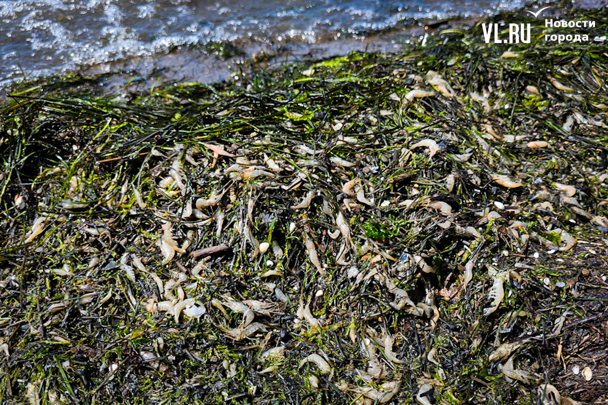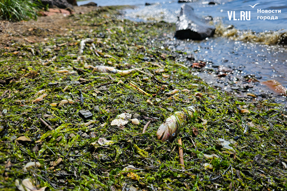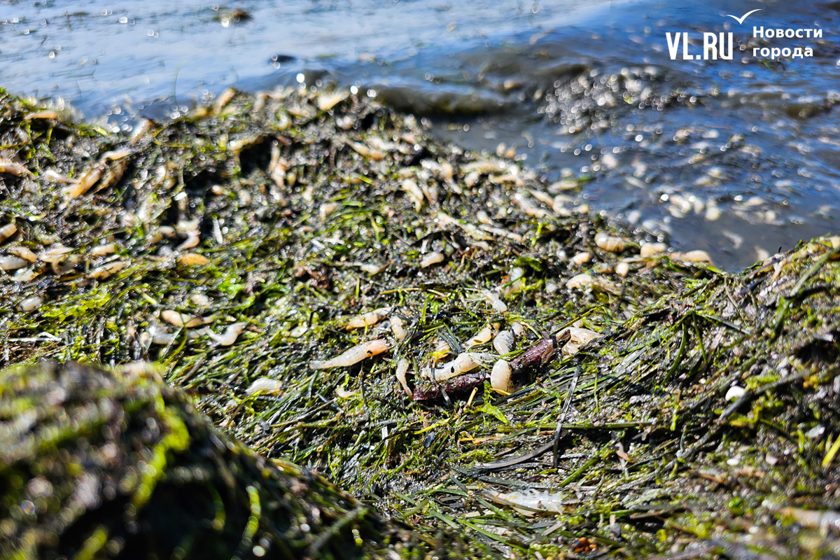 Обновлено 16 августа: Сотрудники Владивостокской межрайонной природоохранной прокуратуры и Приморского территориального управления Росрыболовства обследовали берег бухты Бражникова в районе Фанзавода. На береговой полосе обнаружено скопление выброшенных на берег гидробионтов. Отобраны пробы. Ситуация находится на контроле природоохранного прокурора, при наличии оснований будут приняты меры реагирования.