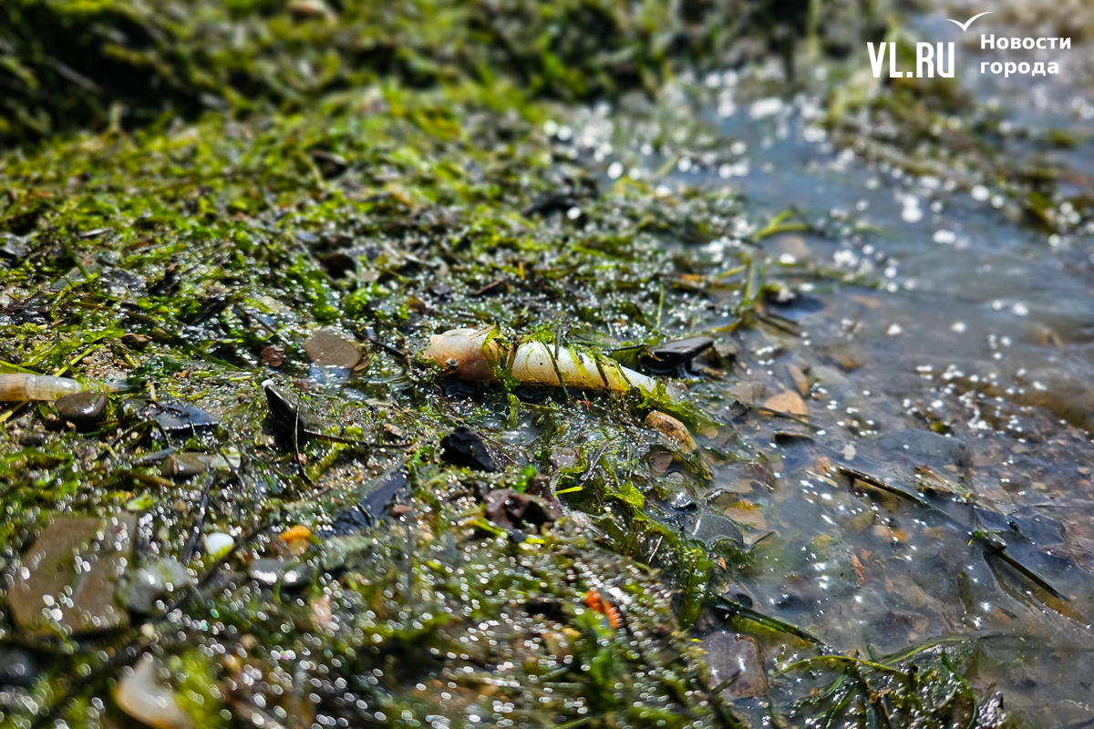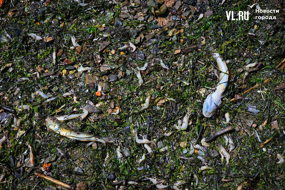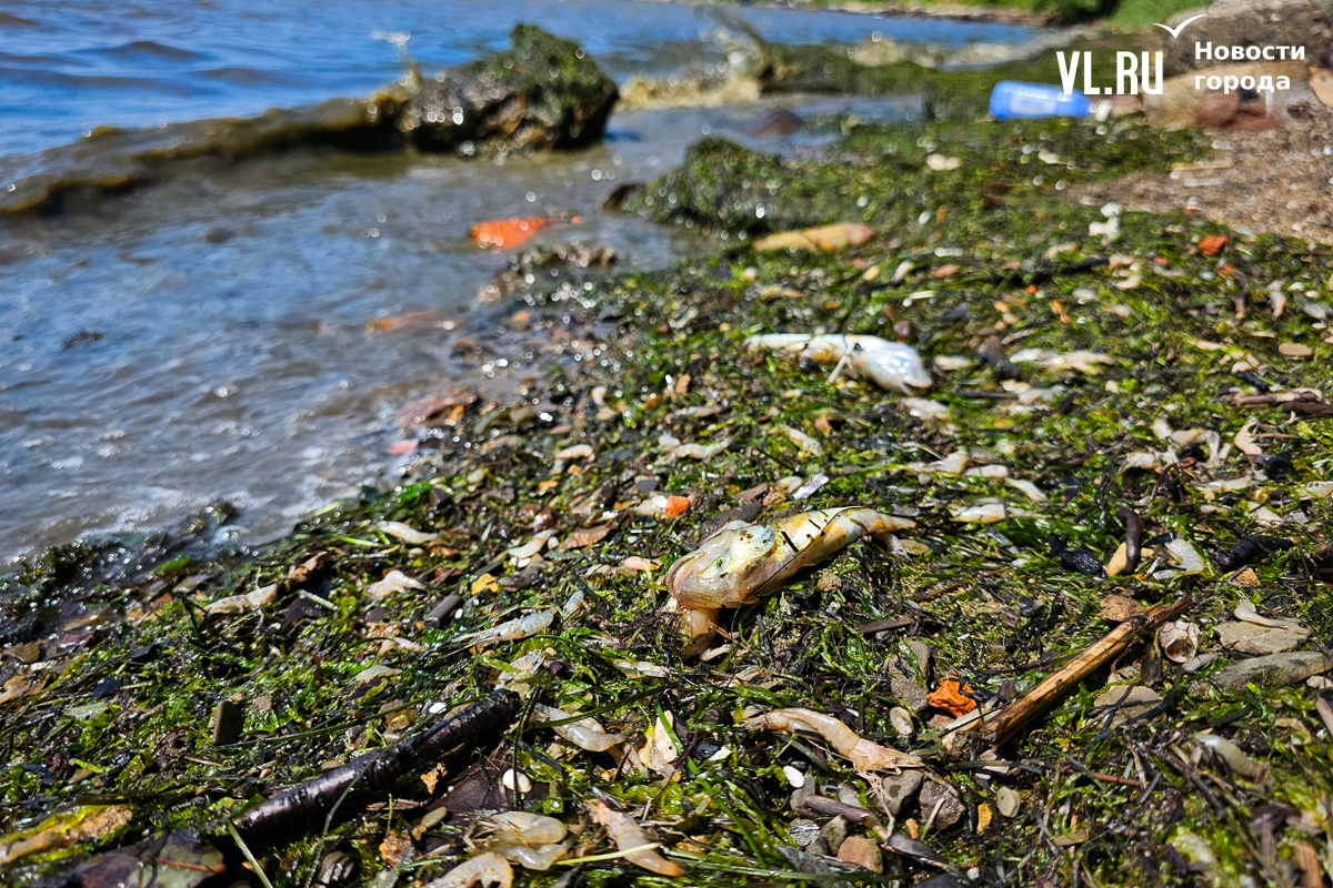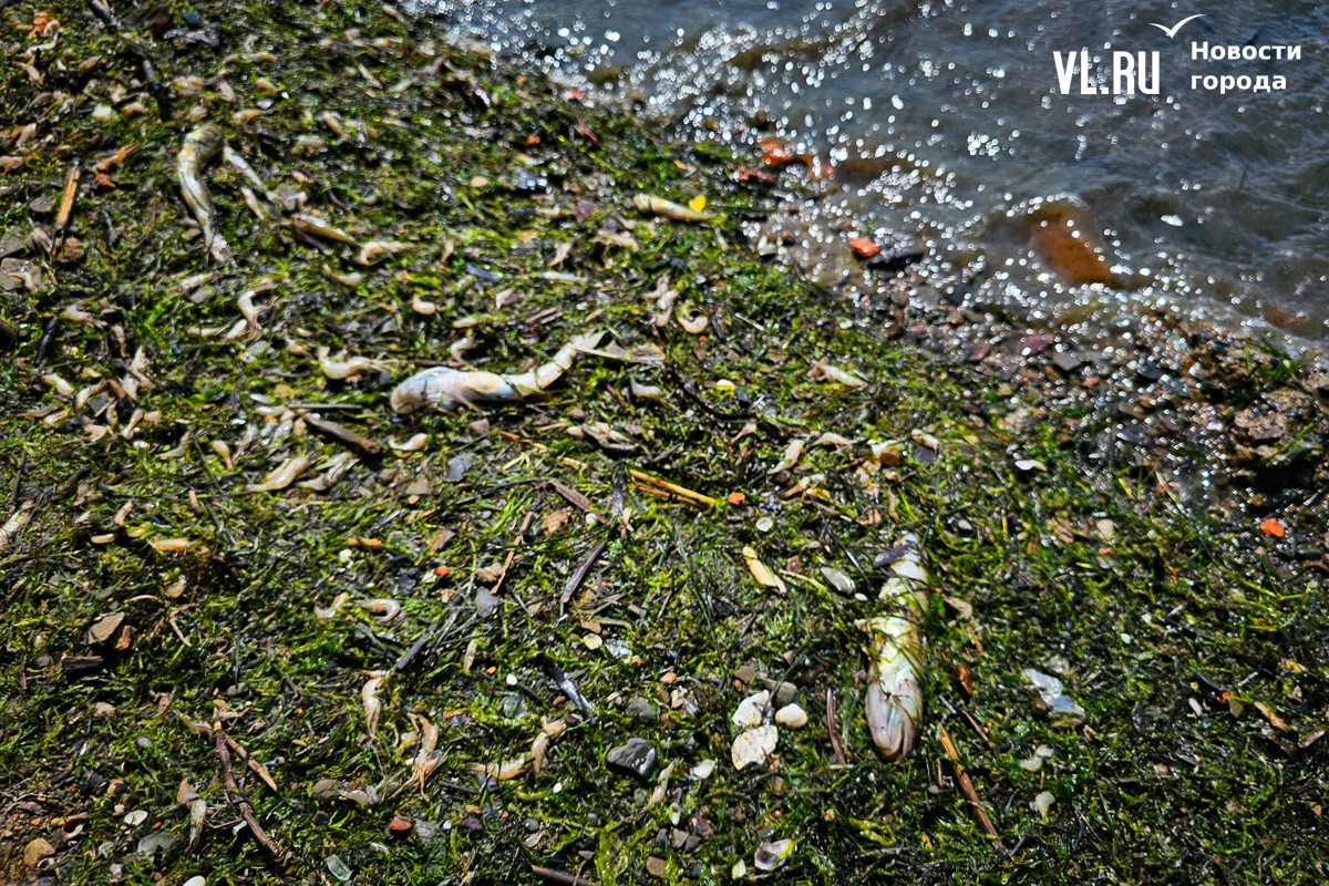 Обновлено 16 августа: Сотрудники Владивостокской межрайонной природоохранной прокуратуры и Приморского территориального управления Росрыболовства обследовали берег бухты Бражникова в районе Фанзавода. На береговой полосе обнаружено скопление выброшенных на берег гидробионтов. Отобраны пробы. Ситуация находится на контроле природоохранного прокурора, при наличии оснований будут приняты меры реагирования.