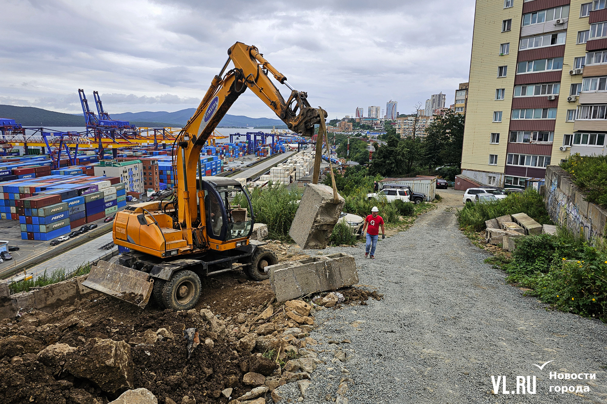 В пятницу, 16 августа, на склоне сопки Крестовой начались строительные работы. Здесь идёт отсыпка грунта и демонтаж бетонных блоков, убраны несколько гаражей. В пресс-службе администрации Владивостока уточнили, что работы согласованы с мэрией, их ведёт Владивостокский морской торговый порт – здесь ремонтируют протяжённую подпорную стену.