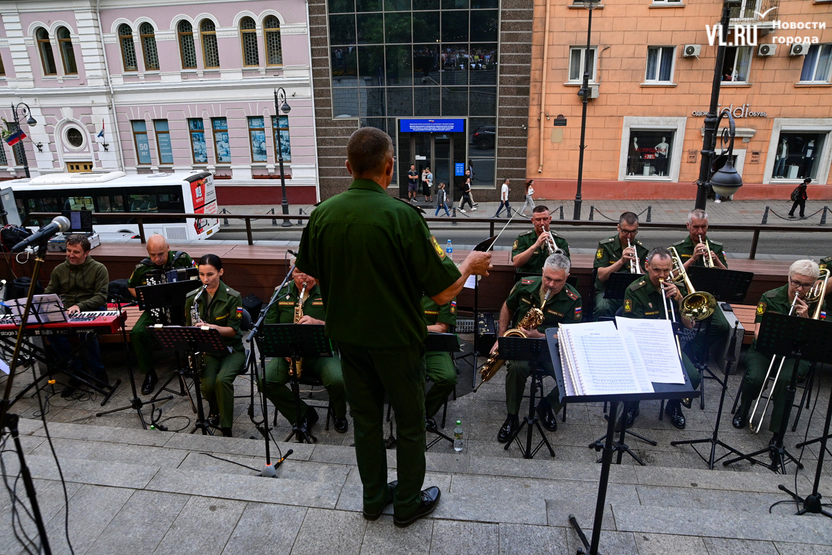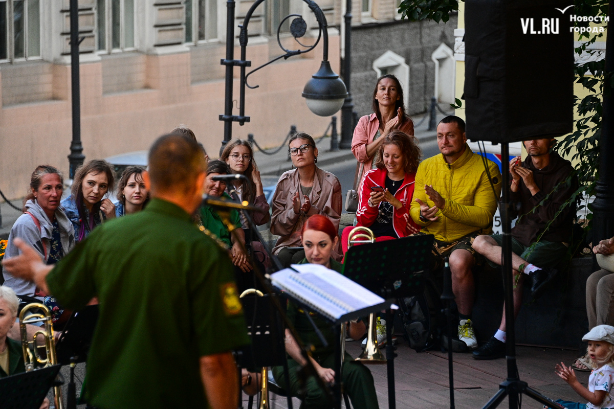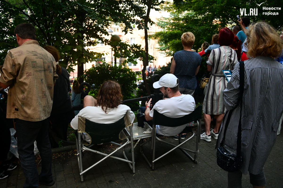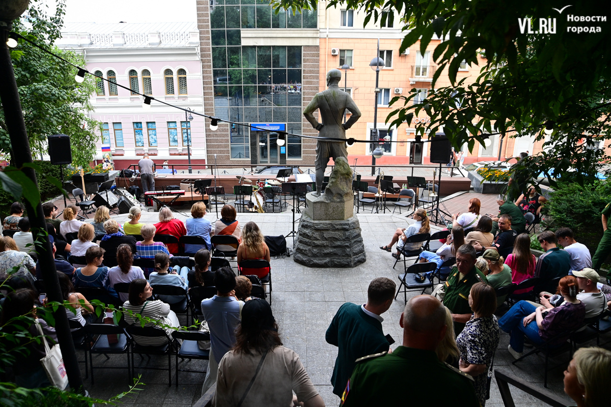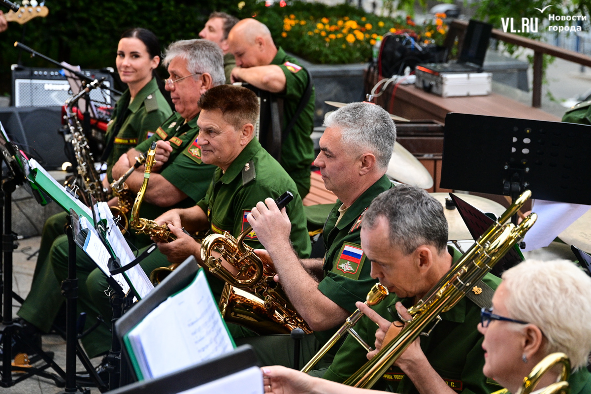 Несмотря на «блэкаут» в Приморском крае в пятницу, 16 августа, концерт в сквере Юла Бриннера начался вовремя – в 19:00. К генератору подключили микрофон, колонки, а также иллюминацию, которая в сочетании с отсутствием света во всём городе создала особенную атмосферу. Насладиться джазовыми композициями собрались десятки человек – все сидячие места были заняты, гости стояли вокруг музыкантов на тротуаре и даже газонах, танцевали и подпевали, на время забыв о коллапсе на электросетях. Жители соседних домов наслаждались джазом, сидя на своих балконах.