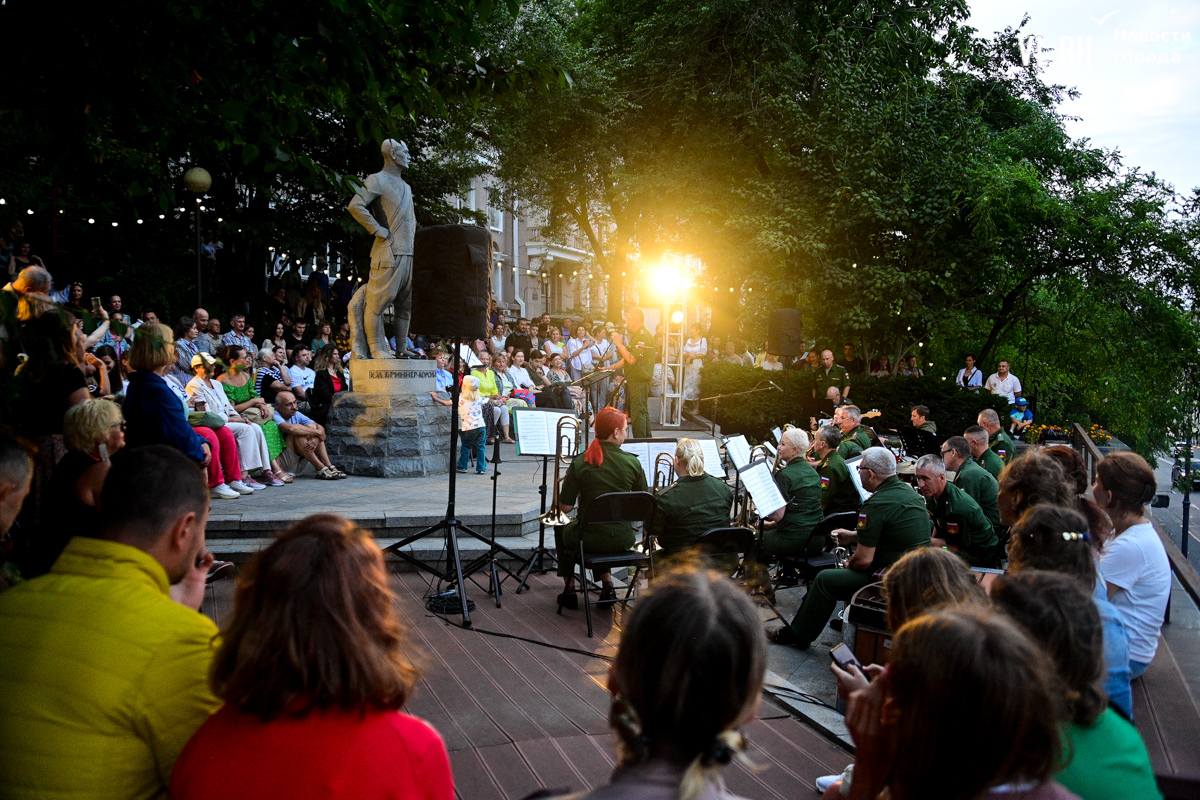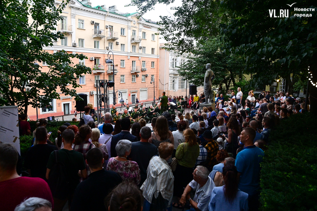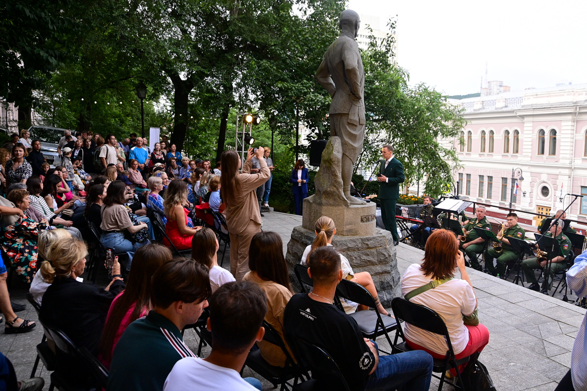 Концертом владивостокский филиал Третьяковской галереи решил отметить год работы общественного пространства и открытие выставки «Порт приписки – Дальний Восток» при поддержке FESCO. Местом для этого выбрали сквер Юла Бриннера, который находится по соседству с общественным пространством и стал постоянным местом проведения активностей Третьяковки.