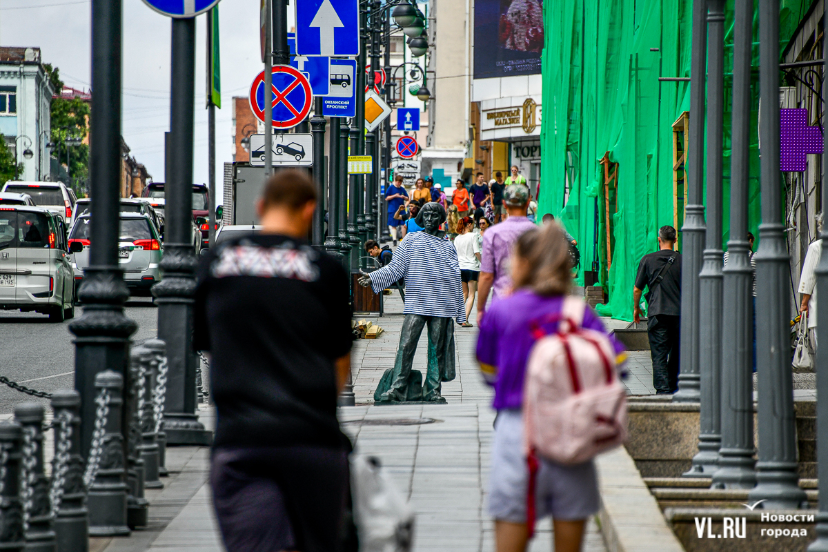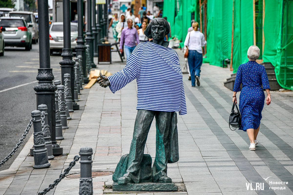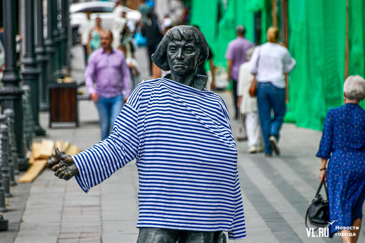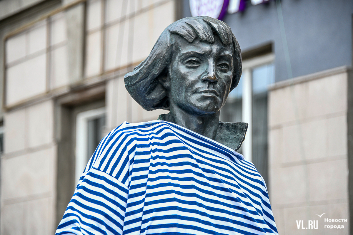 В понедельник, 19 августа, статую моряка на Океанском проспекте Владивостока одели в тельняшку. Так волонтёры отметили 150-летие со дня рождения полосатого предмета гардероба. Правда, облачить его целиком не удалось: бронзовый моряк прижимает одной рукой пластинки к телу, зато вторая рука, голосующая, легко поместилась в рукав тельняшки. С переодетым памятником теперь можно сфотографироваться.