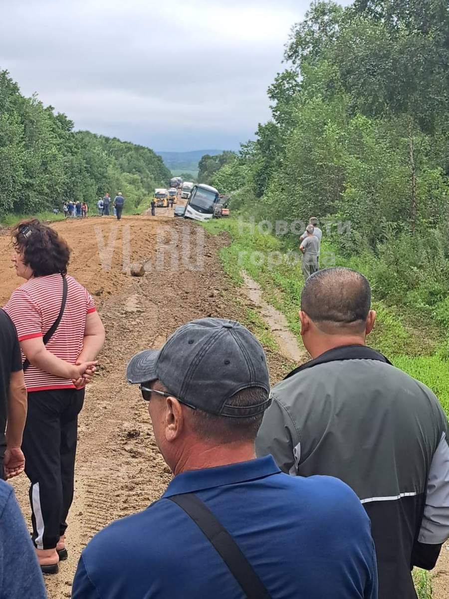 «Очередной автобус сошёл с дороги, хорошо, что не перевернулся. Участок Новокачалинск – Турий Рог вот в таком состоянии у нас. В 10 утра я ехал мимо, он уже стоял на обочине, его немного стянуло. В нём было порядка 50 пассажиров-туристов. Где-то около 14:00 он, весь грязный, проследовал на Китай. А за ним уже ехали большегрузы, газовики и все остальные», – рассказал собеседник редакции.