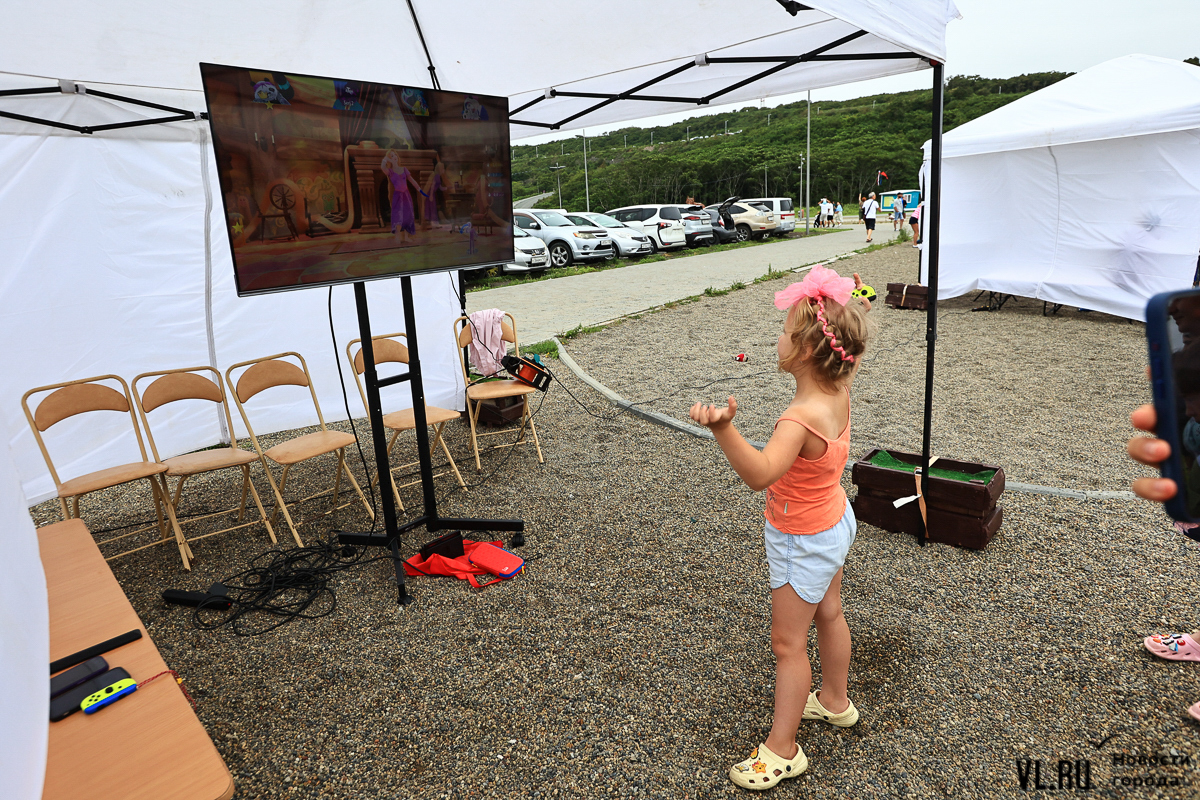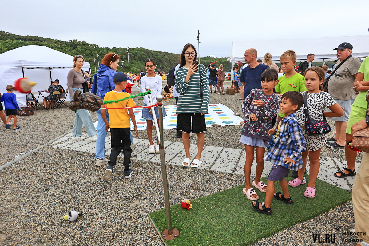Для детей также устраивали различные мастер-классы – по танцам, изготовлению и раскрашиванию воздушных змеев. Всей семьёй можно было сыграть в гигантскую дженгу, твистер и дартс. Или пострелять из гигантской рогатки плюшевыми птицами из игры Angry Birds, проверить свою силу в армрестлинге, послушать выступление кавер-группы и завязать на сетку ленточку синего, красного или белого цвета, попутно загадав желание.