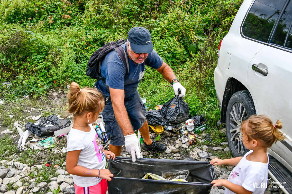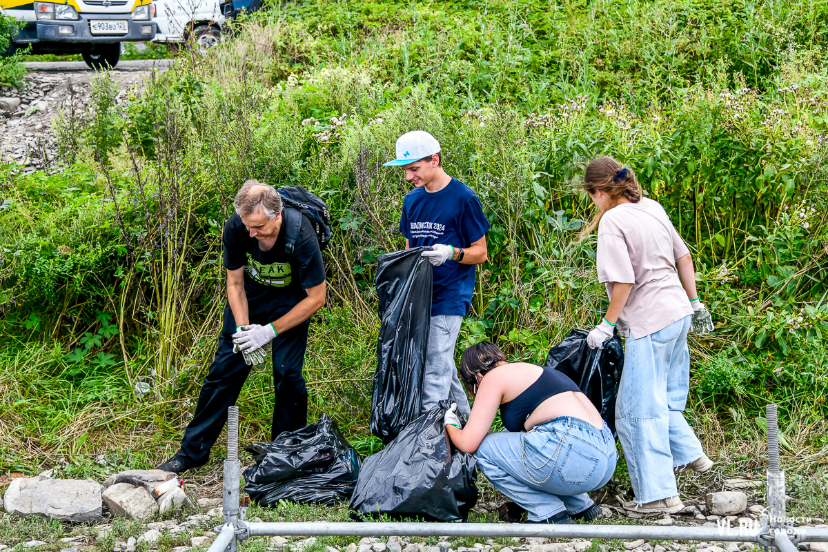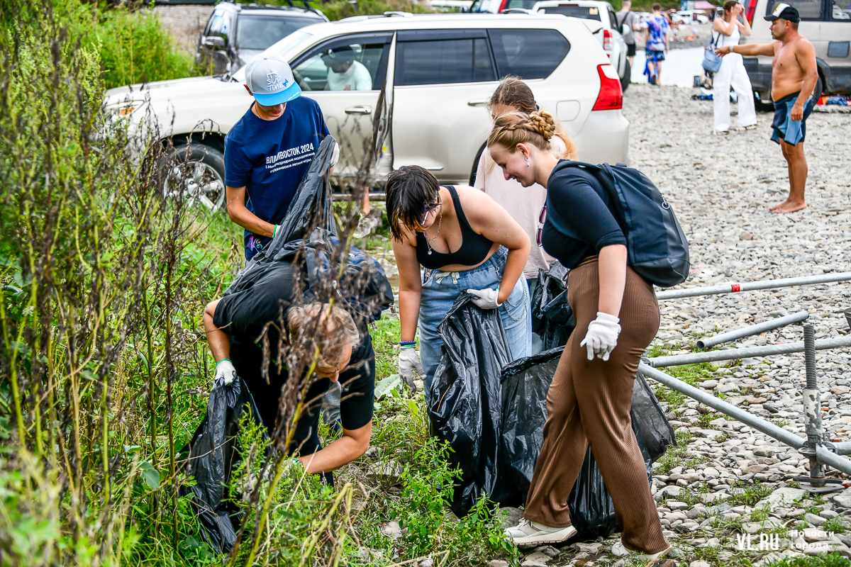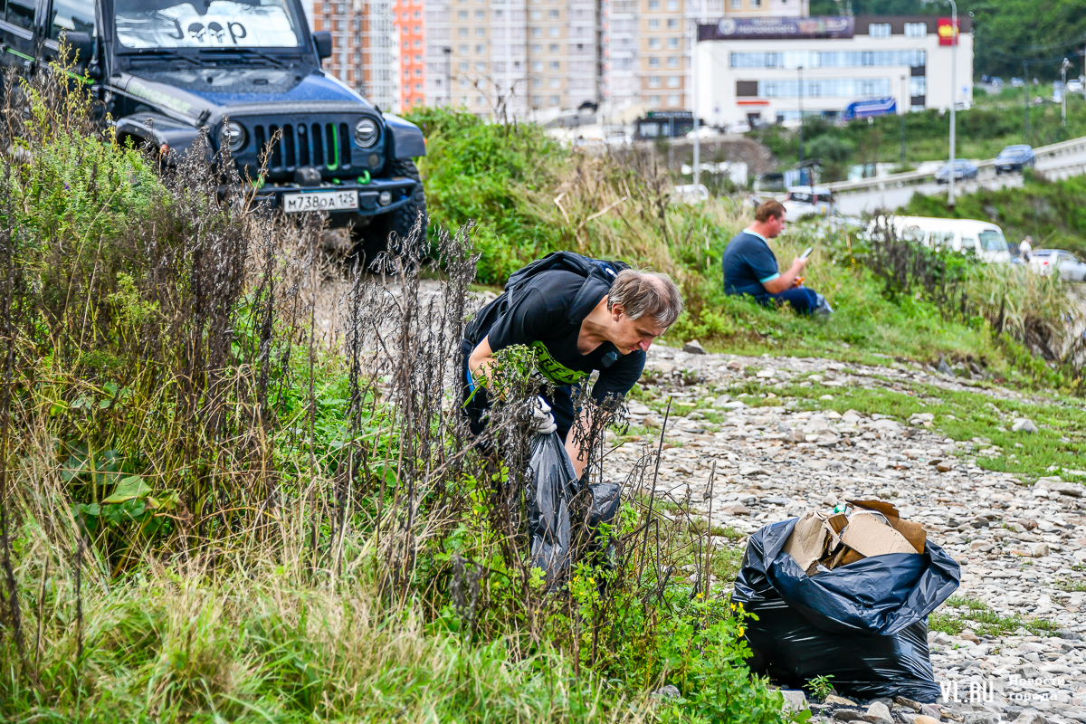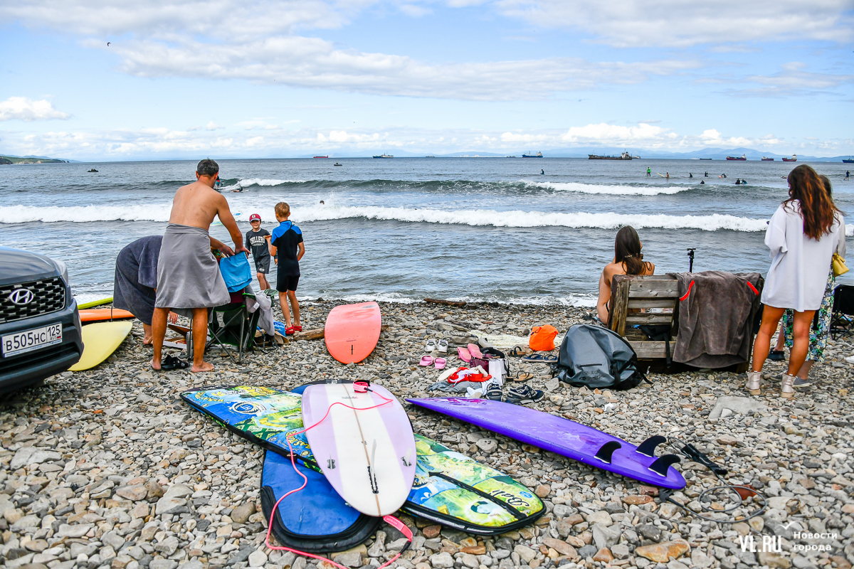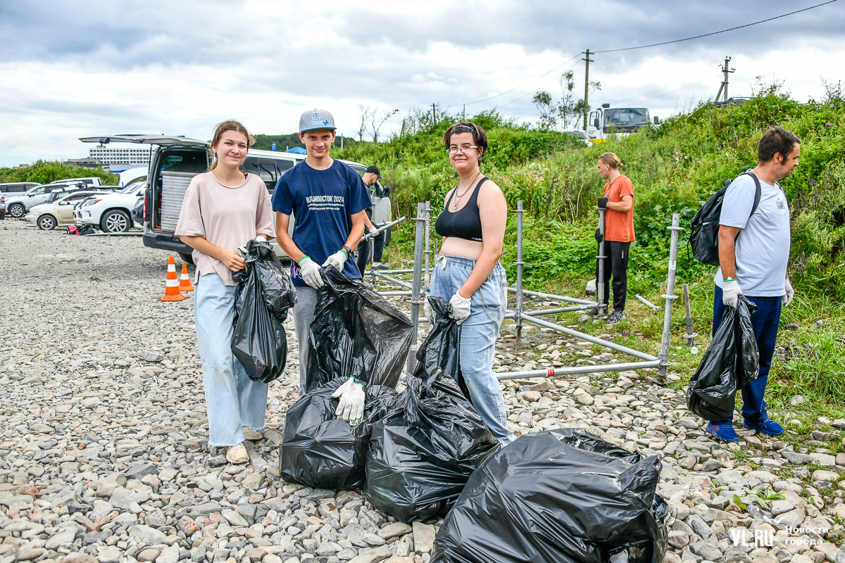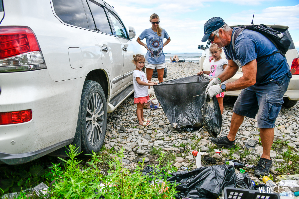 На пляже не повернуться – выглянуло солнце, люди купаются и загорают. А те, кто гоняет на досках, выходя из моря, присоединяются к уборке. Мешки, перчатки, бумажные полотенца, питьевая вода – всё есть. Об этом позаботились организаторы, АНО «Лига холодной воды», которая занимается, в том числе, подготовкой соревнований сёрферов. Их представитель Игорь Попов говорит, что это нормальная история, когда люди убирают побережье. Они несколько раз за сезон устраивают субботники и здесь, и в бухте Чернышева на острове Русский.