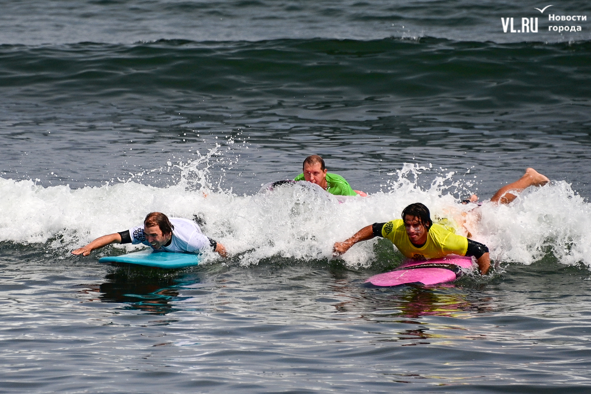 Отметим, что ввиду увеселительного характера состязаний их пропустили ведущие сёрфингисты края – дали возможность показать себя любителям это вида спорта. Волны же то помогали спортсменам, то наоборот – оставляли их на довольно ровной водной глади.