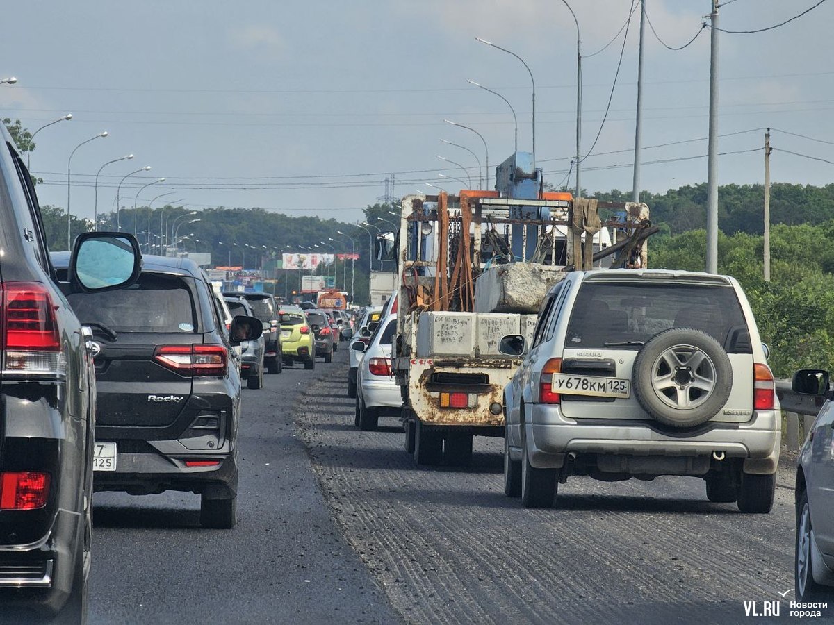 Увлекательное пробкостояние ждёт всех, кто решит в этот выходной день поехать из Владивостока через низководный мост. В районе поворота на Шмидтовку идут дорожные работы, связанные с укладкой асфальта. Пробка растянулась почти на четыре километра.