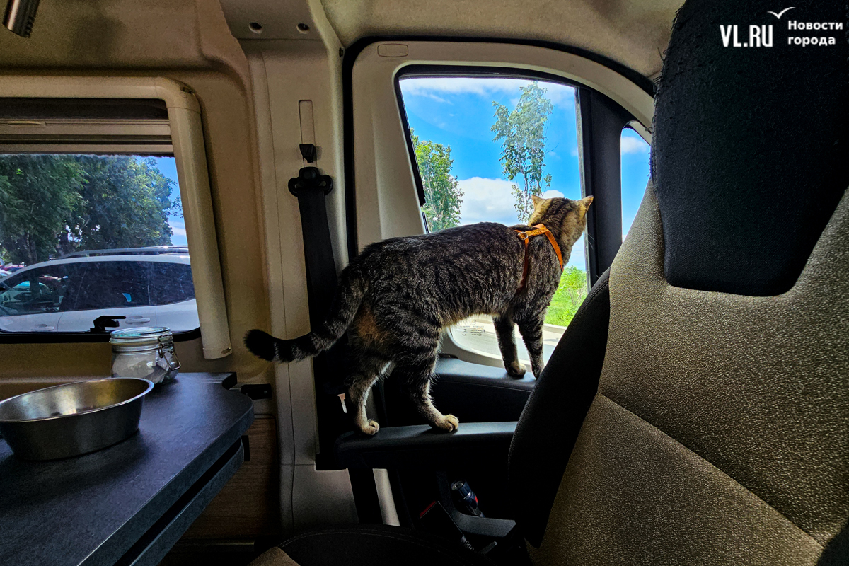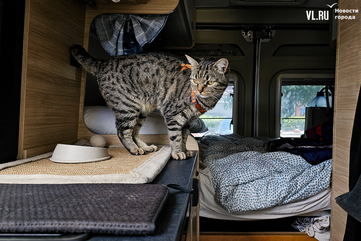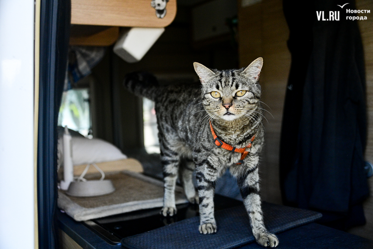 Саке успел обжить автодом. Хозяева даже шутят, что это его владения, а не их. Следы когтей есть на креслах и мебели, но они никому не мешают. С ним не сложно – проблемы могут возникнуть только при оформлении документов на таможне. Саке – очень социальный кот, который посетил десятки стран и городов и уже привык к необычному дому и постоянно меняющейся обстановке.