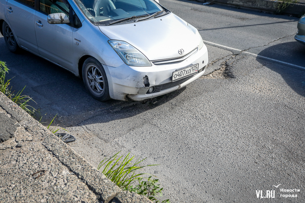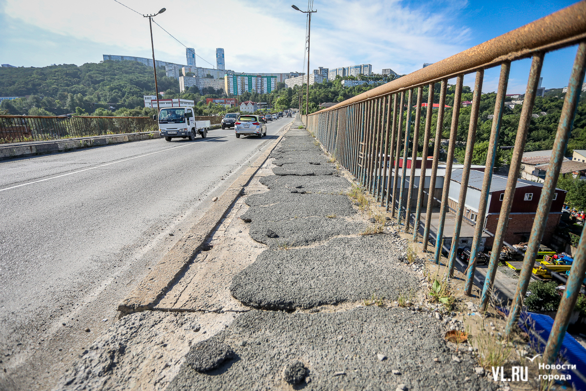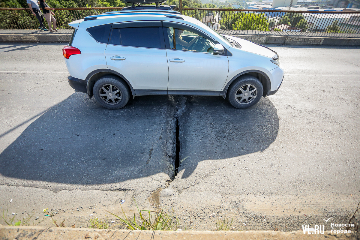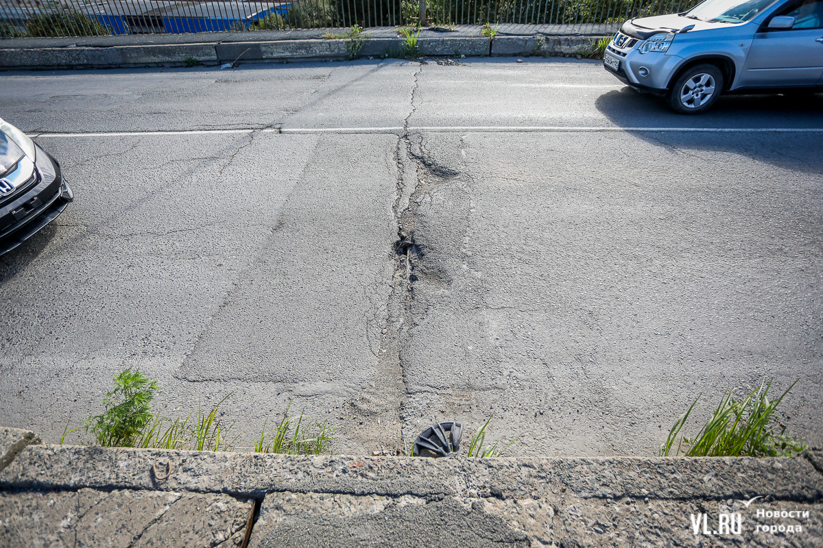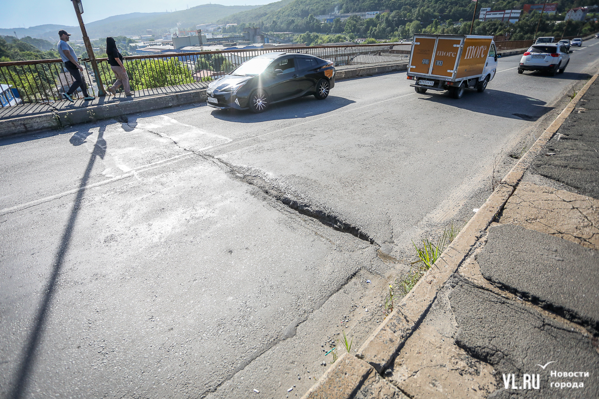 Пробка с Выселковой на Рудневский мост, кажется, уже круглосуточная. Причиной тому стал разошедшийся шов в многострадальном дорожном полотне. Если идти по мосту пешком, то в дыру можно увидеть небольшой кусочек улицы Снеговой, которая проходит под ним. Дальше, у съезда с моста в сторону Луговой, есть ещё один повреждённый шов. Пока там дыра не сквозная, но очень к этому стремится. В администрации Владивостока сообщили, что ремонт на Рудневском проведут в течение двух недель.