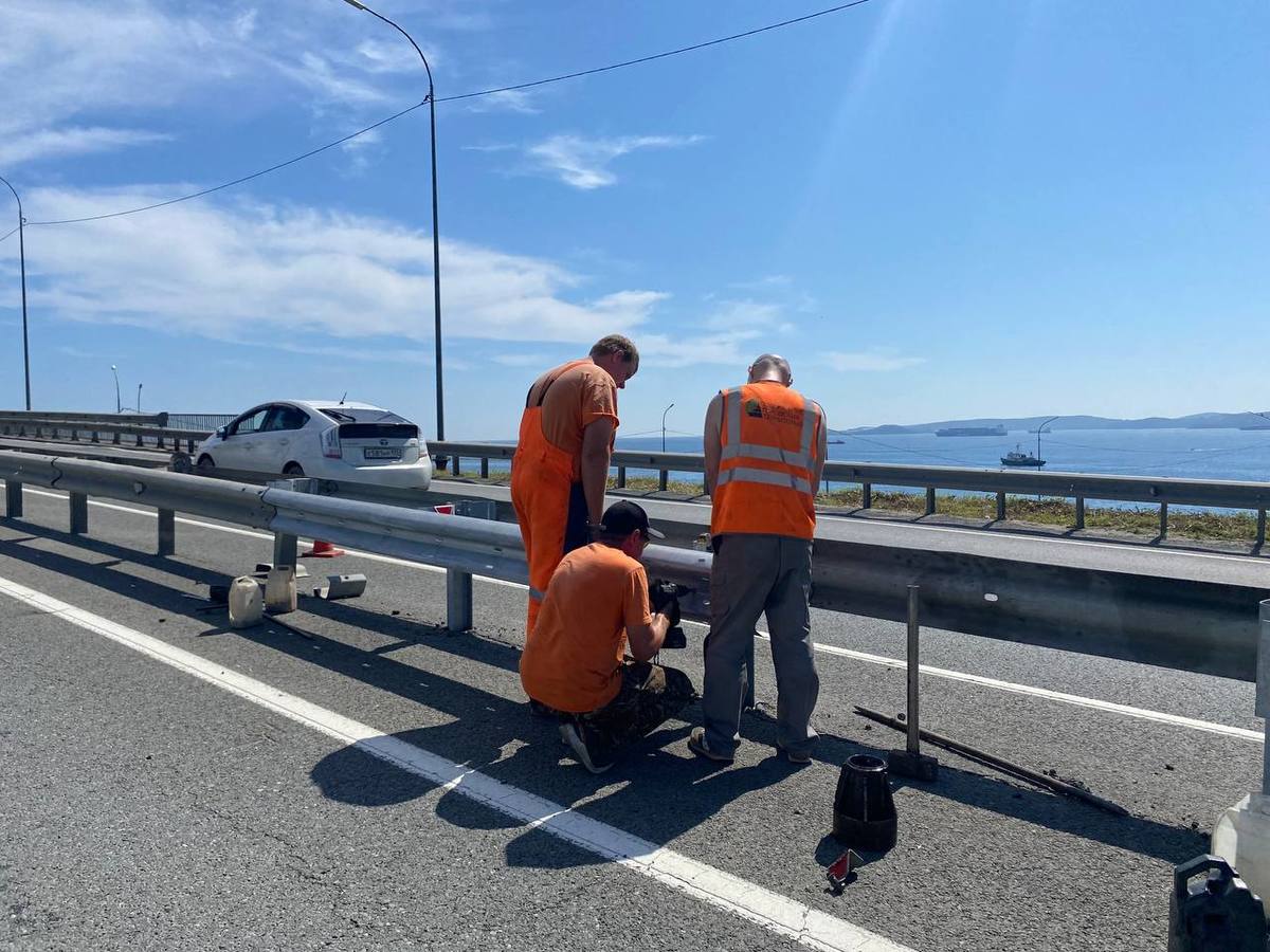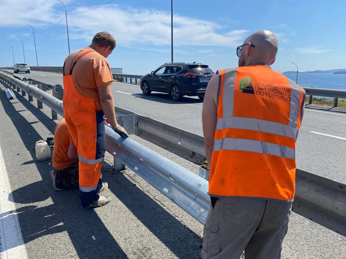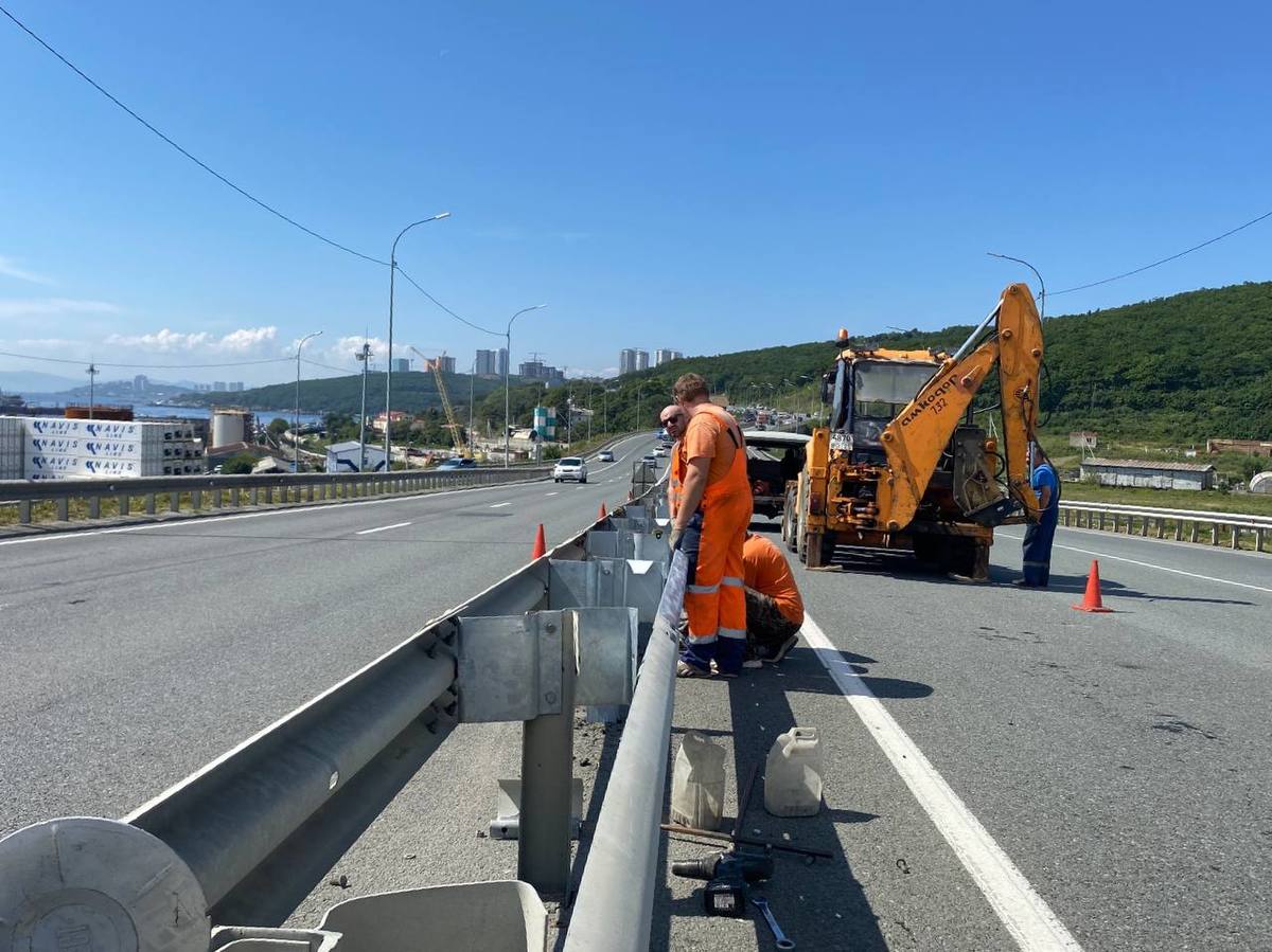 Сотрудники СГТ продолжают ремонт леерных ограждений на трассе Седанка – Патрокл. Вчера бригада специалистов работала на развязке, расположенной рядом с улицей Катерной. В общей сложности на данном участке восстановили 10 метров ограждений, деформированных в результате дорожно-транспортных происшествий. Сегодня работы на объездной трассе продолжатся.