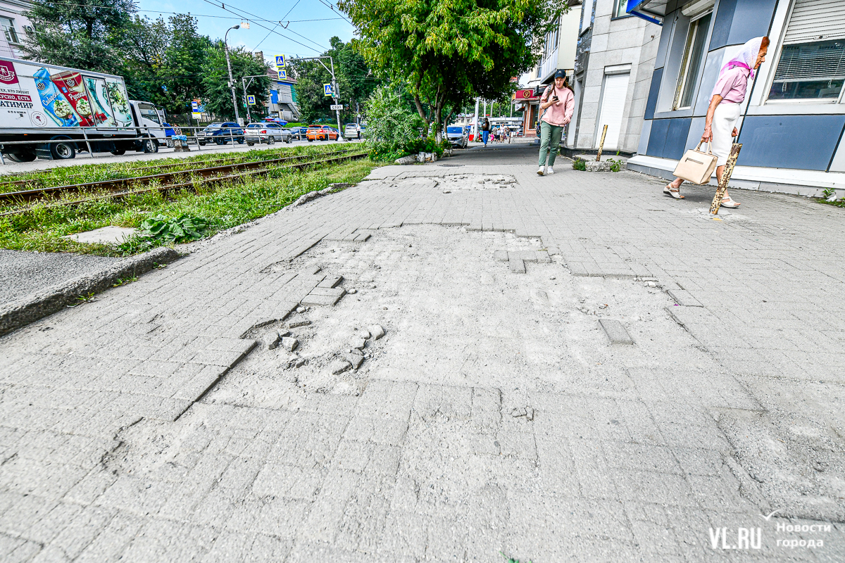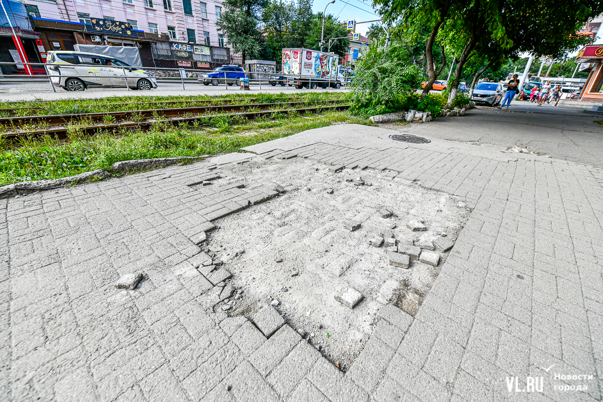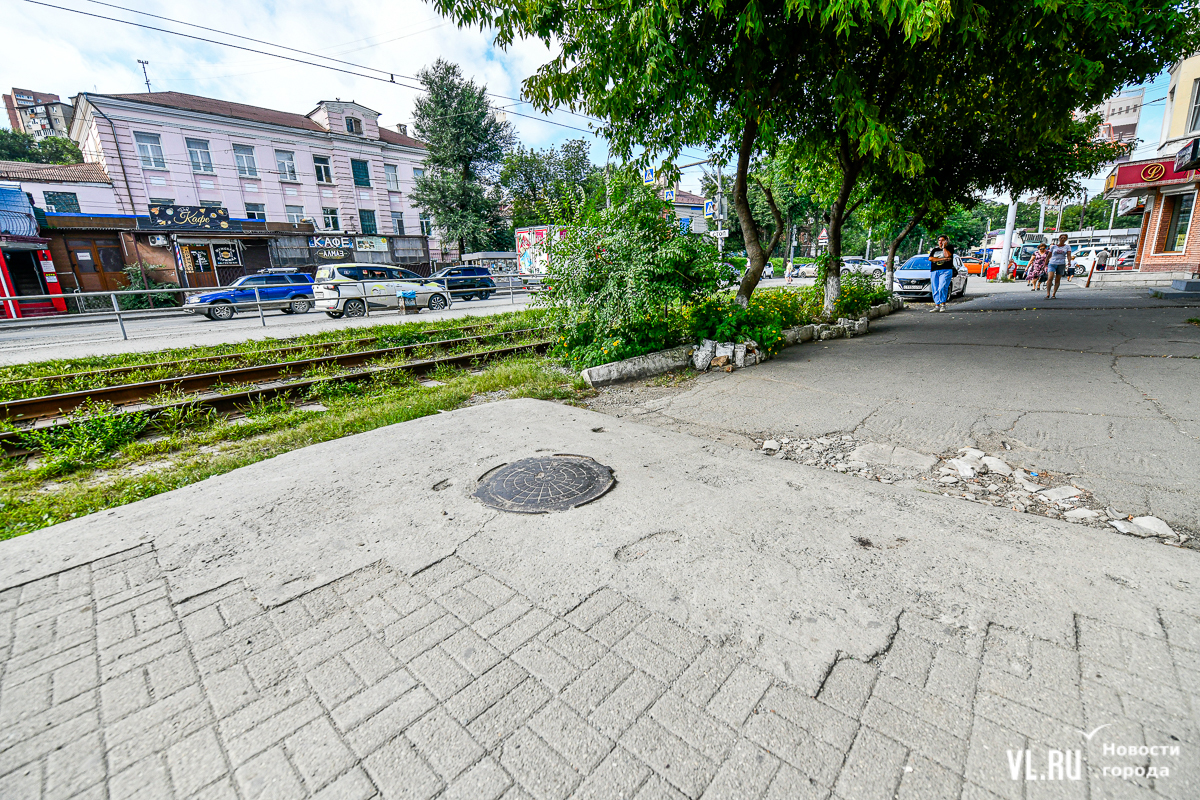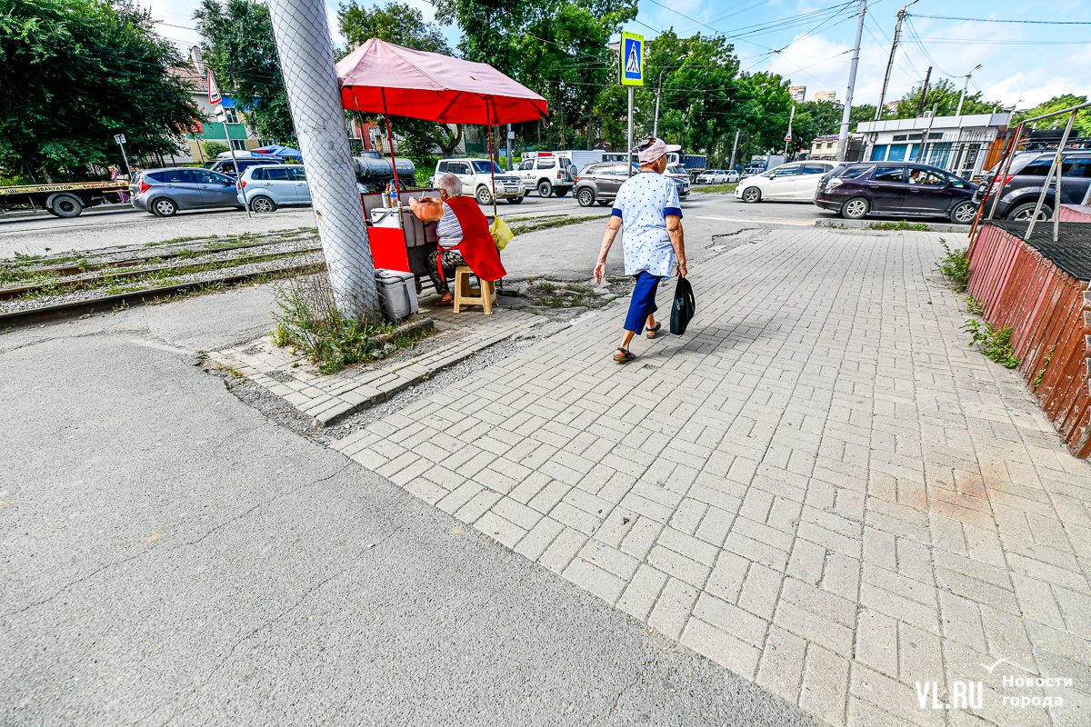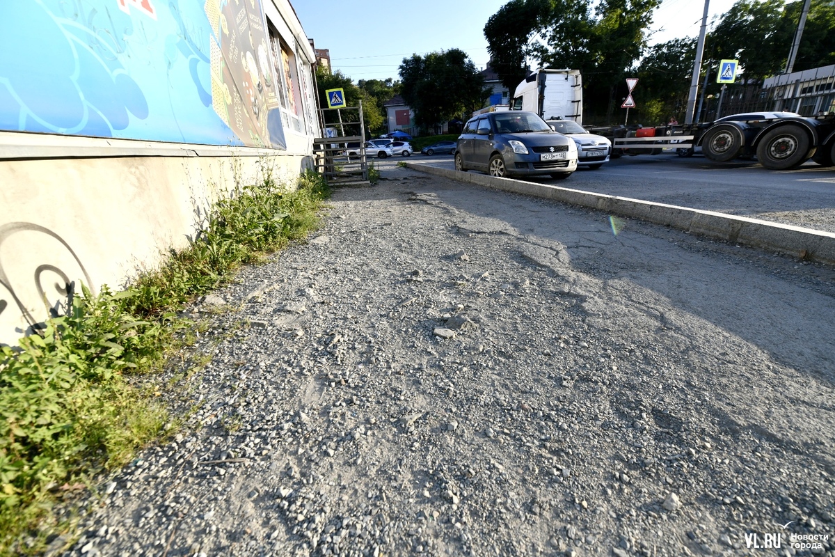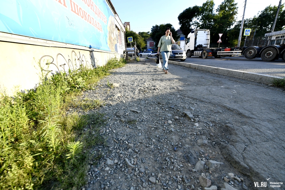 Корреспондент Новостей VL.ru, делавший репортаж о жизни соседней улицы Фадеева после затопления, побывал и на месте будущей пешеходной дорожки и нашёл тут тротуароподобную территорию с фрагментами асфальта. За углом, вдоль трамвайных путей на Борисенко, пешеходам тоже не сладко. Но этой территории в планах нет. Впрочем, даже один новый тротуар – тоже хорошо. Лишь бы его не постигла судьба дороги на Фадеева, которую смыло через две недели после ремонта. Этот участок как раз неподалёку, с другой стороны речки.
