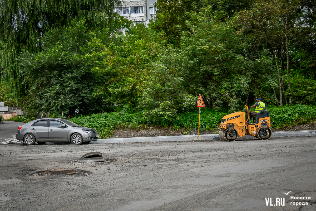 Стоит отметить, что улицы Никифорова, Сафонова и Героев Хасана вошли в федеральную программу «Безопасные и качественные дороги» (БКД) на этот год. Реконструирует дороги и тротуары здесь владивостокская компания «ИСТ» за 172 316 303 рубля. Работы начались в апреле – сейчас же фактически встали на паузу. Корреспонденты Новостей VL.ru заметили дорожников только на одном участке – в районе остановки «Поворот». С утра людей на участке было немного, да и техника в виде одного дорожного катка не торопилась просыпаться.
