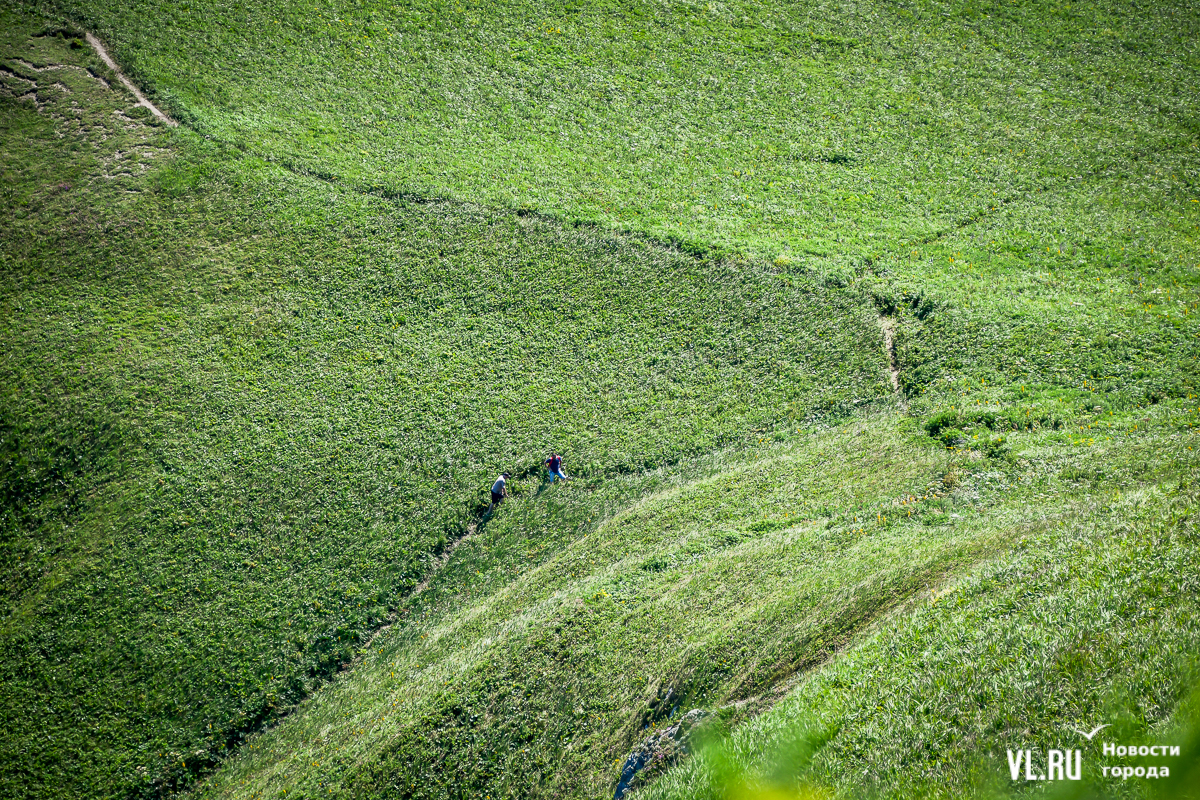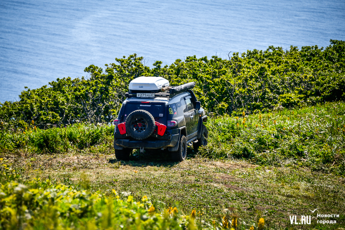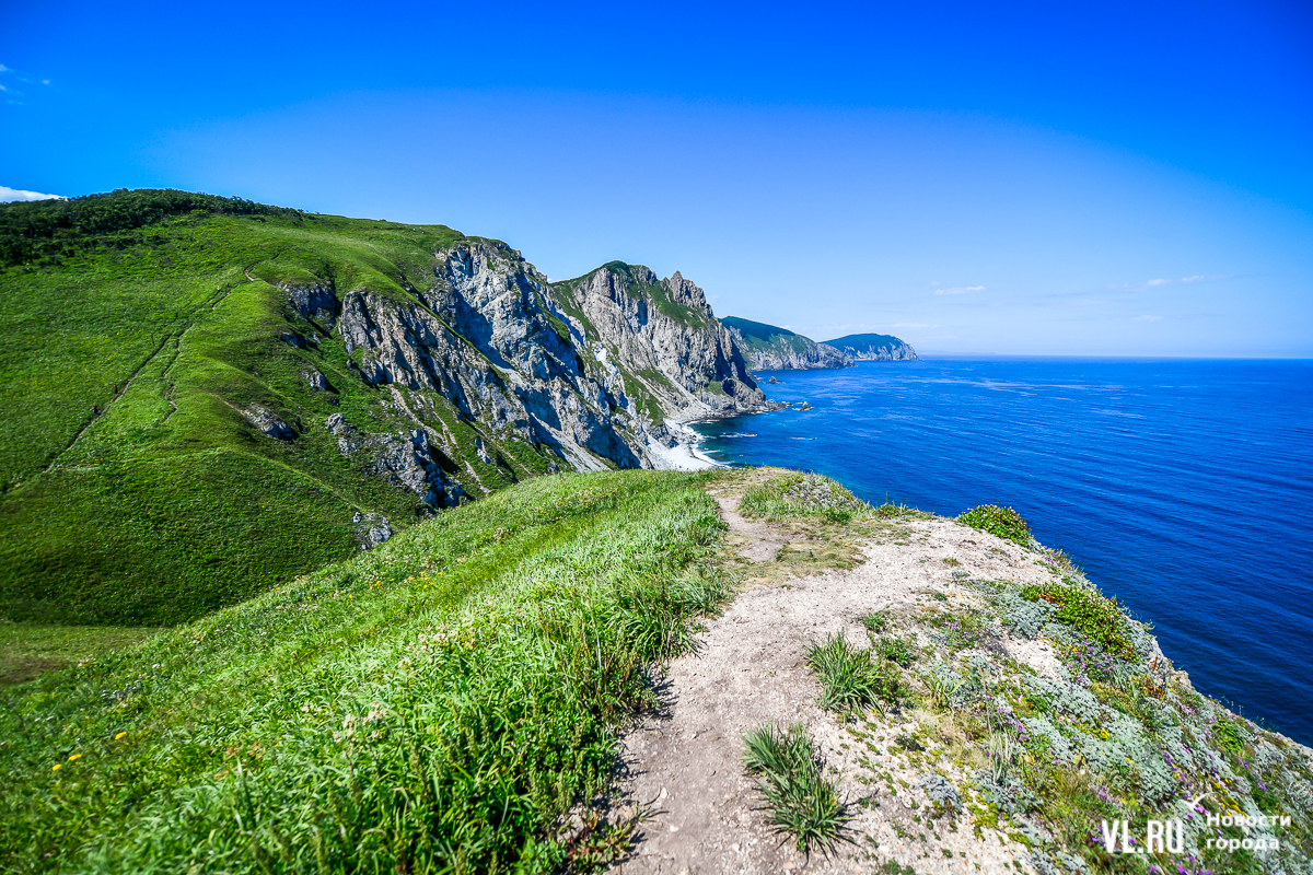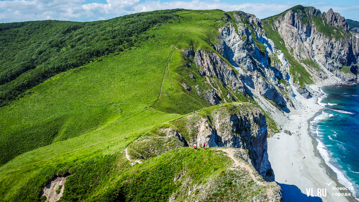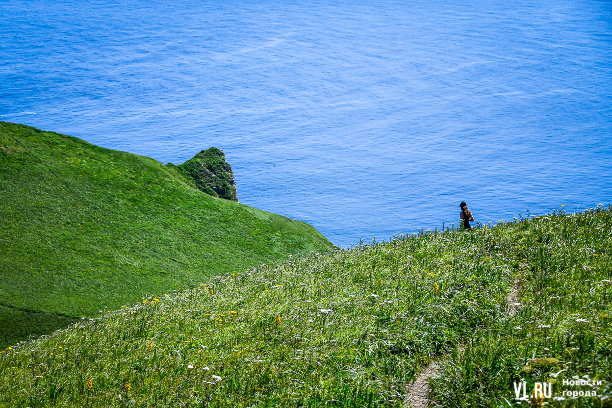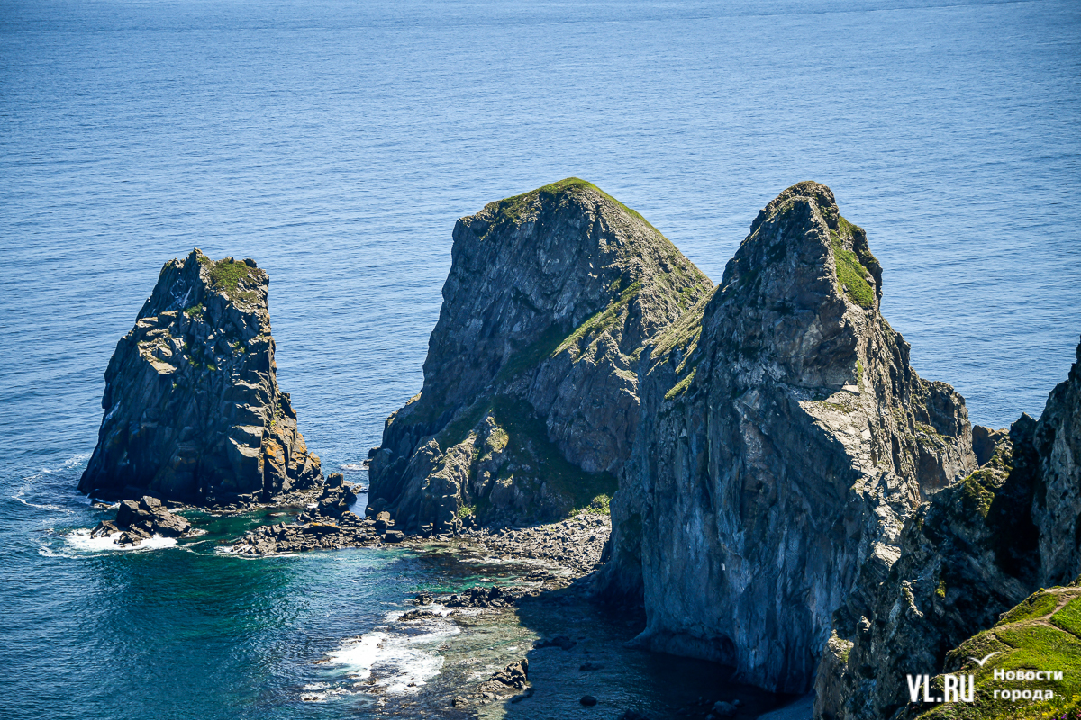 С высоты открывается просто невообразимый пейзаж – большое поле с цветами и холмами, а в конце возвышаются четыре обрывистые скалы, уходящие в море. Именно они и дали название мысу. Как показывает практика, часть туристов не уходит дальше видовой площадки, а зря. Если спуститься с сопки к самому мысу, то откроется совершенно другой вид. А после можно сходить на пустынный пляж. Тропинка к нему протоптана и хорошо просматривается. Правда, потом придётся потратить немало усилий, чтобы забраться обратно на видовую. Подъём получается местами крутой и затяжной. Именно поэтому лучше посещать мыс в прохладную погоду или во второй половине дня, когда температура воздуха не такая высокая. И обязательно захватите с собой питьевую воду.