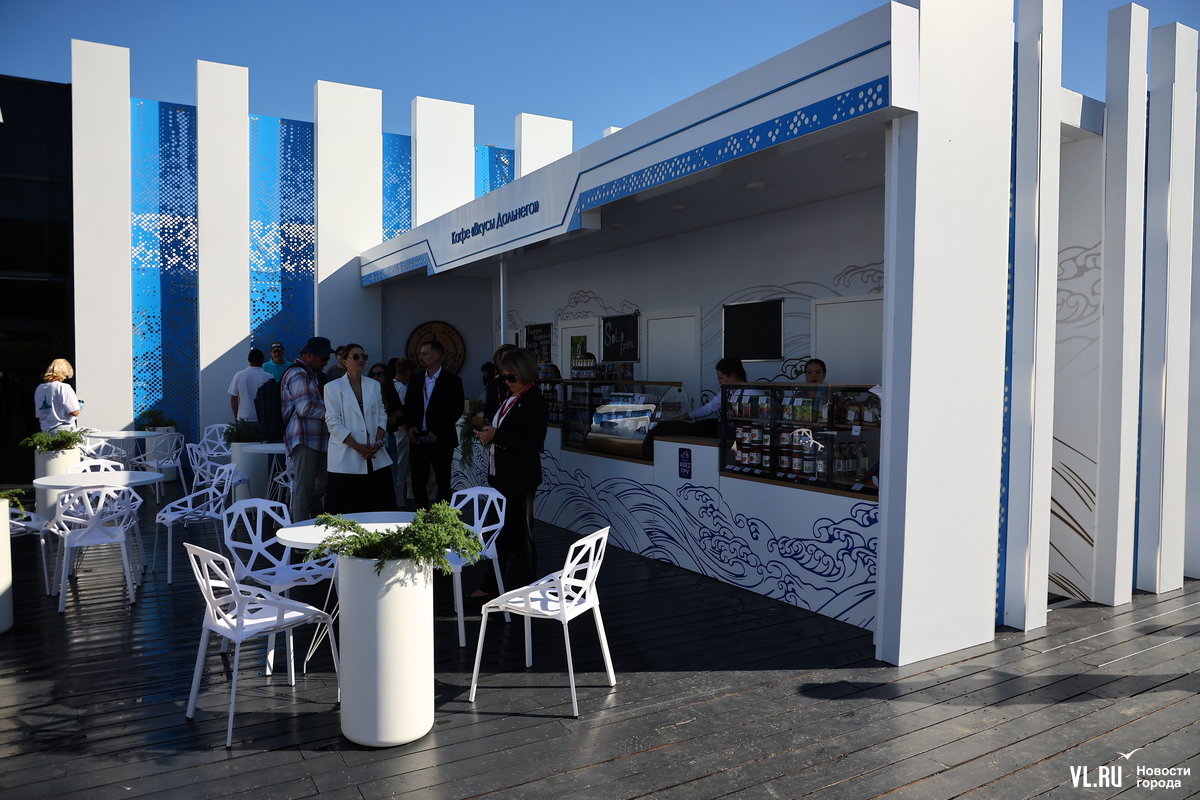 Основой экспозиции столицы ВЭФа, Владивостока, стал маяк, которые символизирует развитие. Он установлен на крыше павильона и будет светиться в темноте. Рядом с приморским павильоном раскинулся рыбный рынок. На нём можно попробовать продукцию приморских производителей.
