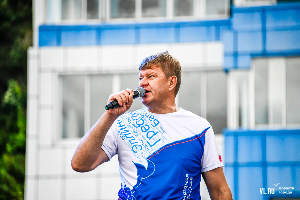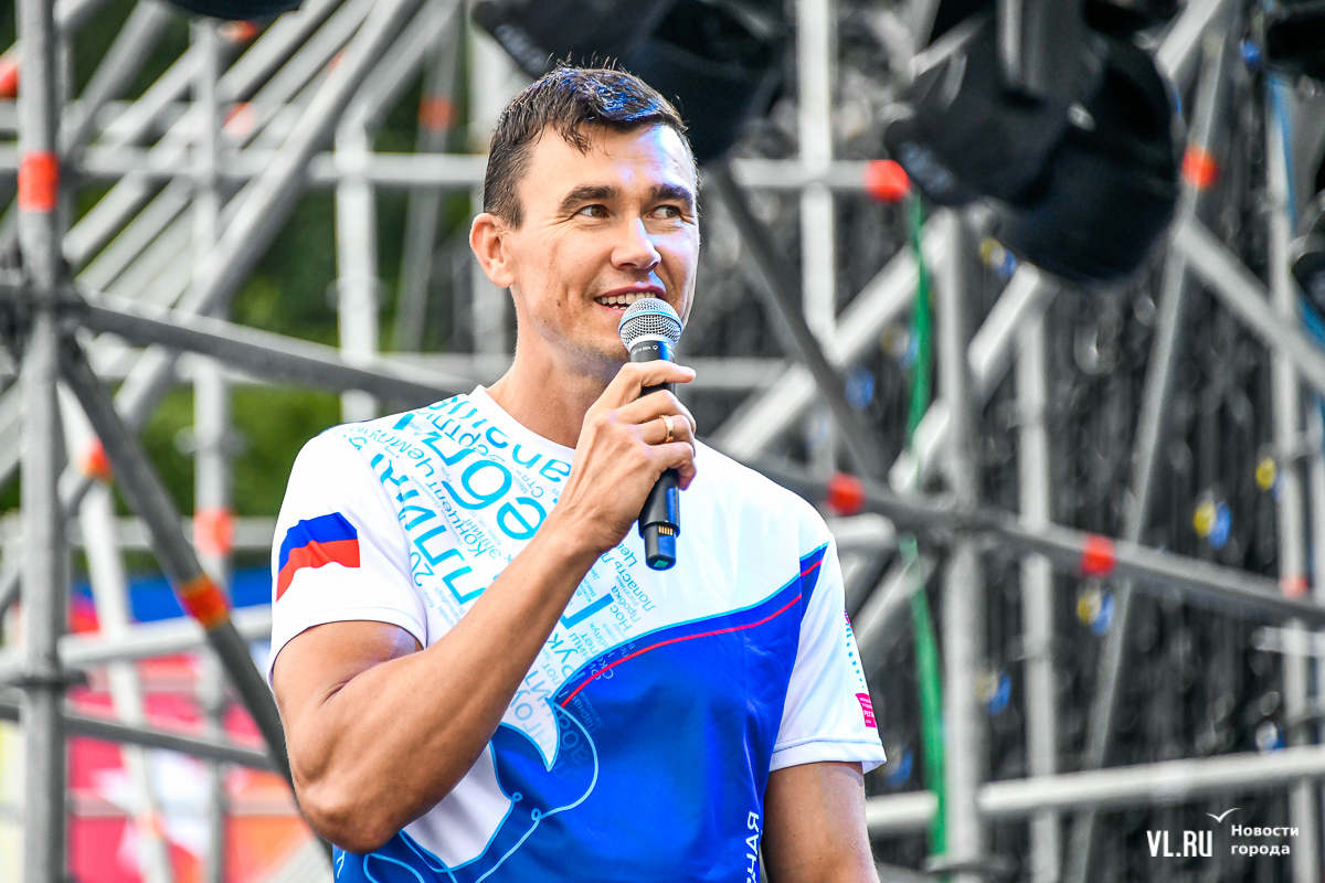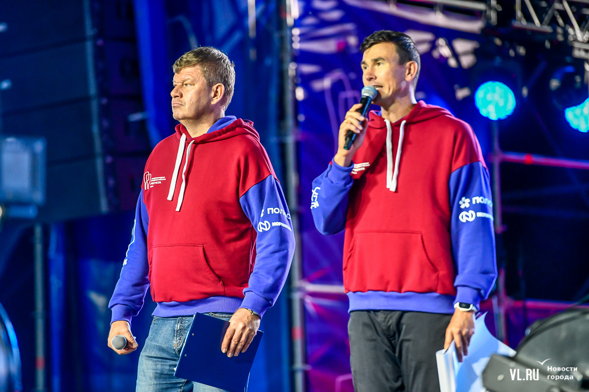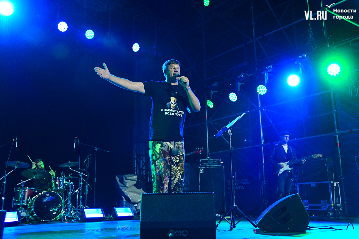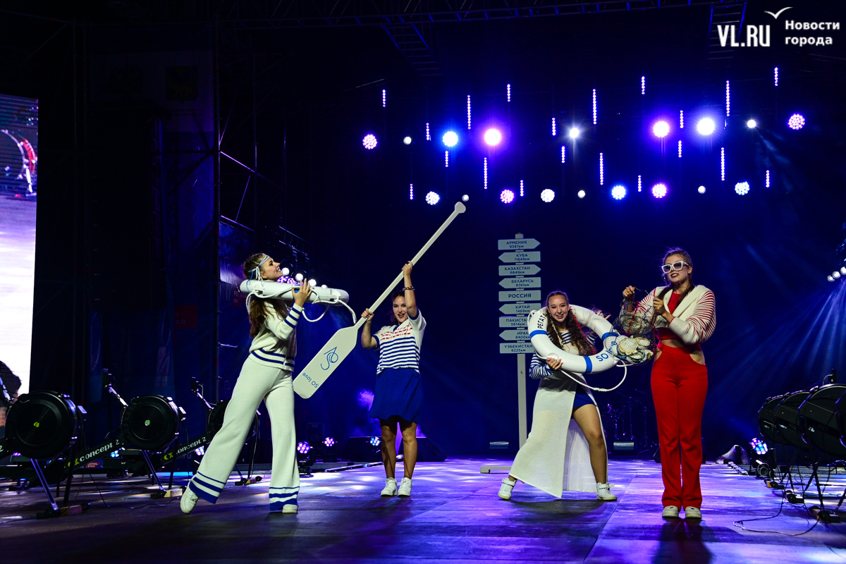 «Меня спрашивают: «Дима, какого хрена ты запел?» Отвечаю. После того, как запела Оля [Бузова], нам, как говорится, сам бог велел. Абсолютного живого пения, хороших песен мы сегодня посвящаем московской блестящей регате по гребле на байдарках и каноэ, девчонкам, которые поддерживали нас в Москве, эти героини спорта Приморья. А теперь они здесь, во Владивостоке. За это отдельное спасибо – проехали, пролетели тысячи километров. Конечно, нас сегодня объединяет и гребля академическая, и владивостокская международная регата. Её участникам, её чемпионам посвящается настоящий спортивный гимн Николая Добронравова и Александры Пахмутовой. Поём все», – произнёс со сцены Дмитрий Губерниев и исполнил песню «Команда молодости нашей».