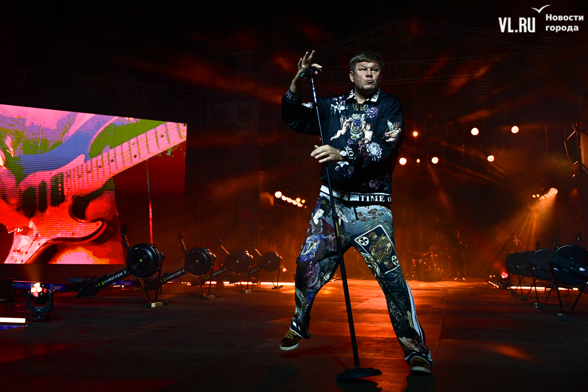 После награждения победителей соревнований по индор-гребле на сцену вновь вышел комментатор Дмитрий Губерниев, только уже в амплуа эстрадной звезды со своей собственной группой – флисовая спортивная кофта сменилась на эксцентричный шёлковый костюм, у микрофона появилась стойка, выполняющая во время концерта роль электрогитары. Первой он исполнил песню о неумолимо ускользающем времени (найти песни «Губер Бэнд», названной по фамилии известного солиста, на стримингах, кстати, довольно проблематично), а затем обратился к улыбающимся и недоумевающим зрителям.