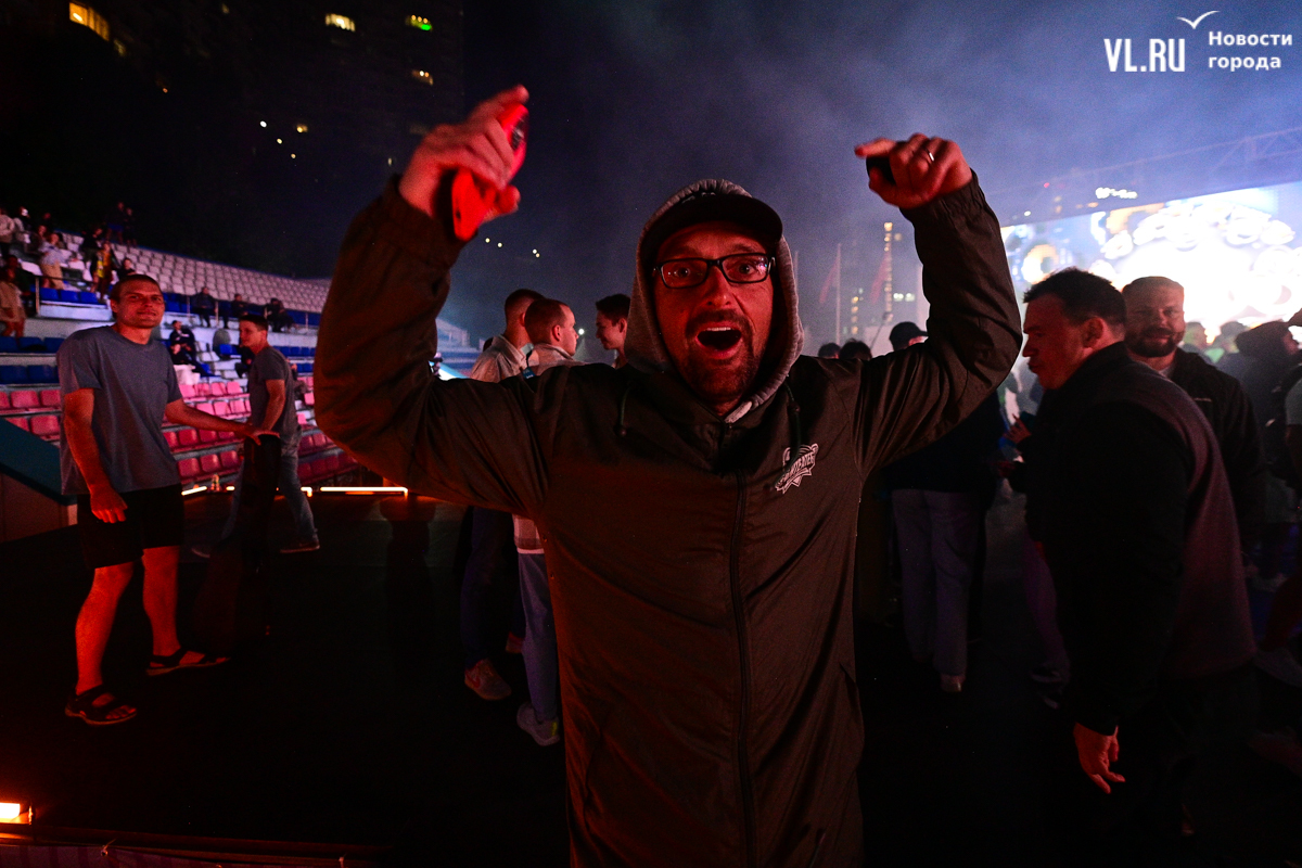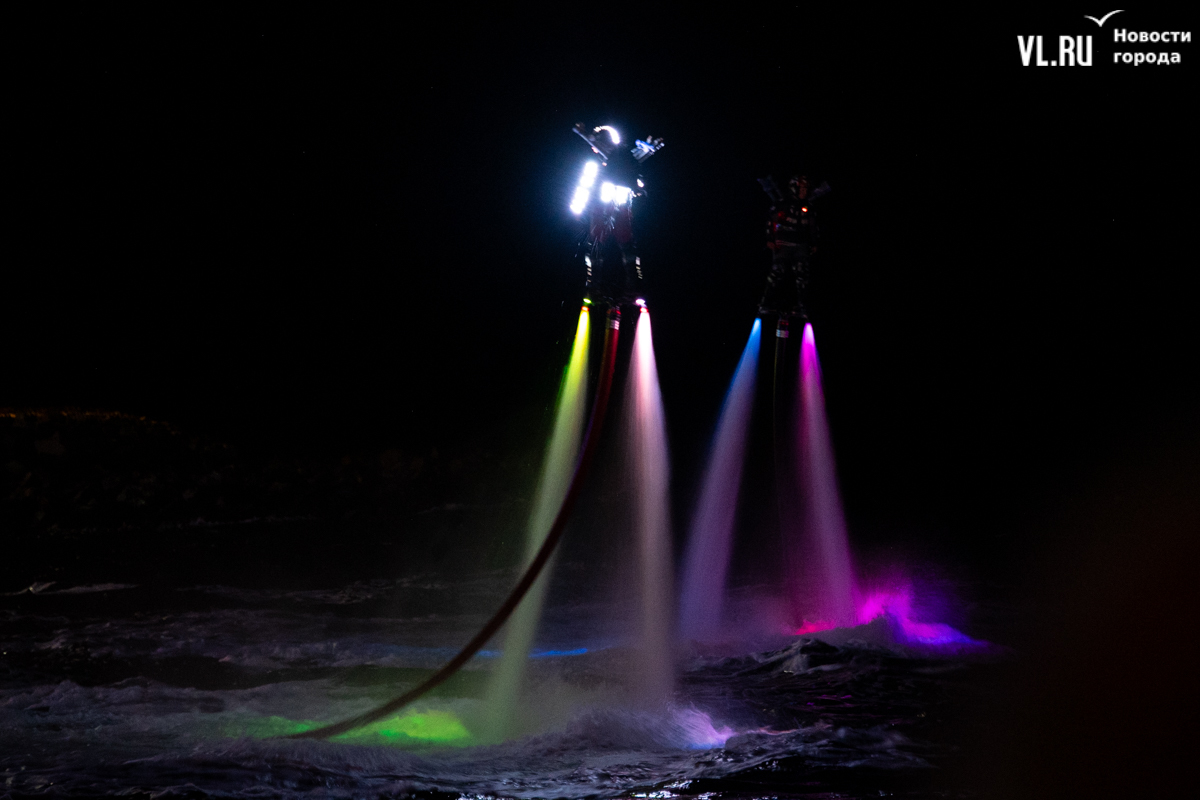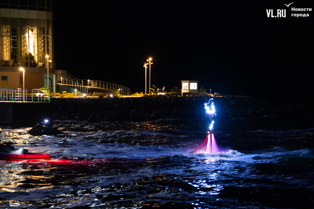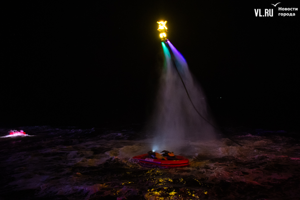 В конце всех ждало ещё и гидрофлай-шоу. Спортсмены, ставшие постоянными гостями массовых мероприятий Владивостока, вновь взмыли над Японским морем. Шоу проходило в привычной последовательности – сначала пируэты в воздухе, потом – шашки с цветным дымом, потом – крылья из фейерверков. Даже песни были те же, что и на День молодёжи. Только в этот раз можно было насладиться шоу в более камерной обстановке. Дети уже засыпали на руках у родителей, а те, в свою очередь, снимали всё на телефон, чтобы оставить в памяти этот необычный, эксцентричный, как костюм Губерниева, но по-своему уютный праздник. Уже забыв, что посвящён он был гребле.
