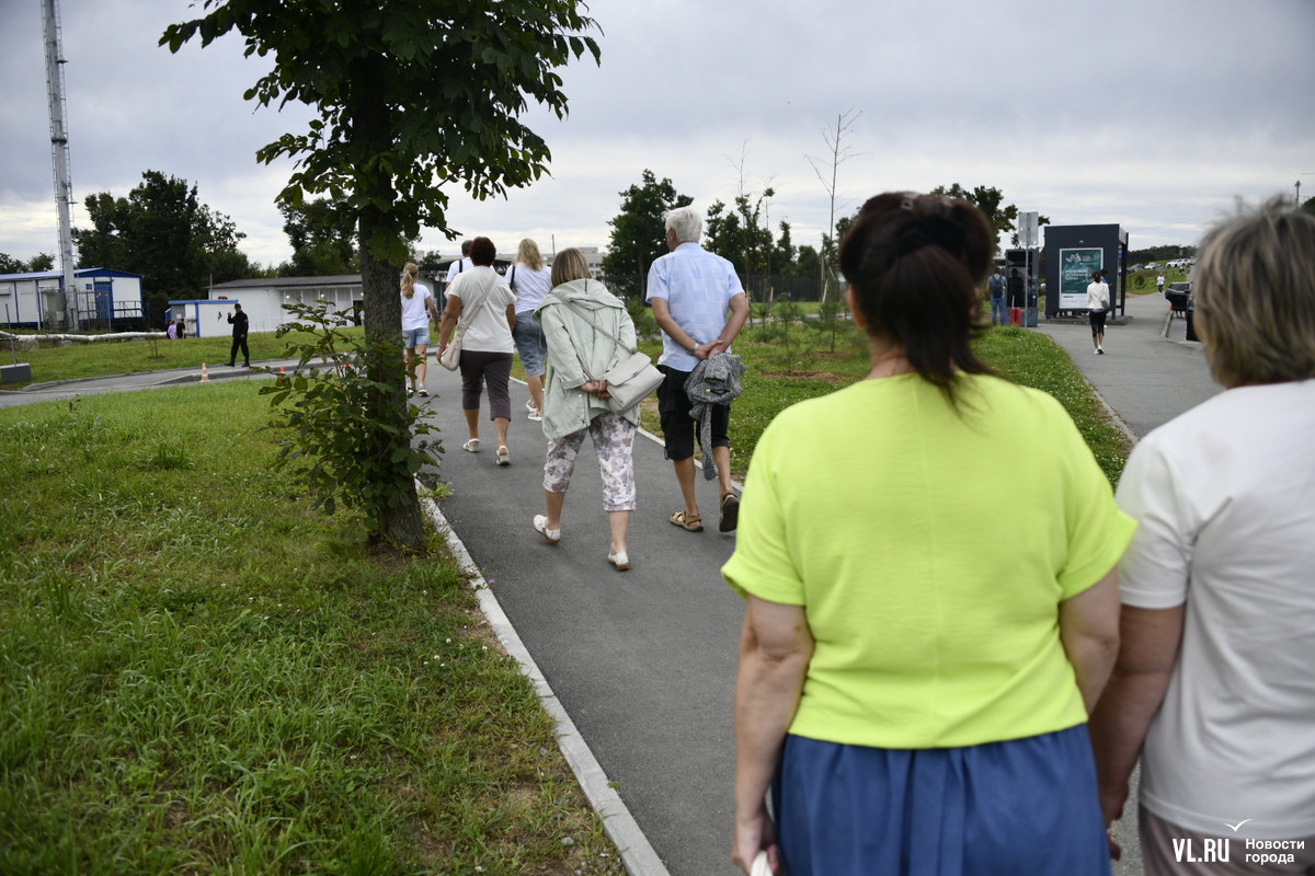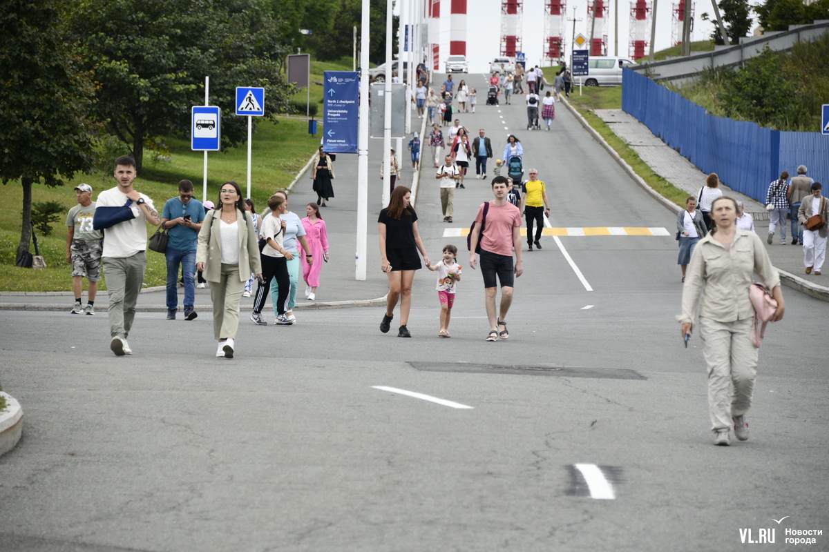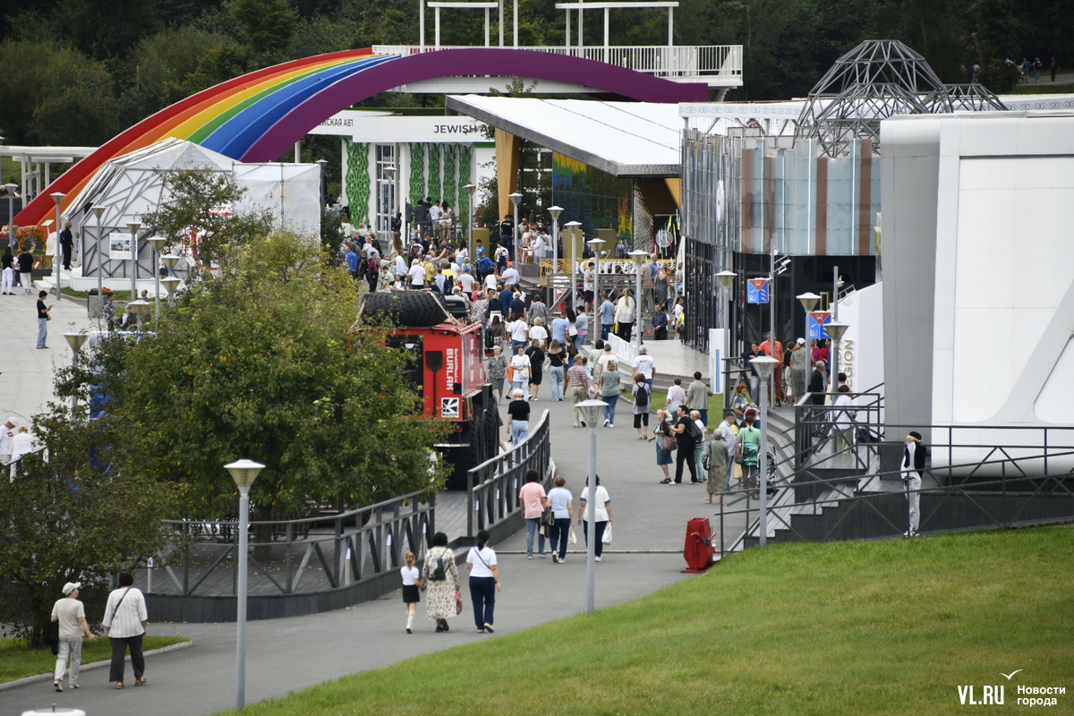 Утром в субботу, 7 сентября, выставка «Улица Дальнего Востока» на Русском острове, работавшая на ВЭФ только для избранных, теперь открылась для всех желающих. Сотни людей уже пришли на Университетскую набережную, пройдя досмотр на входе. Ранее нужно было зарегистрироваться и получить билет, но сегодня их тут не проверяют. Войти могут все желающие просто по паспорту.