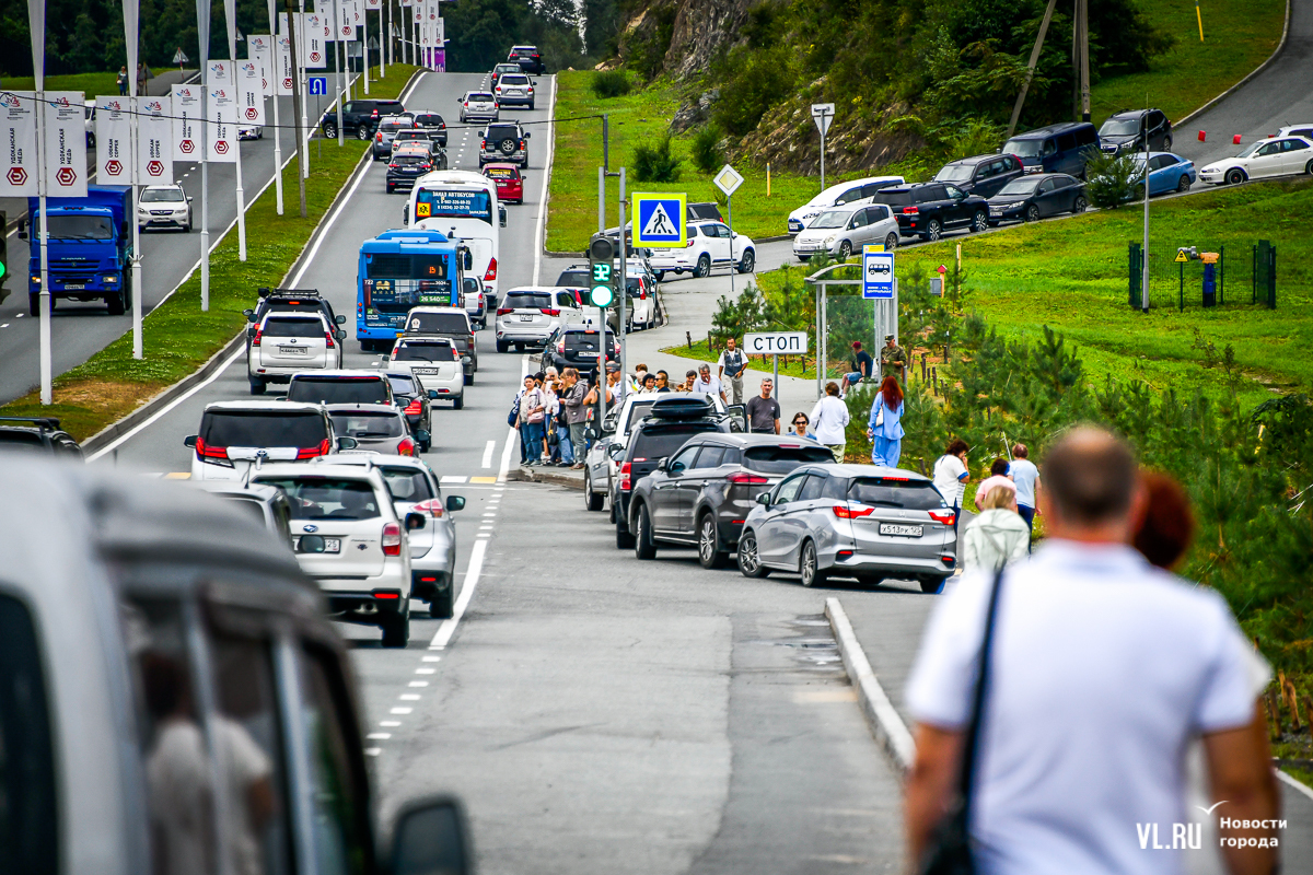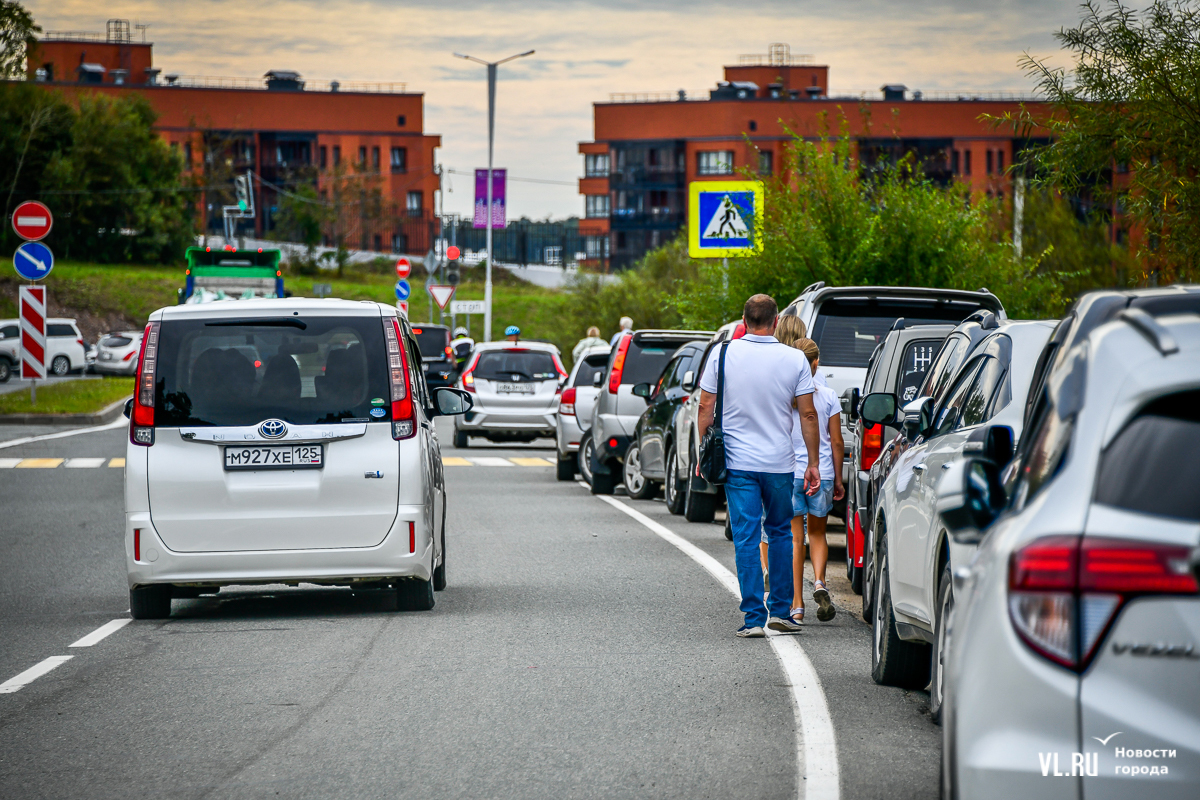 Попасть на «Улицу Дальнего Востока» можно только через северный КПП университета, возле остановки «Мини-ТЭЦ Центральная». Остальные ворота пока открыты только для аккредитованного на ВЭФ транспорта. Поэтому, съехав с моста, потенциальные посетители выставки сталкиваются с первой проблемой – поиском парковочного места. Машины выстраиваются в ряд в сторону Поспелово, Канала, стройным рядом идут вплоть до заправки. Оставить автомобиль можно на парковках вдоль Университетского проспекта (они работают до 20:00), но поскольку вход на «Улицу» только один, поэтому, оставив машину на парковке напротив главного корпуса, придётся ещё минут 10 идти пешком до КПП у остановки «Мини-ТЭЦ Центральная».