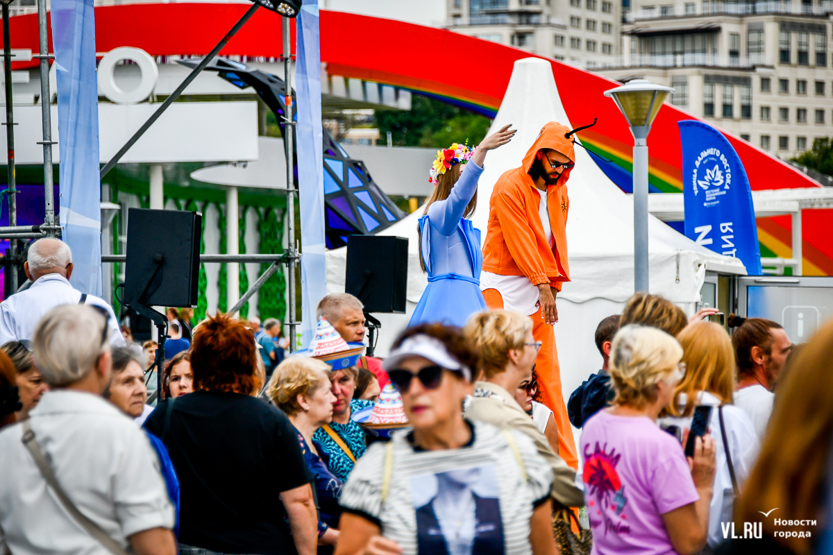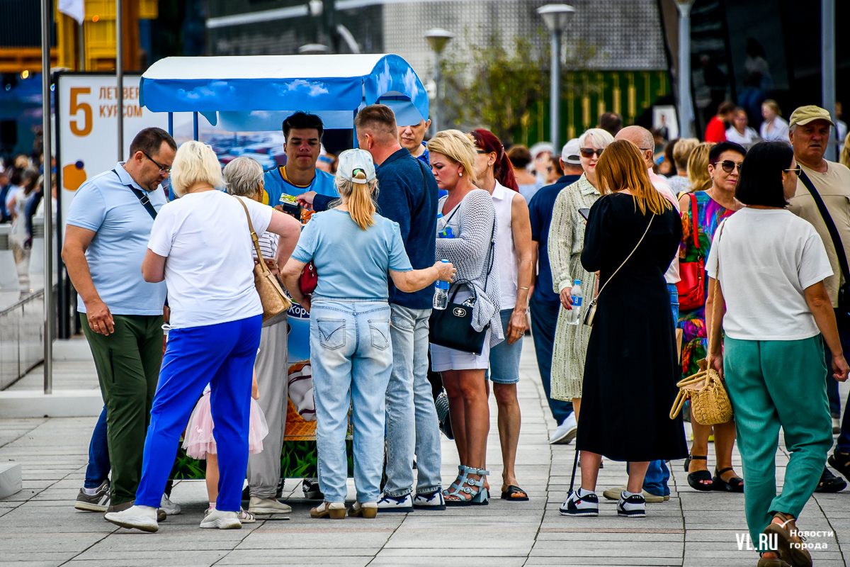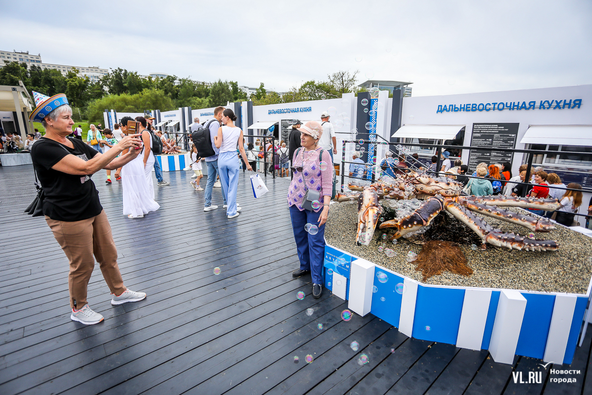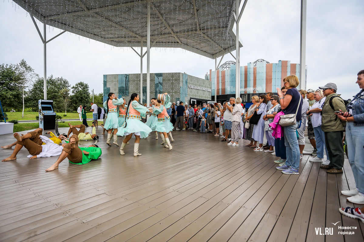 Выставка «Улица Дальнего Востока» открылась сегодня «для всех желающих» во всех смыслах – пускают даже безбилетников. Несмотря на то, что мероприятие проходит каждый год, на Университетской набережной всегда собираются толпы. В этот раз гостей больше всего порадовали выступления бурятских народных коллективов, амурозавр, краб, пускающий пузыри, и интерактивный фонтан. Самые большие очереди выстроились к туалетам, за дальневосточными пловом и ухой, а также за золотыми украшениями. А основные сложности возникли с поиском парковки и свободного места в автобусе. Что понравилось посетившим выставку этого года и к чему стоит быть готовым тем, кто только на неё собирается, рассказывает корреспондент Новостей VL.ru.