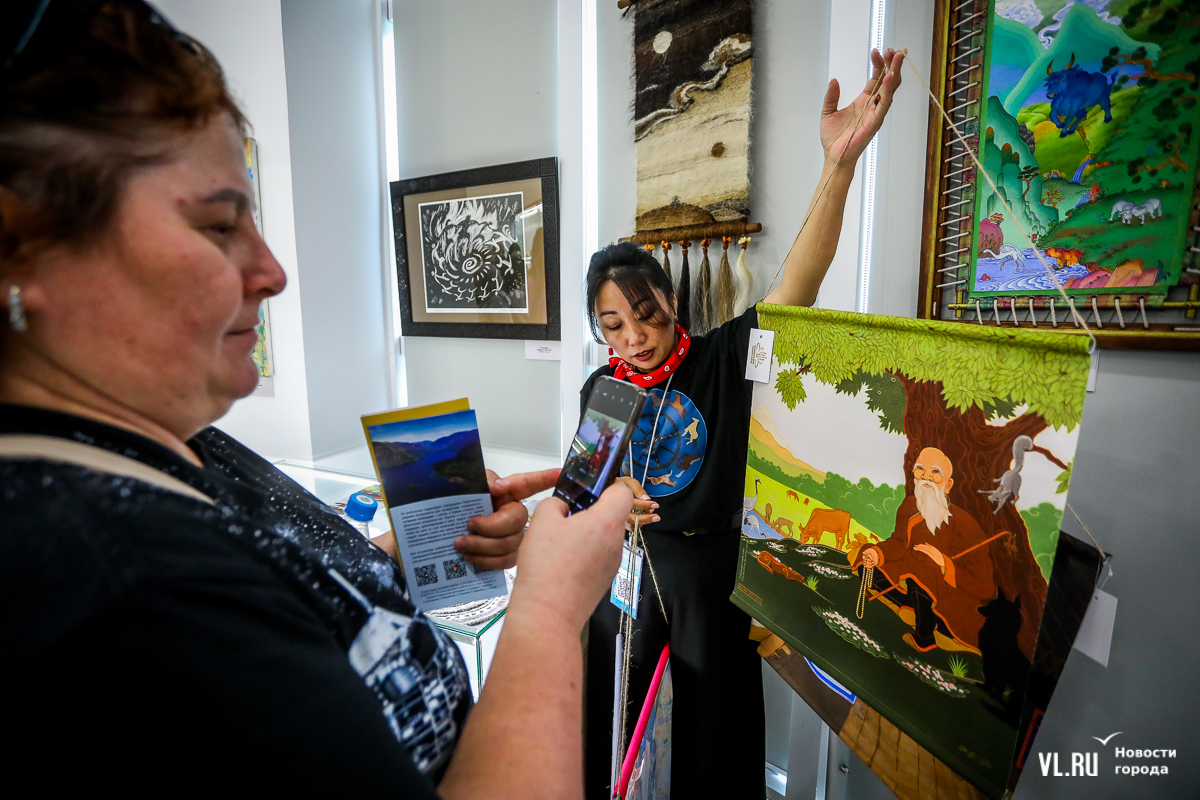 «Все добрые, милые. Есть что посмотреть – и в Магадане (Магаданской области), и на Камчатке. А буряты как пели, как танцевали – это надо было видеть, такие молодцы. Понятно, что это не для нас делается, а для больших людей, для галочки. Но из-за этого, кстати, сделано как-то всё со вкусом, современно, не как на базаре. Так что мне понравилось», – поделилась посетительница выставки Елена.