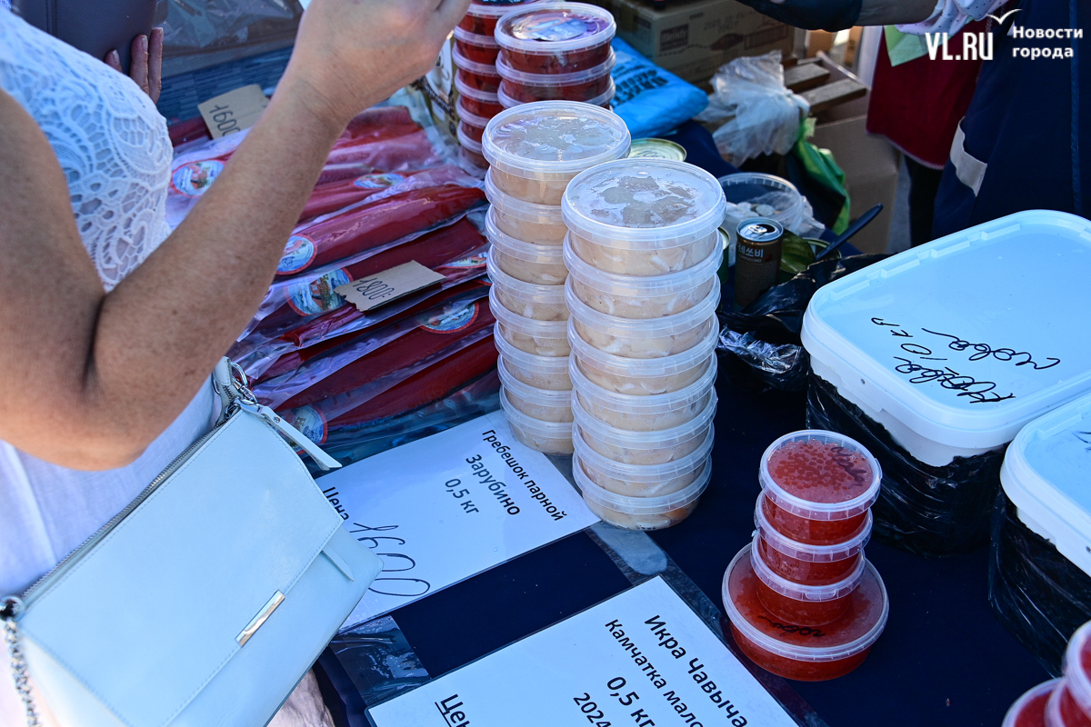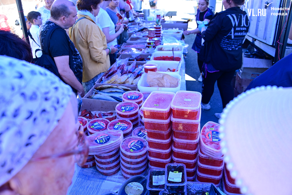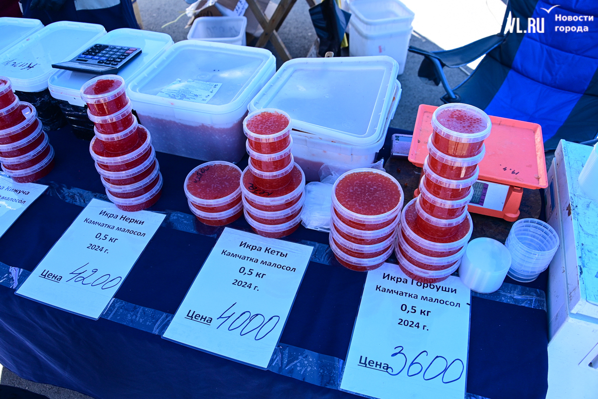 Самая дорогая – икра чавычи, 4500 за полкило. Правда, рядом, на другом прилавке, она дешевле – 3500. А кетовая – 3250. И вот здесь не протолкнуться. Продавцы достают икру из пластмассовых вёдер и взвешивают, сколько нужно. Эта икра, как и соседская, тоже с Камчатки.