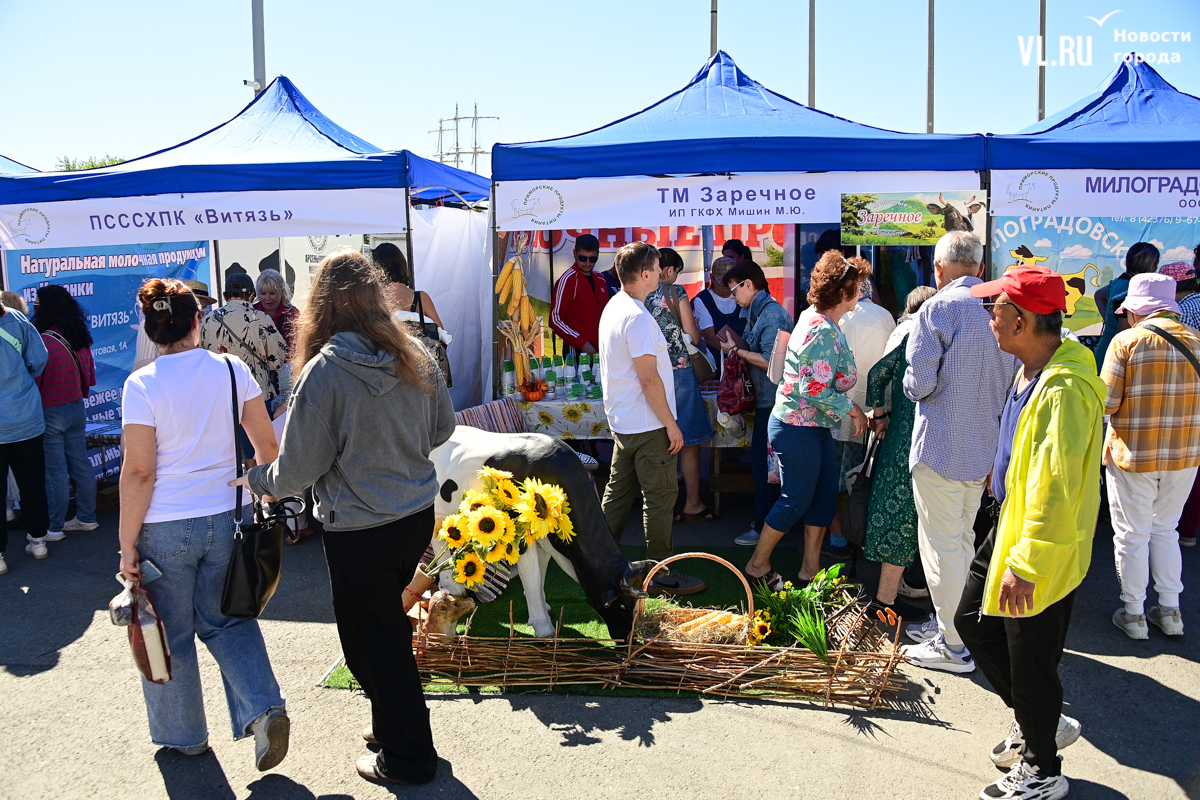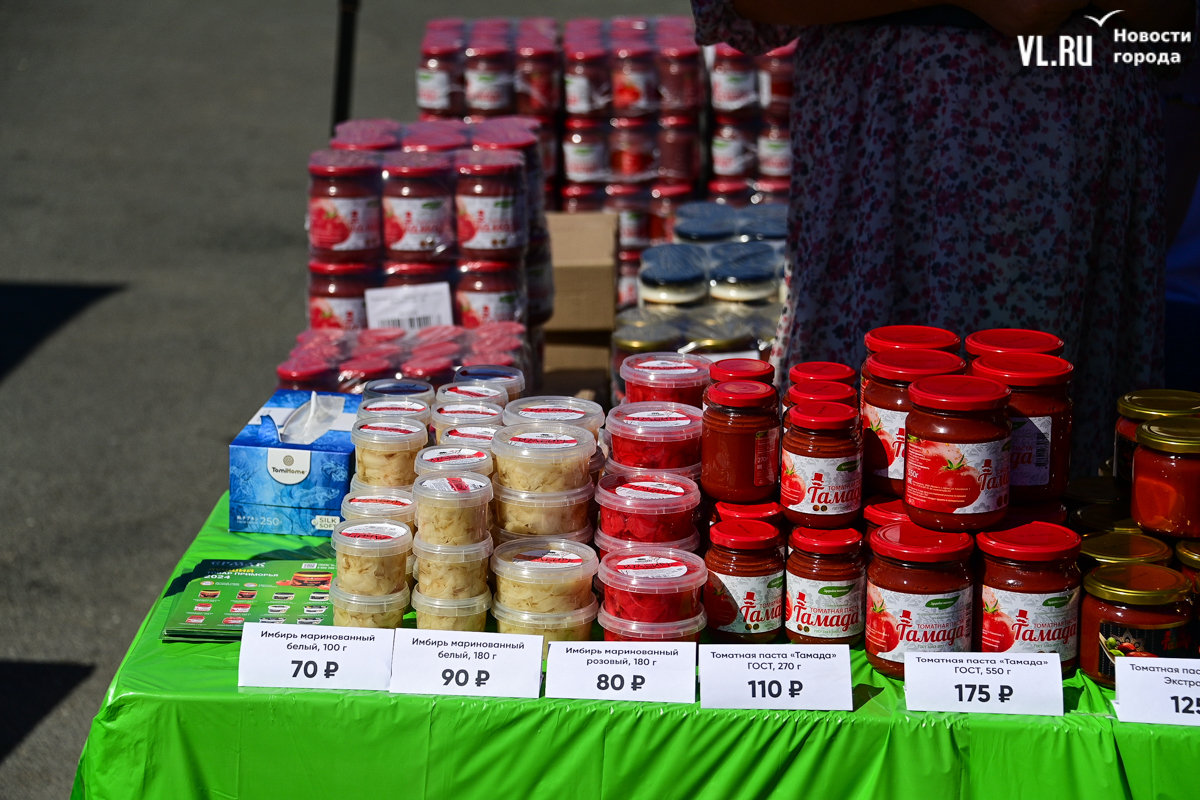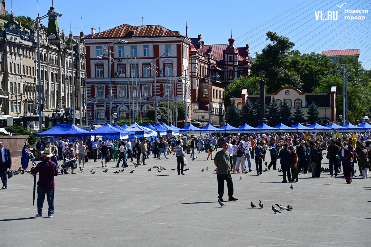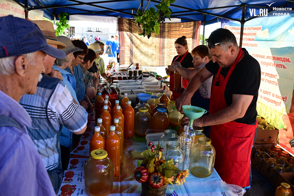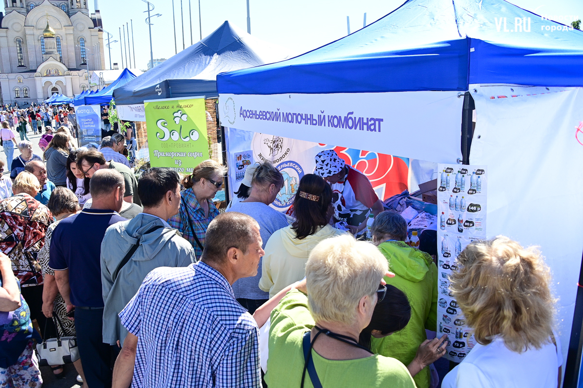 На центральной площади Владивостока сегодня с песнями и танцами открыли выставку-ярмарку «Приморские продукты питания». Правда, работать она будет один день, 12 сентября, до 19 часов – причём это будний день, когда люди на работе. Ярмарка проходит уже в 28-й раз, здесь традиционно продают молочную, мясную и рыбную продукцию, овощи и дикоросы.