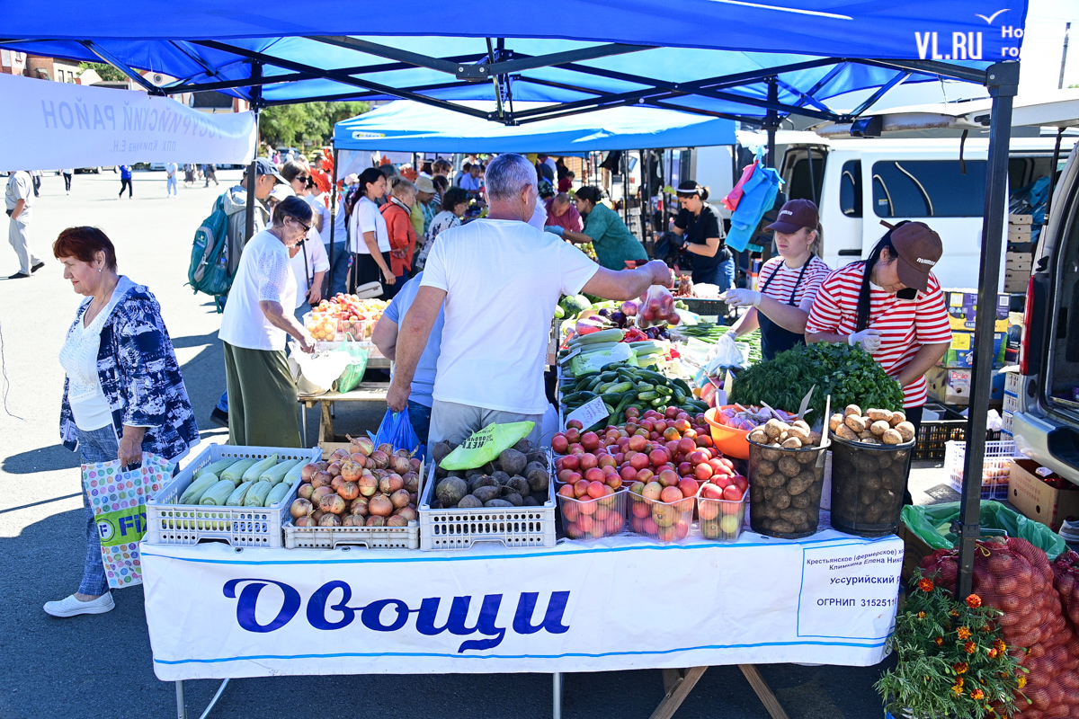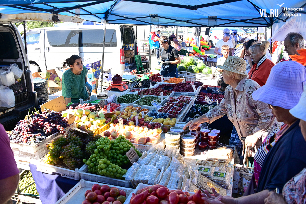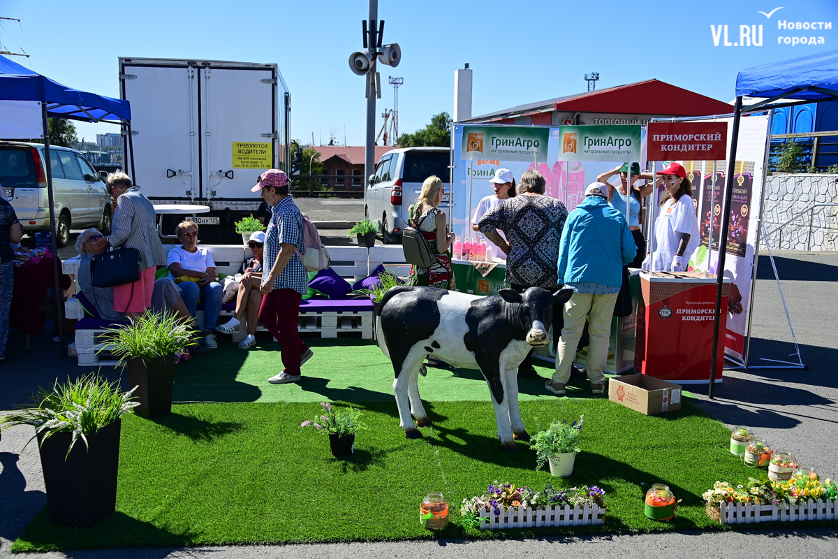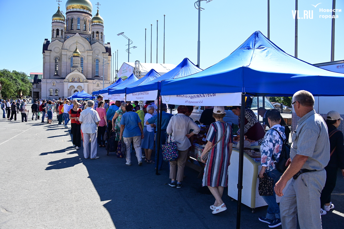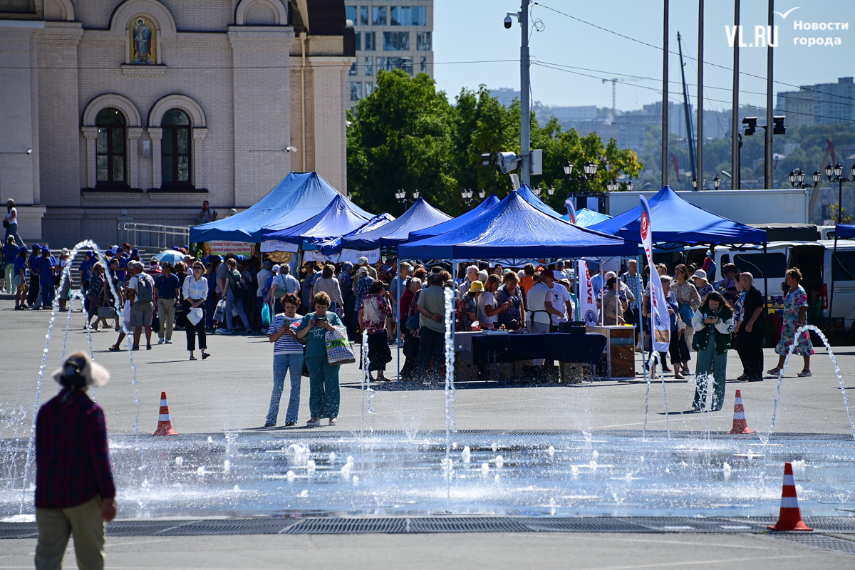 На центральной площади Владивостока сегодня с песнями и танцами открыли выставку-ярмарку «Приморские продукты питания». Правда, работать она будет один день, 12 сентября, до 19 часов – причём это будний день, когда люди на работе. Ярмарка проходит уже в 28-й раз, здесь традиционно продают молочную, мясную и рыбную продукцию, овощи и дикоросы.