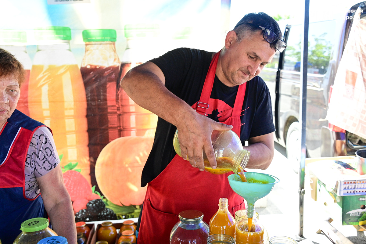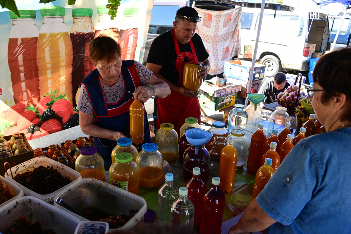 На этот раз на площади немного и продавцов, и покупателей. Что касается первых – активнее всего, пожалуй, представлены большие и маленькие предприятия с мясной и молочной продукцией. Фермеров с овощами и дикоросами приехало гораздо меньше, чем в прошлом году.