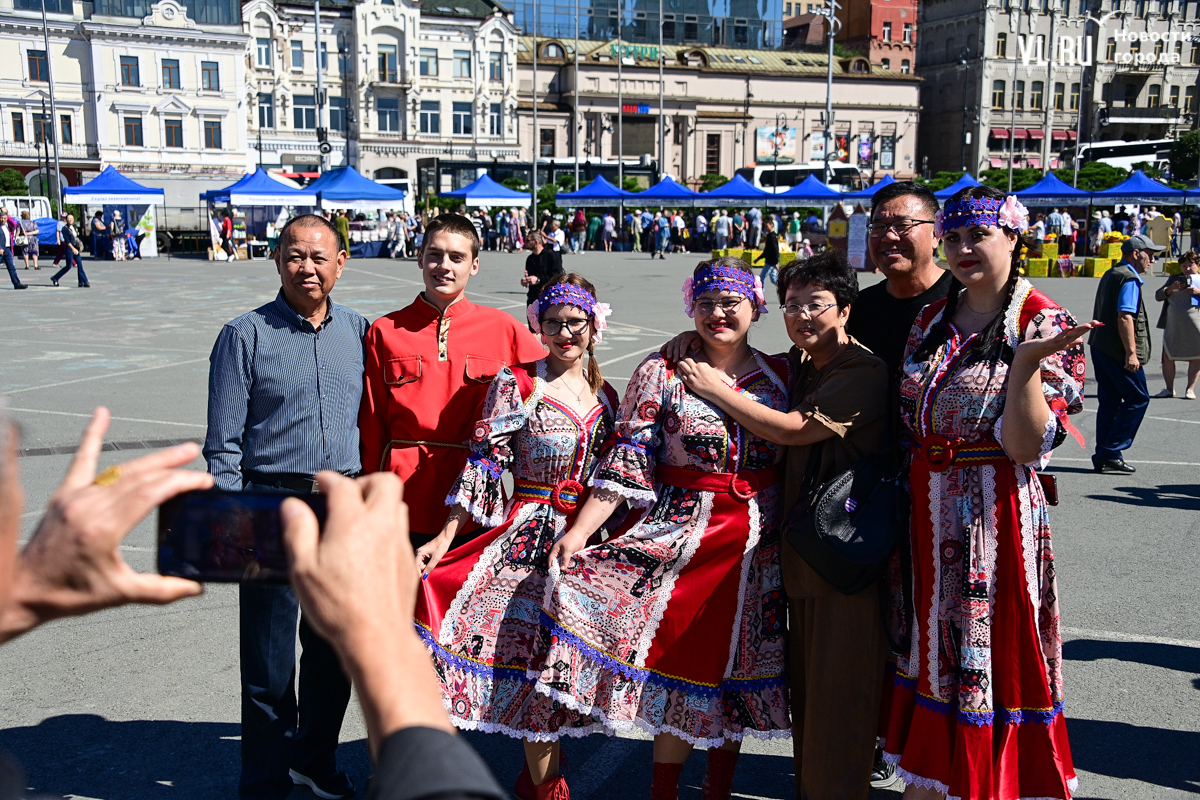 На сцене посреди площади поют и пляшут, а самые благодарные и едва ли не единственные зрители этого концерта – гости из Китая. Хлопают, отбивают такт, фотографируются с артистами на память. И активно раскупают шоколад и конфеты «Приморского кондитера», который тоже здесь есть. Настроение у китайских туристов хорошее, а вот приморские покупатели неулыбчивы: