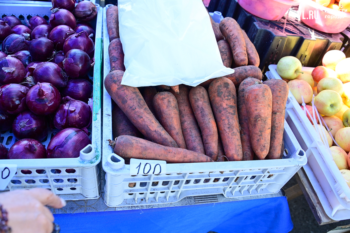 Ненамного дешевле помидоров огурцы из Черниговского района – 250 рублей. Такая цена по всему рынку, да их и немного. А чистая, без земли морковь из Спасска стоит 100 рублей за килограмм.