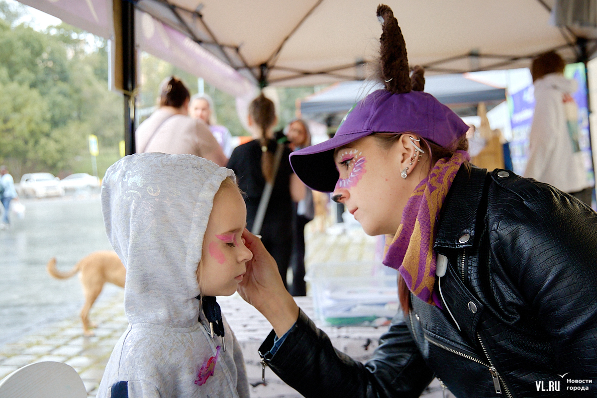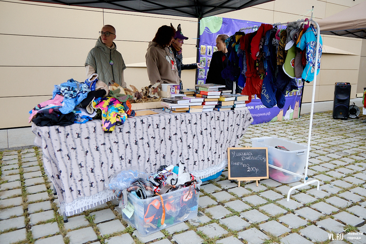 Кроме собак, на фестивале было пять тематических стендов. Здесь можно было оставить подарки и лакомства для подопечных фонда, выбрать книгу за символические 200 рублей, купить одежду для своего питомца или мерч фонда, например, магнитики с мемами, а также сделать аквагрим. Однако из-за дождя программу пришлось сократить, и мероприятие закончилось раньше на два часа.