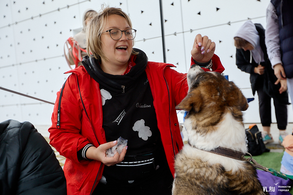 «У нас на площадке находится 18 собак, но было заявлено 20. Майбаха мы увезли, потому что он был самой ранней пташкой. Он сюда приехал в 10 и уже к 12 просто устал, вымотался. А Гномушка испугался сегодня машины, отказался ехать», – рассказывает Ксения Попова, одна из организаторов.