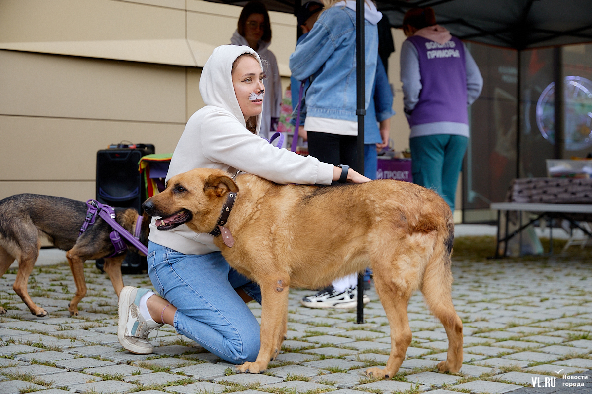 На фестивале можно познакомиться с животными, поиграть, потискать, но забрать домой нельзя. Чтобы такое серьёзное решение не было принято на эмоциях, людям, которые присмотрели собаку, дают время подумать. Например, Майбаха, которого довольно рано увезли, успел заметить один из посетителей фестиваля. Возможно, он надумает и возьмёт этого пса себе.