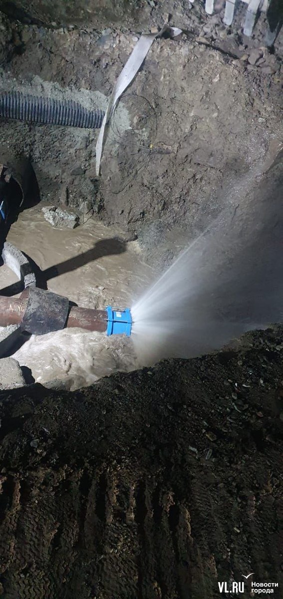 Обновление: В правительстве Приморского края подтвердили, что аварийная ситуация возникла в результате земляных работ, проводимых подрядчиком по строительству.