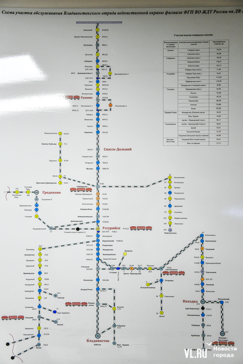 Караул пожарного поезда дежурит сутками. Каждый рабочий день проходят тренировки по работе в экстремальных условиях. В свободное от пожаров и тренировок время сотрудники могут заниматься хозяйственными делами. Когда приехали корреспонденты Новостей VL.ru, члены караула красили забор и наводили порядок на территории.