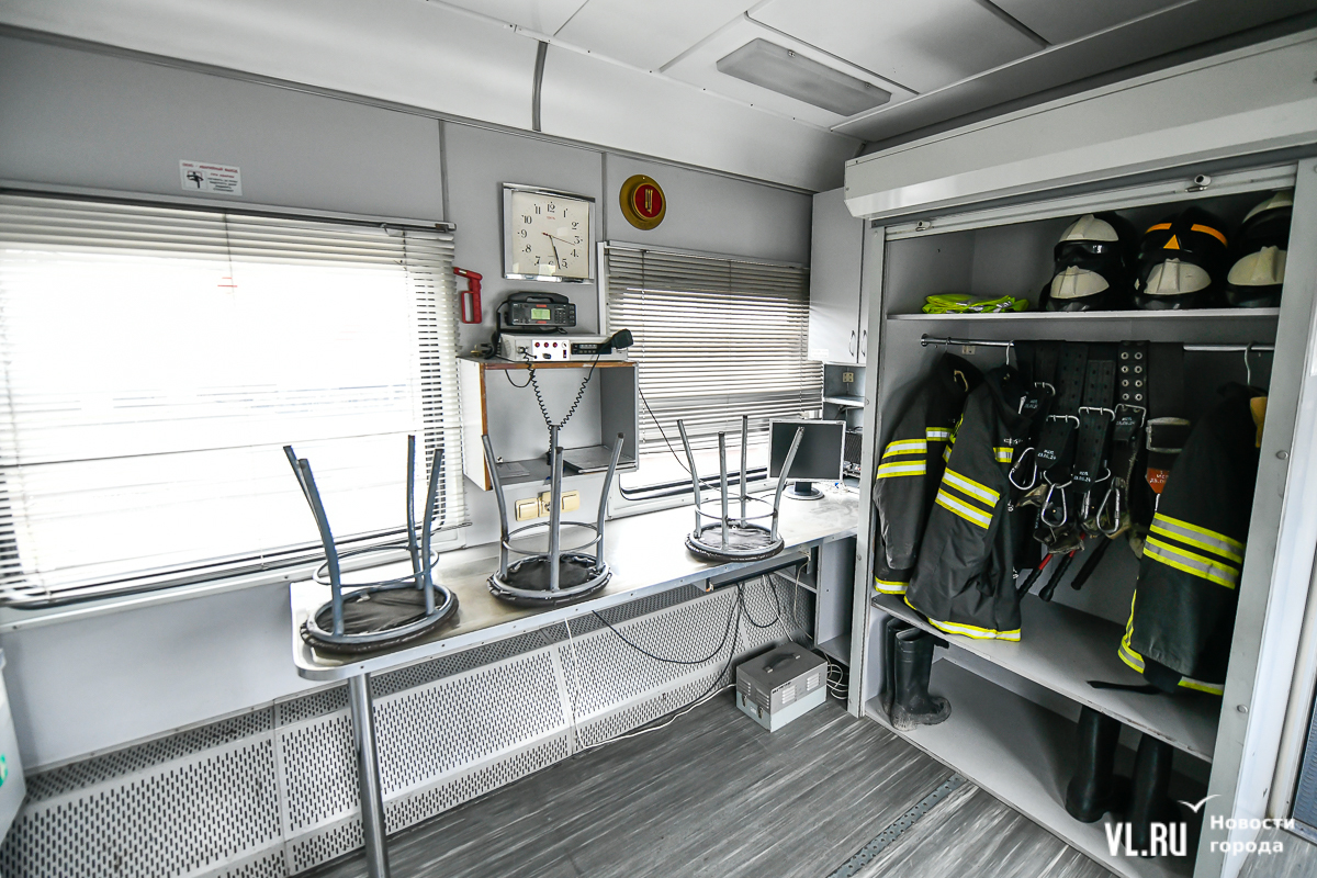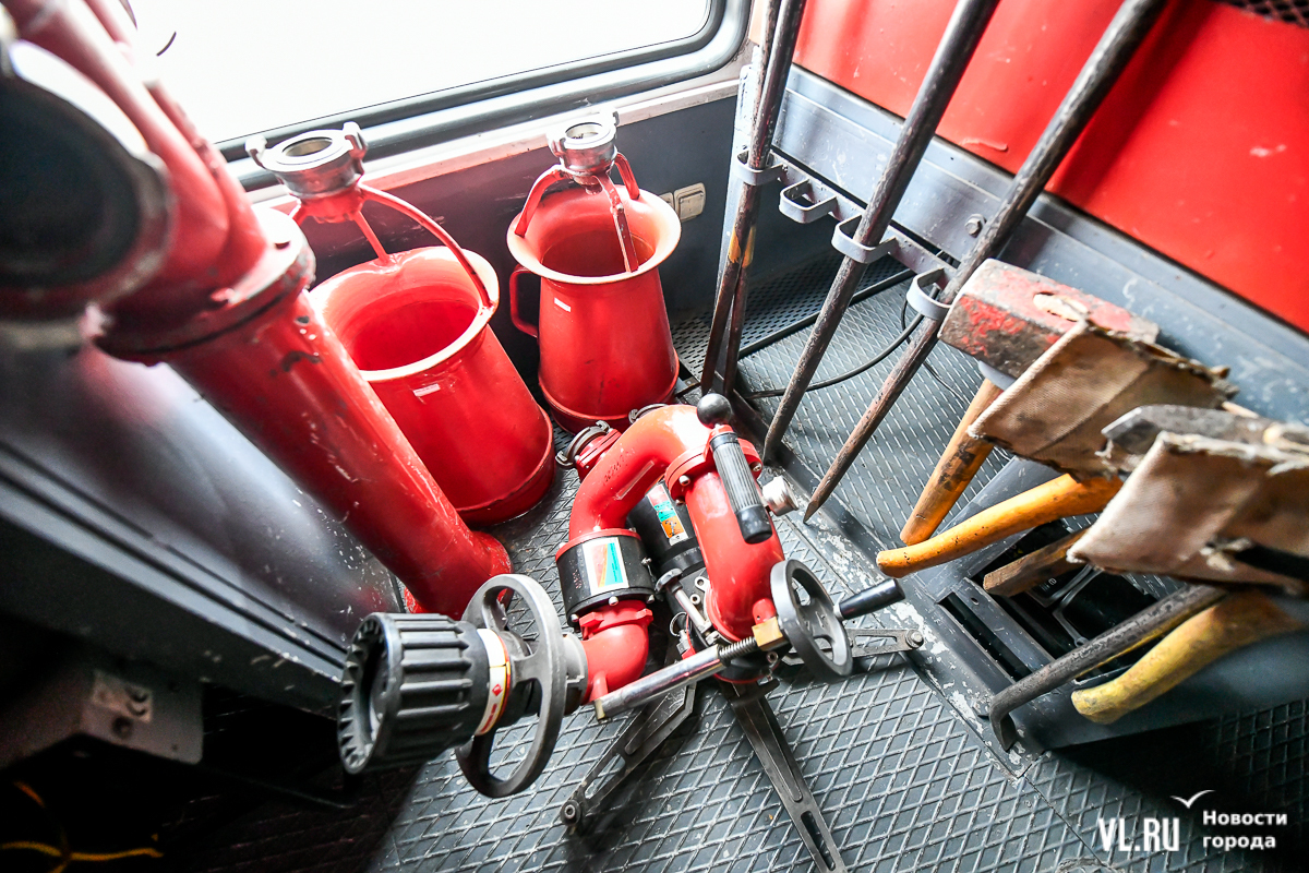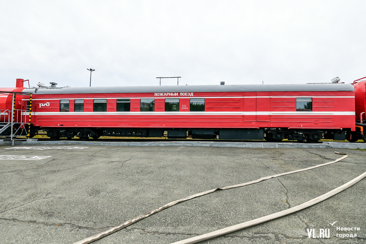 В Приморье пожарных поездов семь, они находятся на Первой Речке во Владивостоке, в Уссурийске, Находке, Смоляниново, Ружино, Сибирцево, Гвоздево. Составы расположены по территории края таким образом, чтобы районы выездов у них максимально составляли до 160 километров. Поезд мчится на вызов со скоростью до 140 километров в час, для него освобождают пути от пассажирских и грузовых составов.
