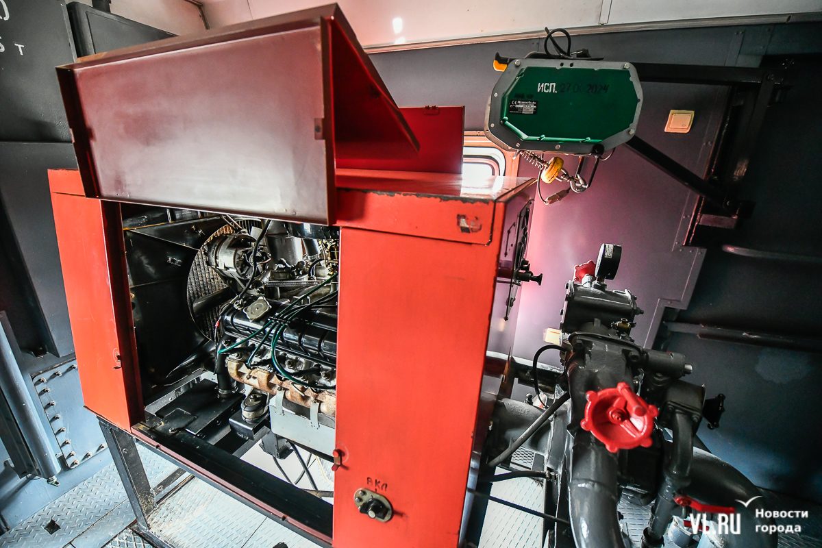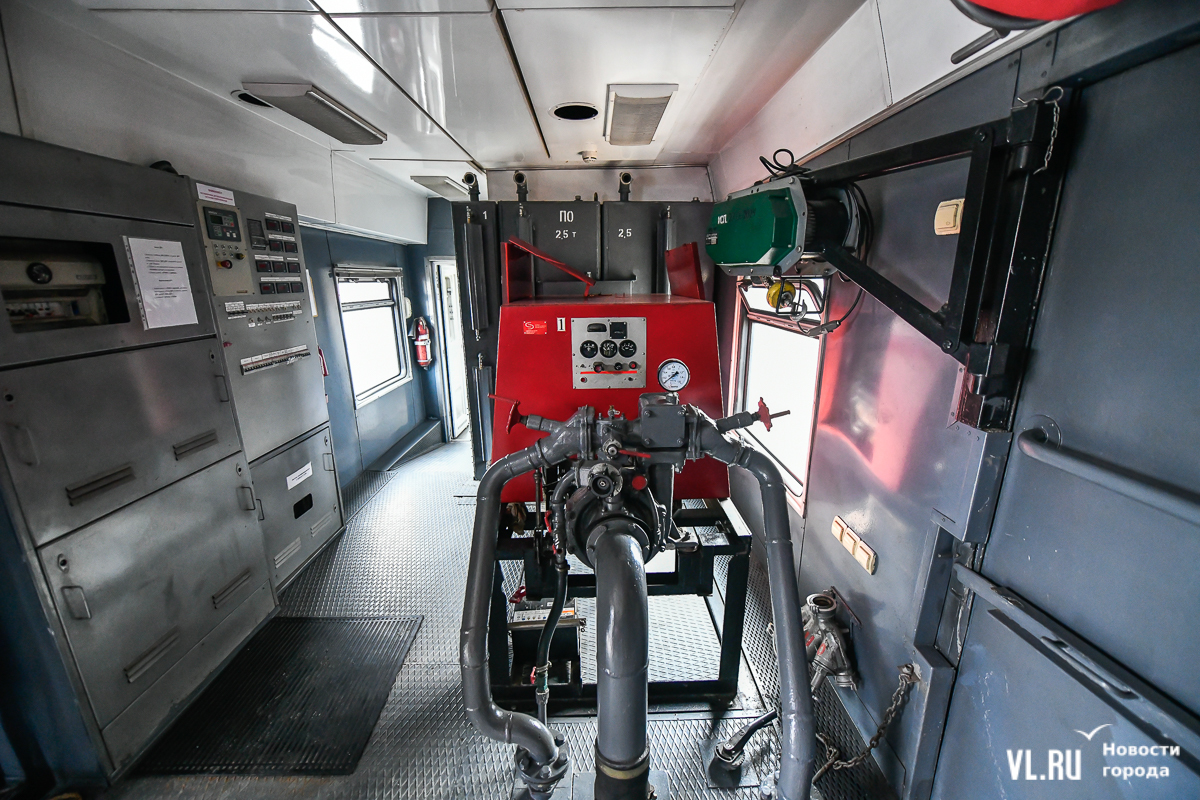 «В поезде есть переносные мотопомпы, мы можем заправлять оперативно и работать беспрерывно. Караул, который заканчивает работу, мы сменяем прямо на месте чрезвычайной ситуации. Когда подъезжает МЧС, учитывая, что ёмкости на пожарной машине ограничены, спасатели подключаются к пожарным поездам, и мы параллельно работаем. На серьёзном пожаре одними ручными стволами не справиться. Одновременно необходимо с разных сторон бороться для того, чтобы ликвидировать пожар. Все силы, которые есть, подключаются и сообща работают», – рассказал Магомед Абакаров, начальник Владивостокского отряда ведомственной охраны железнодорожного транспорта России.