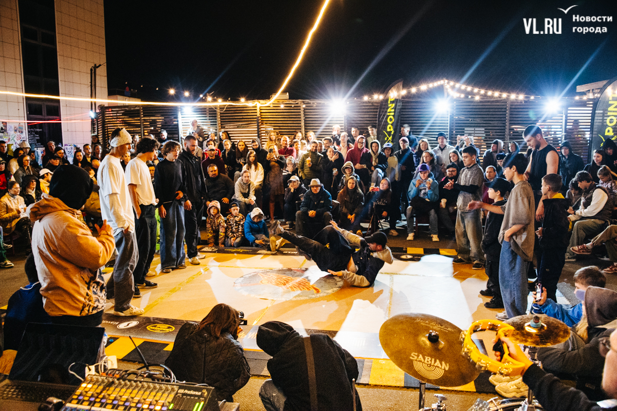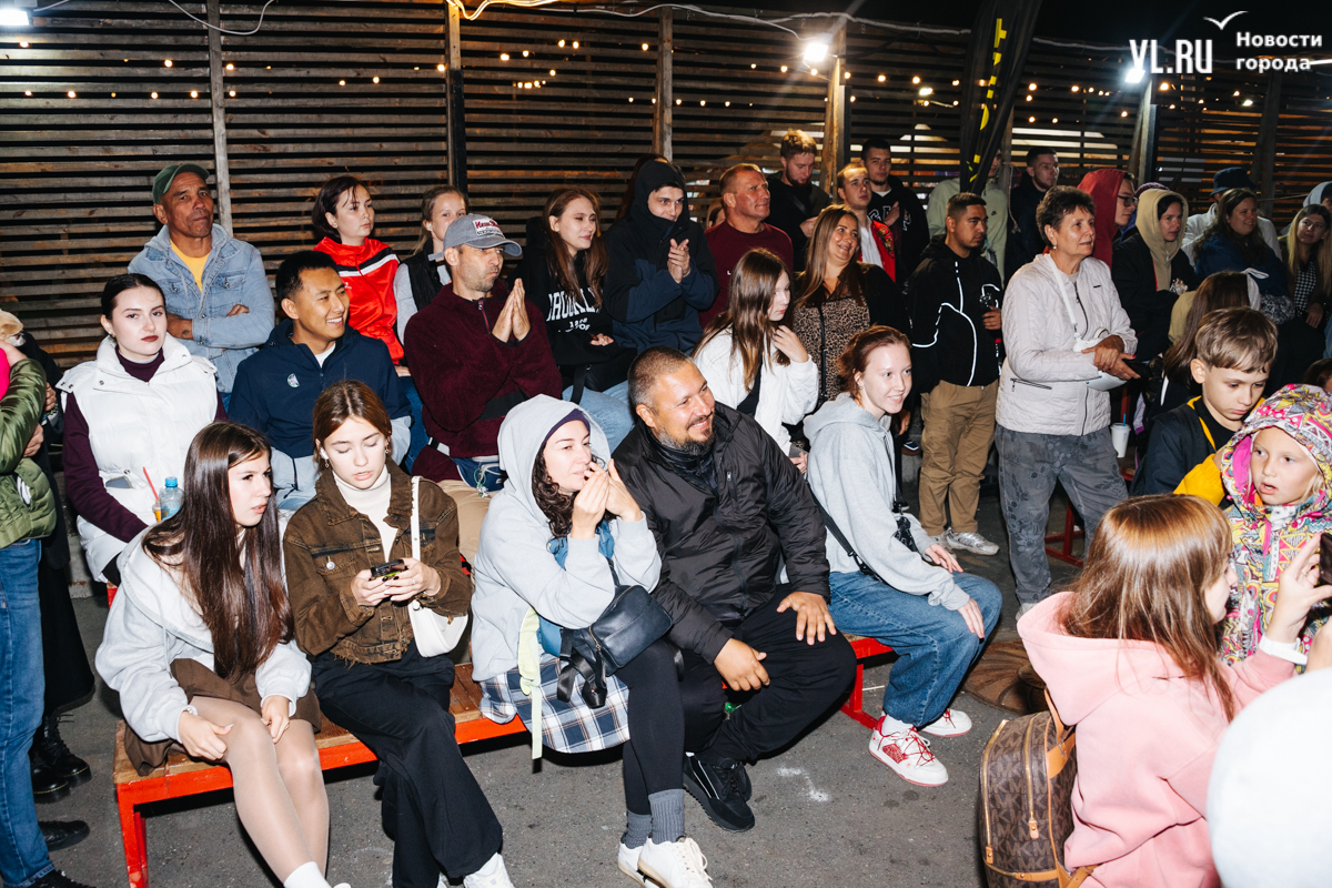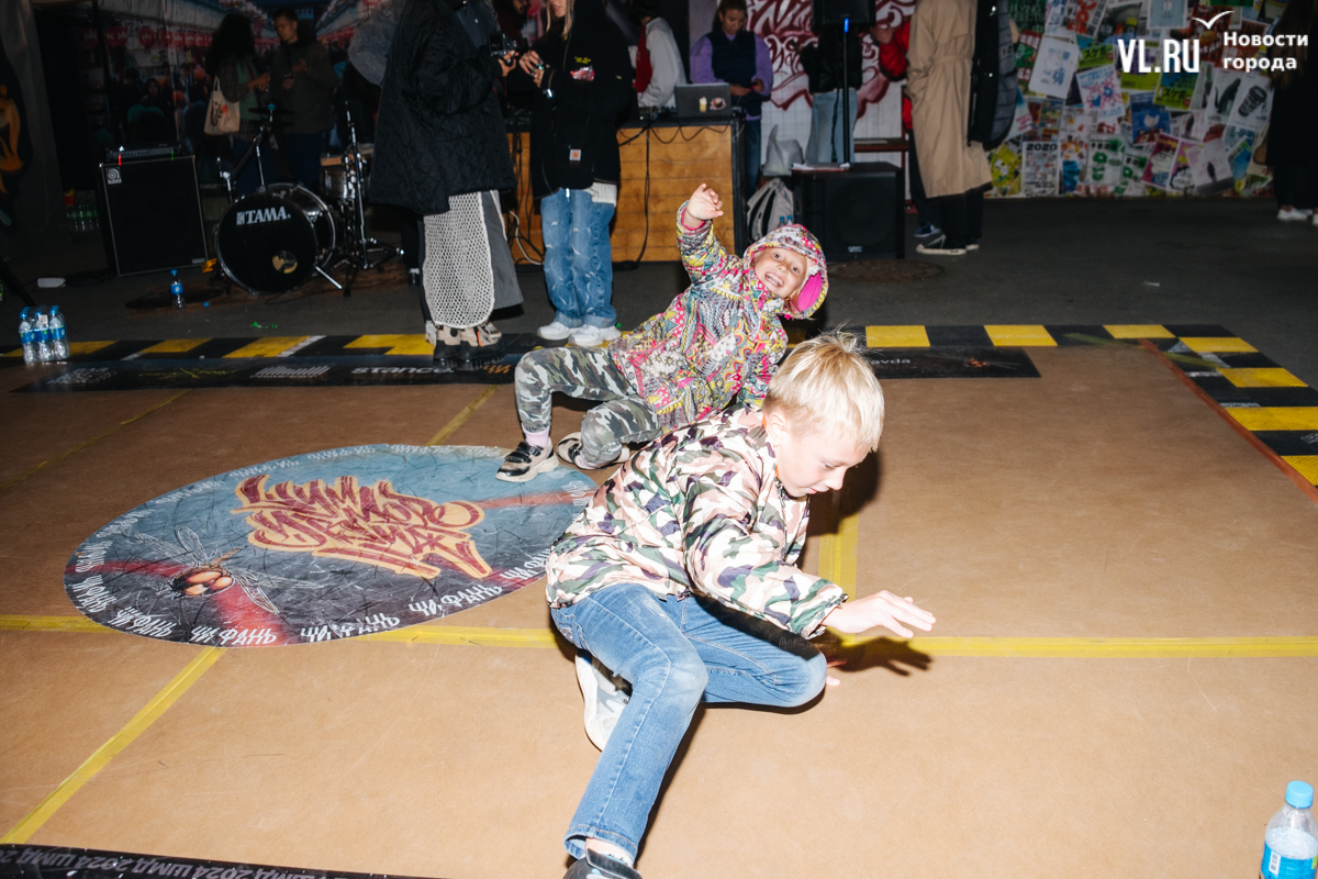 Столики неподалёку были свободны, фотозоны тоже мало кого привлекали – бОльшая часть людей собралась у зоны танцевальных контестов. Участники от мала до велика соревновались друг напротив друга – то ли под биты, подстраивающиеся под живых ударника и басиста, то ли под музыкантов, подстраивающихся под биты. В любом случае и танцы конкурсантов, и качёвую музыку оценили как корреспонденты Новостей VL.ru, так и случайно оказавшиеся здесь зрители.