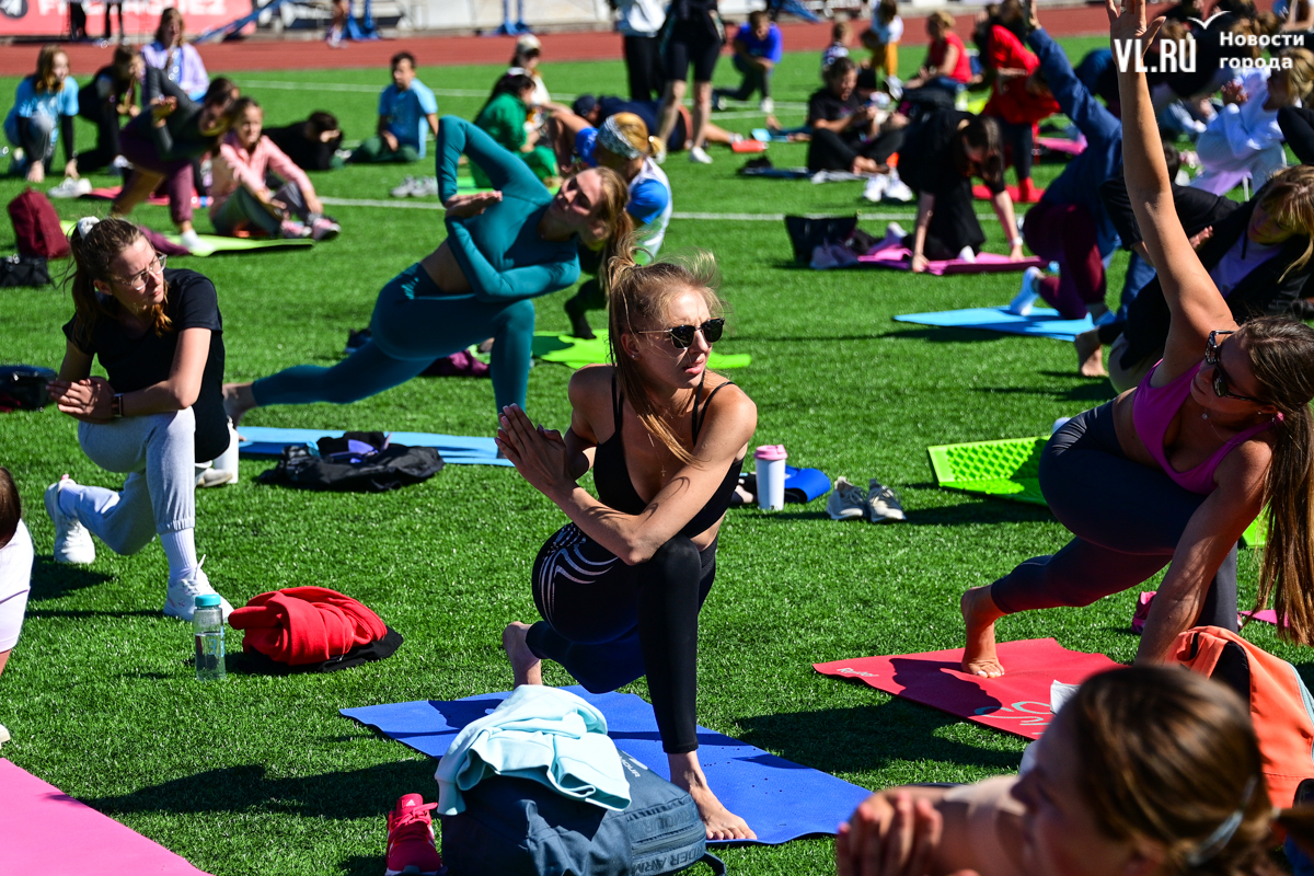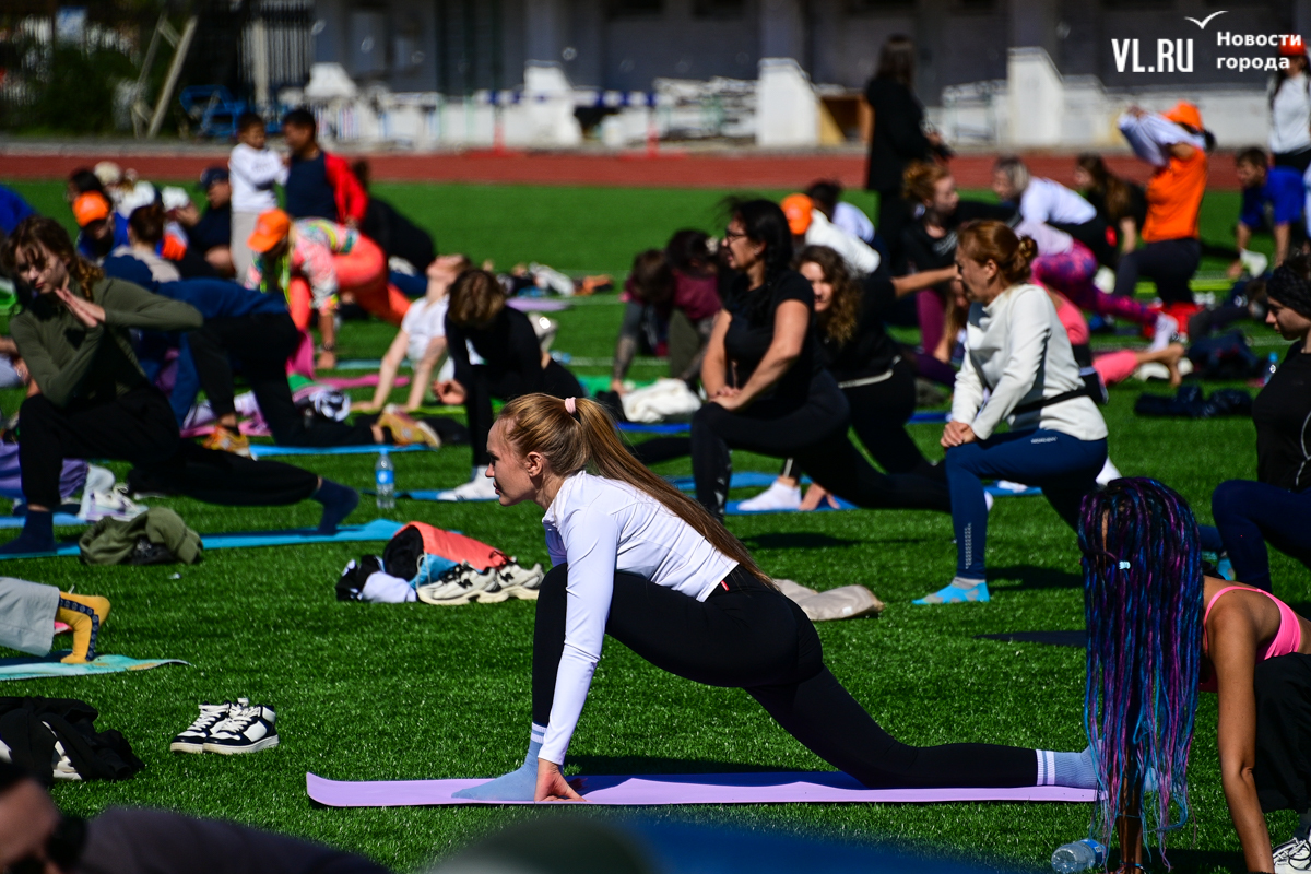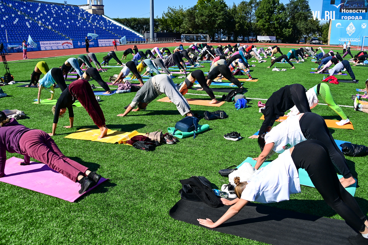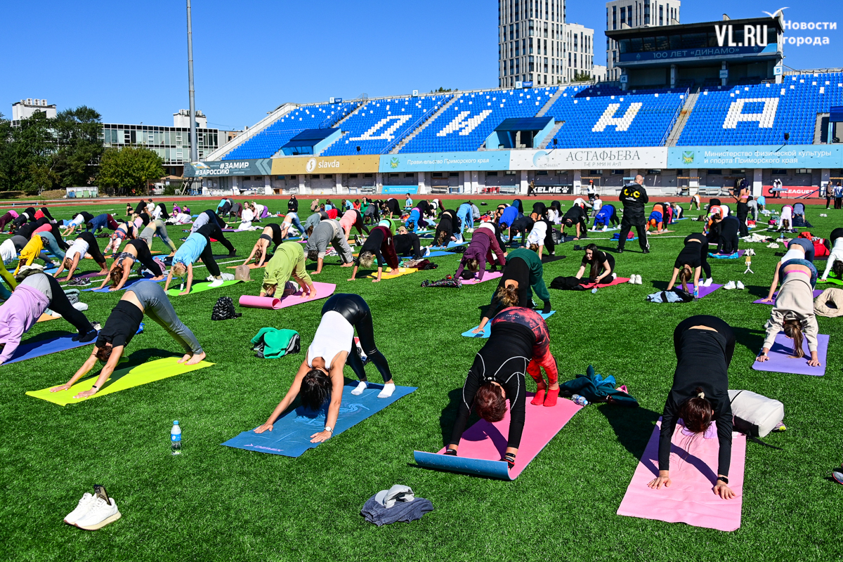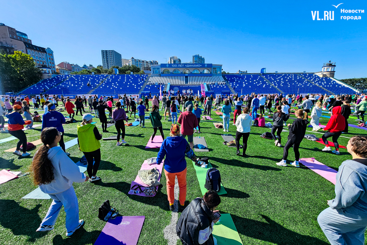 Любители спорта и активного образа жизни во Владивостоке сегодняшнее утро провели на стадионе «Динамо». Здесь ставили рекорд – проводили занятия танцами, пилатесом и йогой одновременно для 1500 человек. К началу тренировки на стадионе собралось больше 1000 человек, а к концу число участников действительно перевалило за 1500.