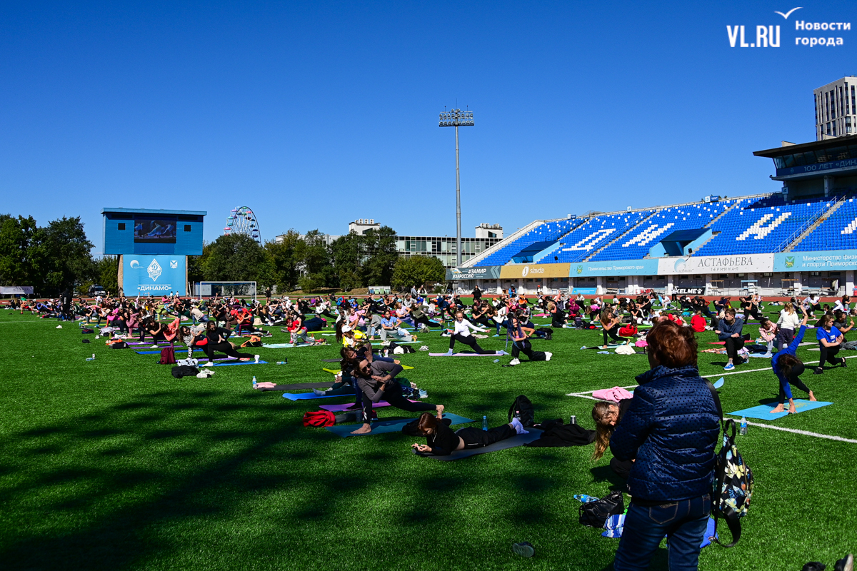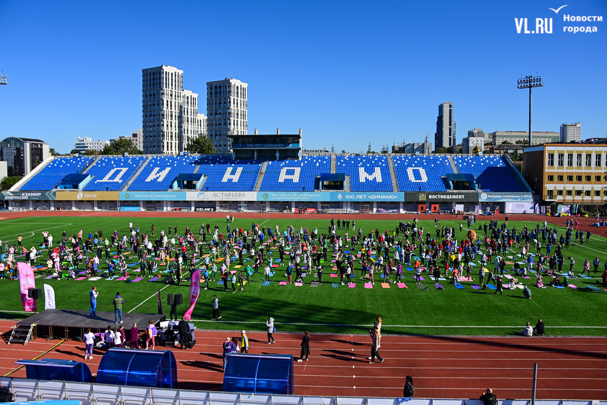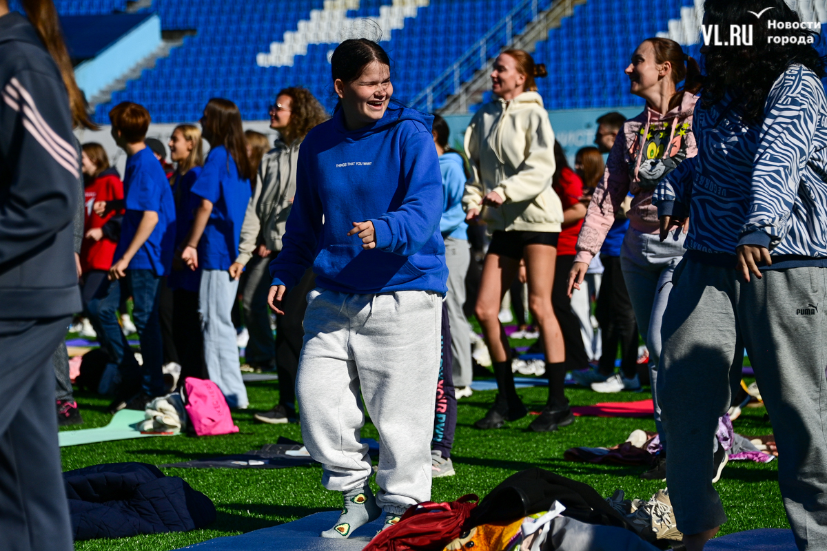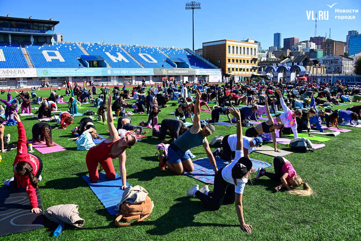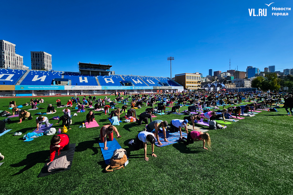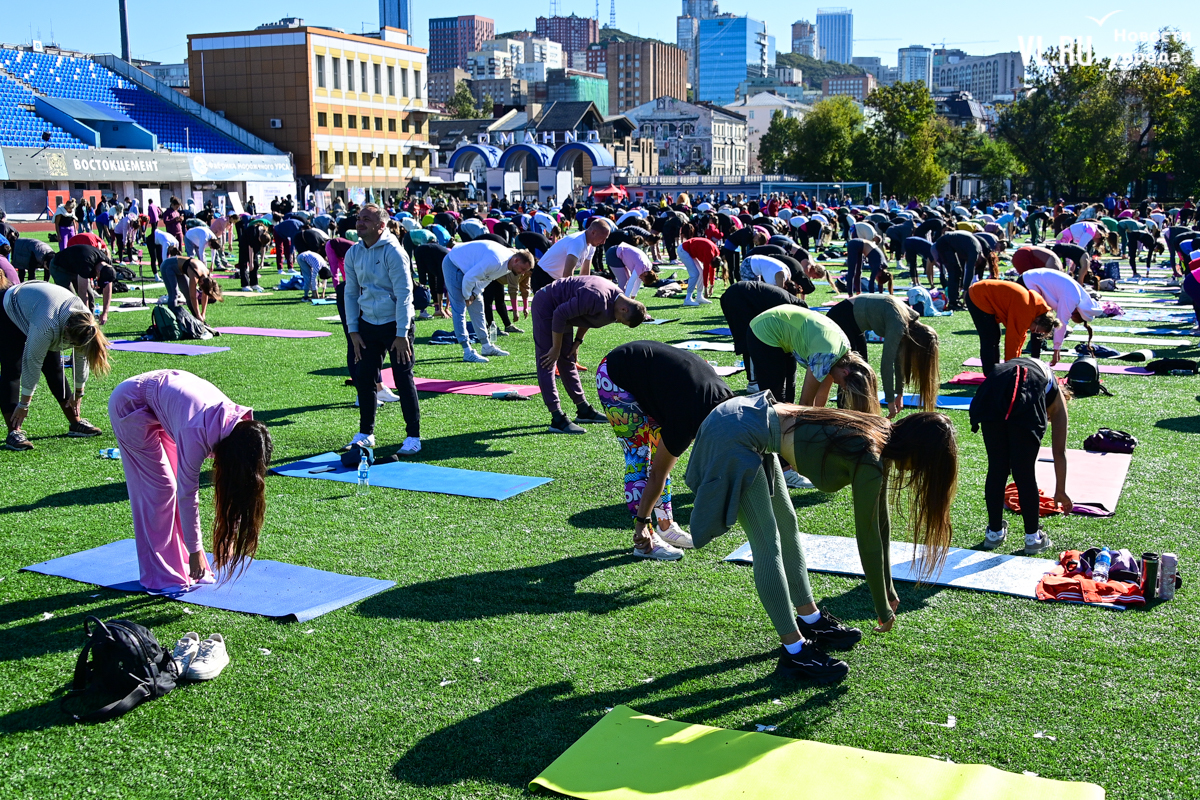 Любители спорта и активного образа жизни во Владивостоке сегодняшнее утро провели на стадионе «Динамо». Здесь ставили рекорд – проводили занятия танцами, пилатесом и йогой одновременно для 1500 человек. К началу тренировки на стадионе собралось больше 1000 человек, а к концу число участников действительно перевалило за 1500.
