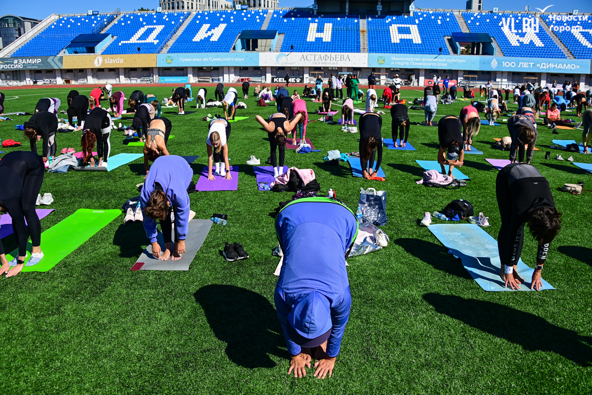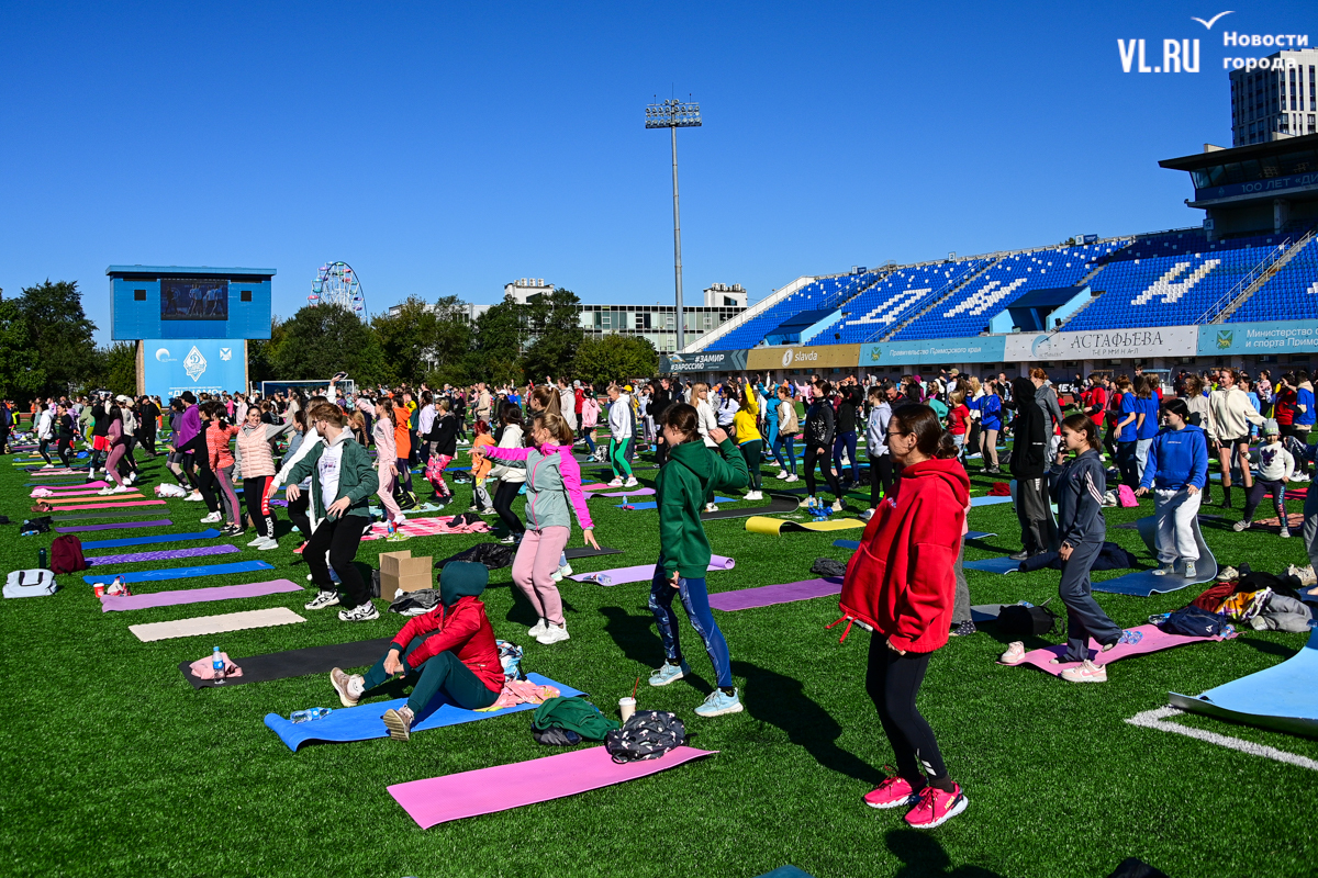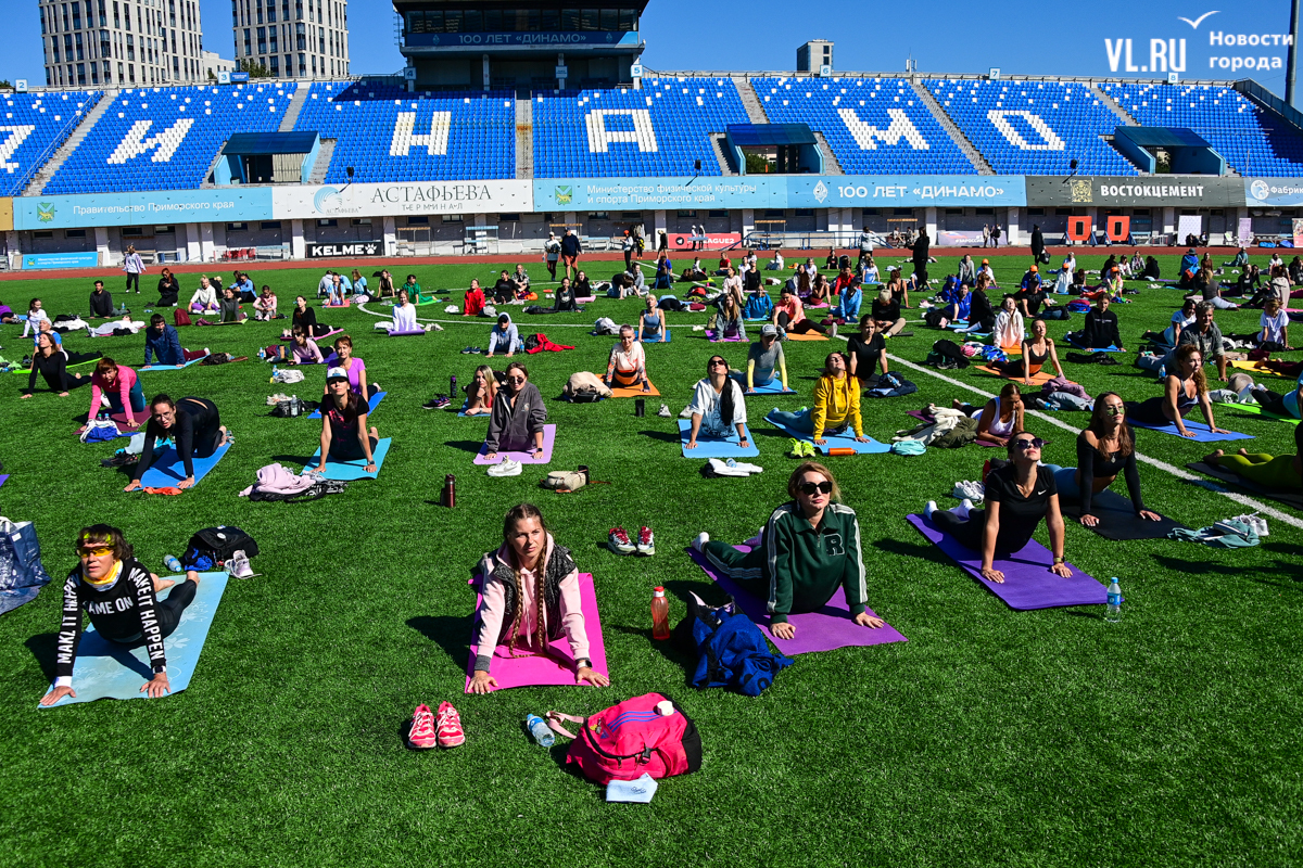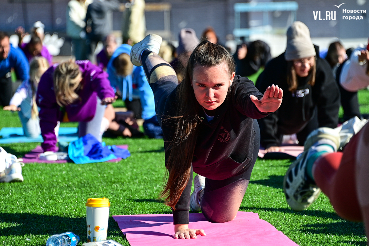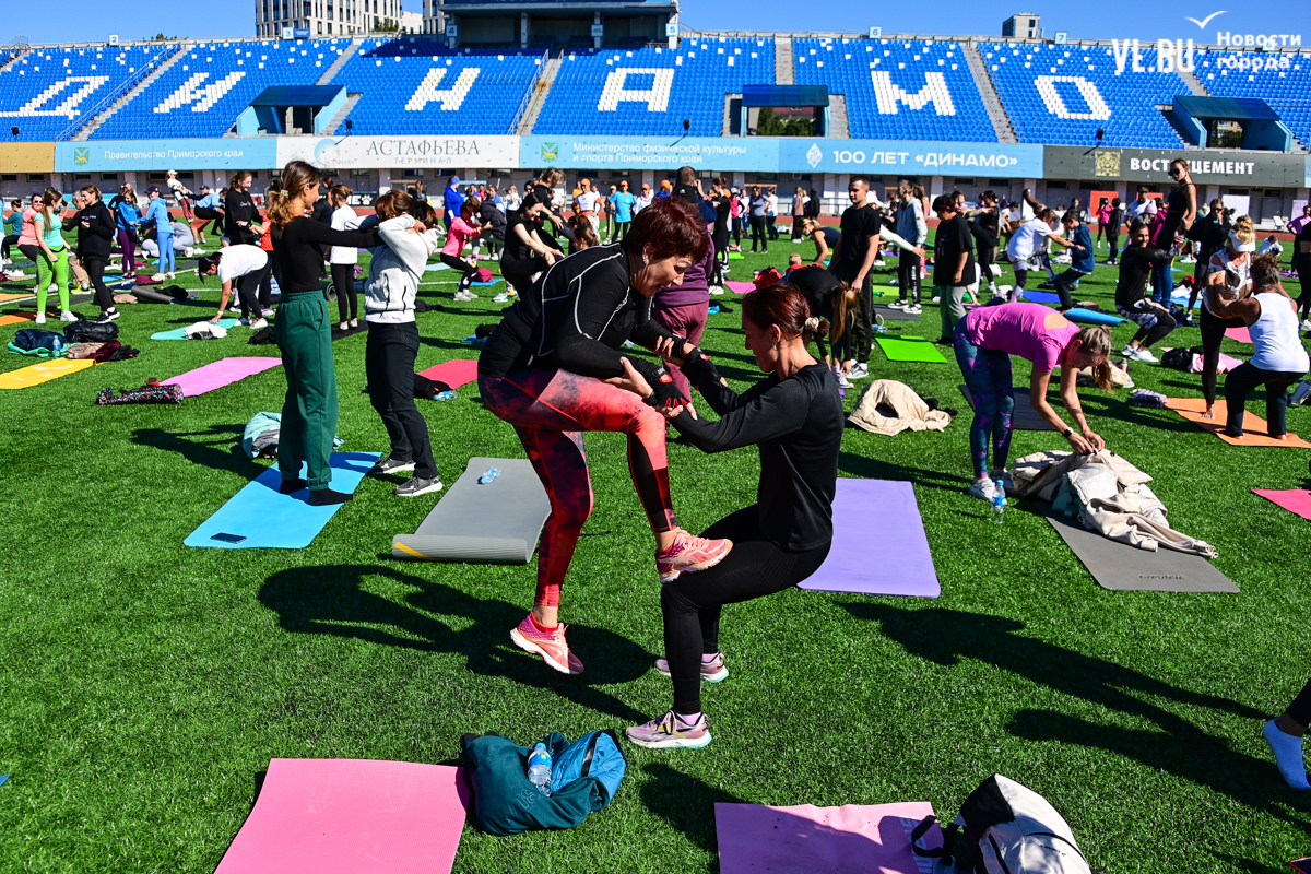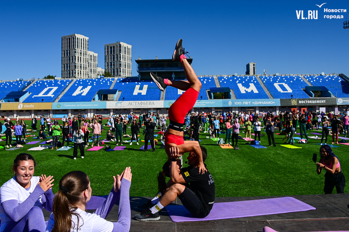 Любители спорта и активного образа жизни во Владивостоке сегодняшнее утро провели на стадионе «Динамо». Здесь ставили рекорд – проводили занятия танцами, пилатесом и йогой одновременно для 1500 человек. К началу тренировки на стадионе собралось больше 1000 человек, а к концу число участников действительно перевалило за 1500.
