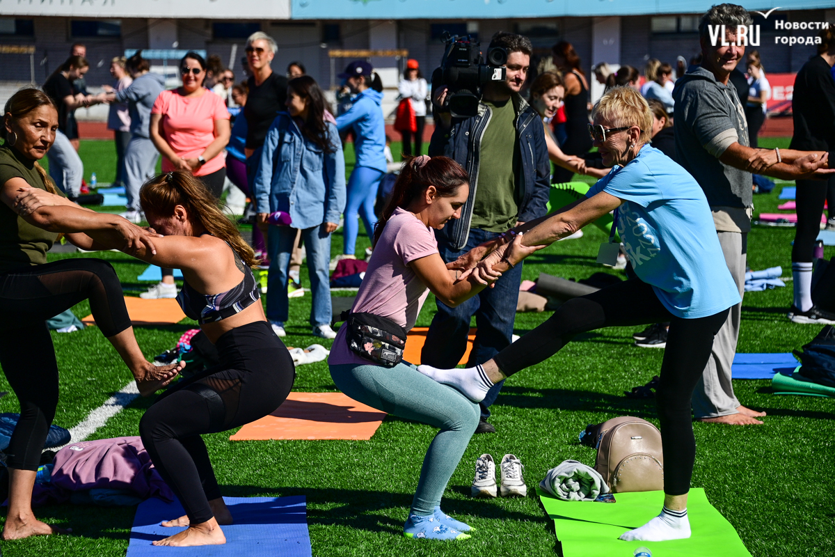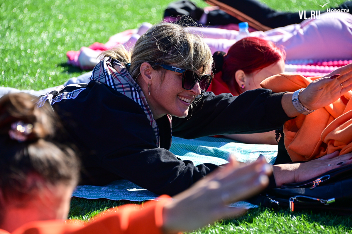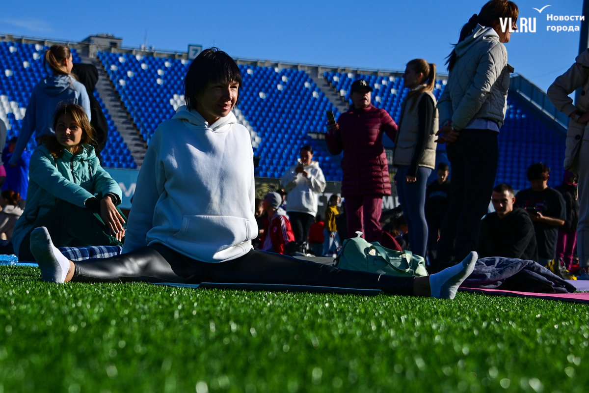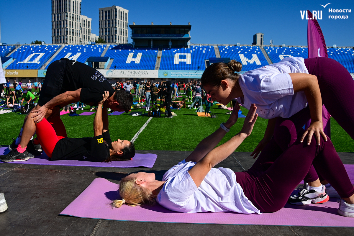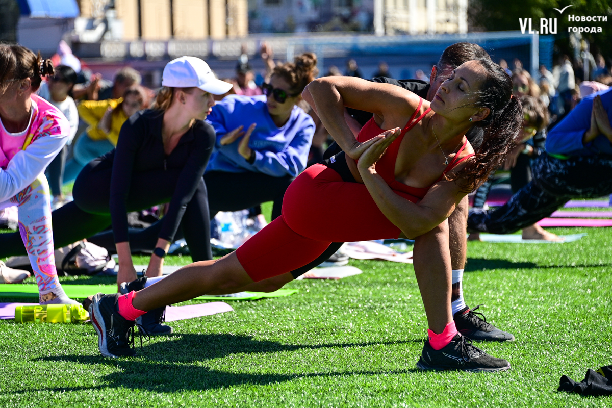 Любители спорта и активного образа жизни во Владивостоке сегодняшнее утро провели на стадионе «Динамо». Здесь ставили рекорд – проводили занятия танцами, пилатесом и йогой одновременно для 1500 человек. К началу тренировки на стадионе собралось больше 1000 человек, а к концу число участников действительно перевалило за 1500.
