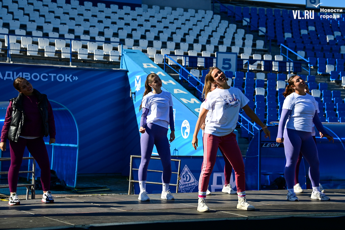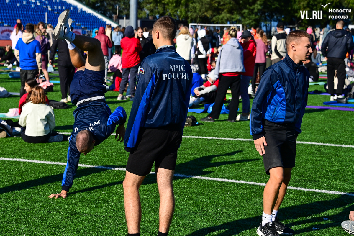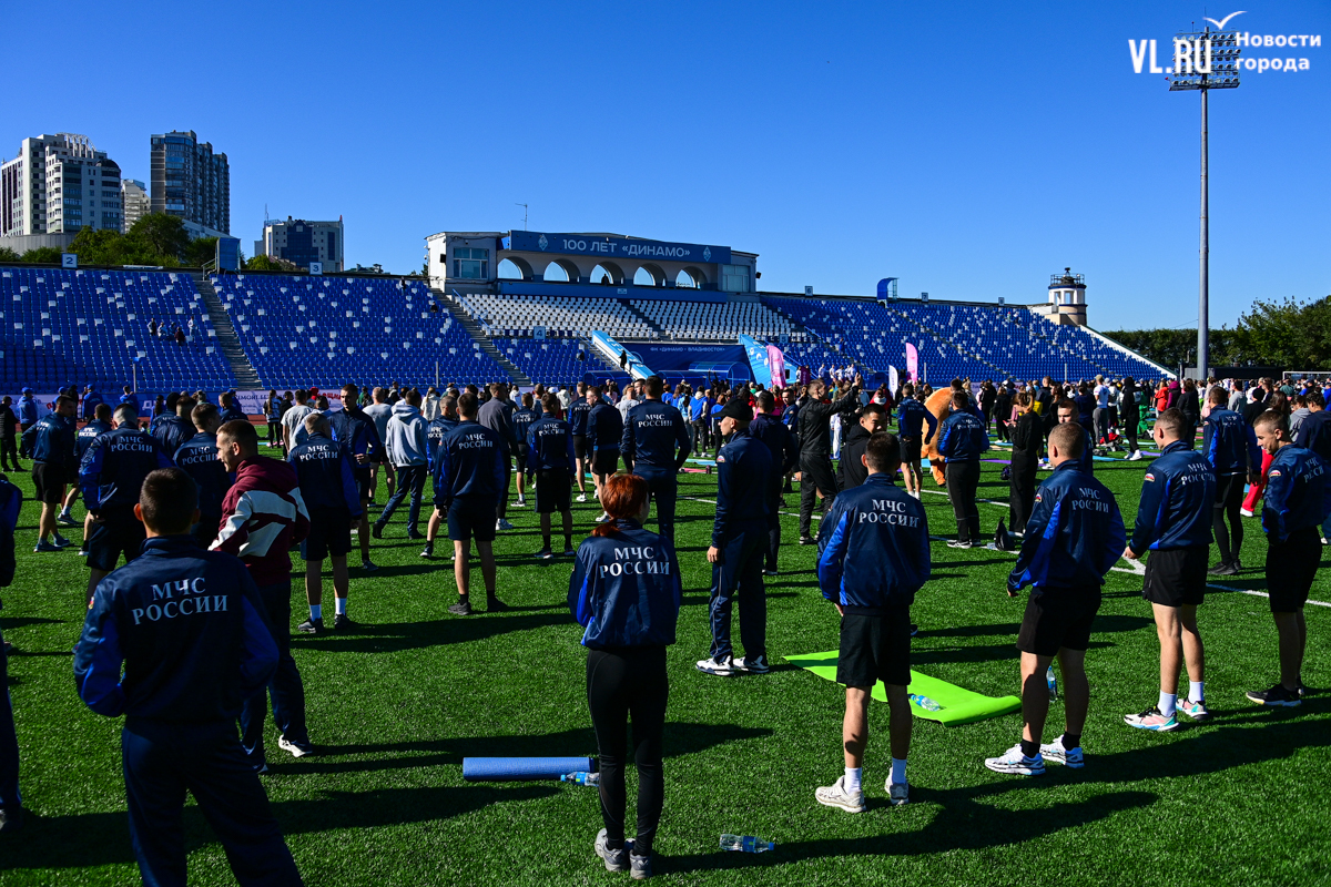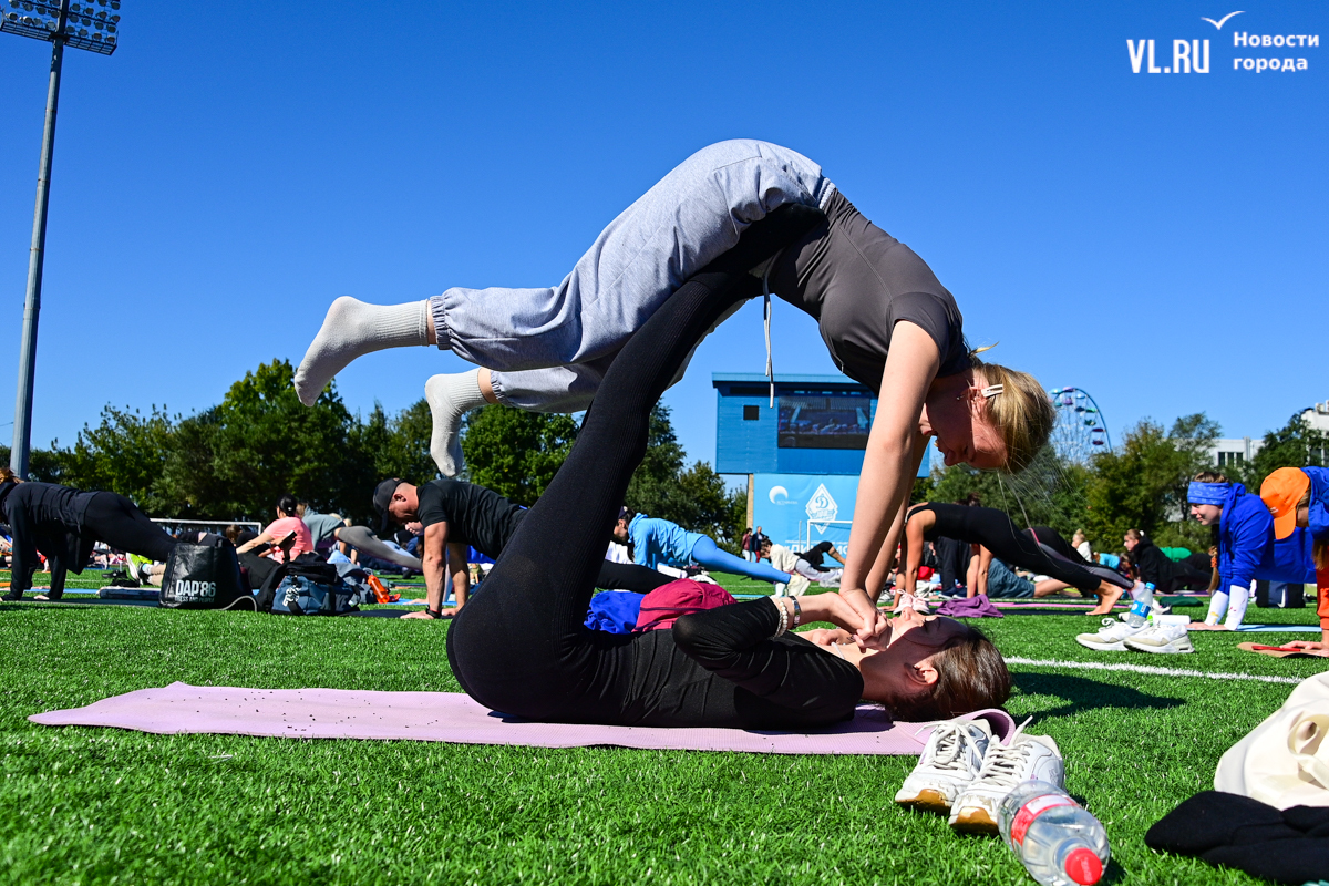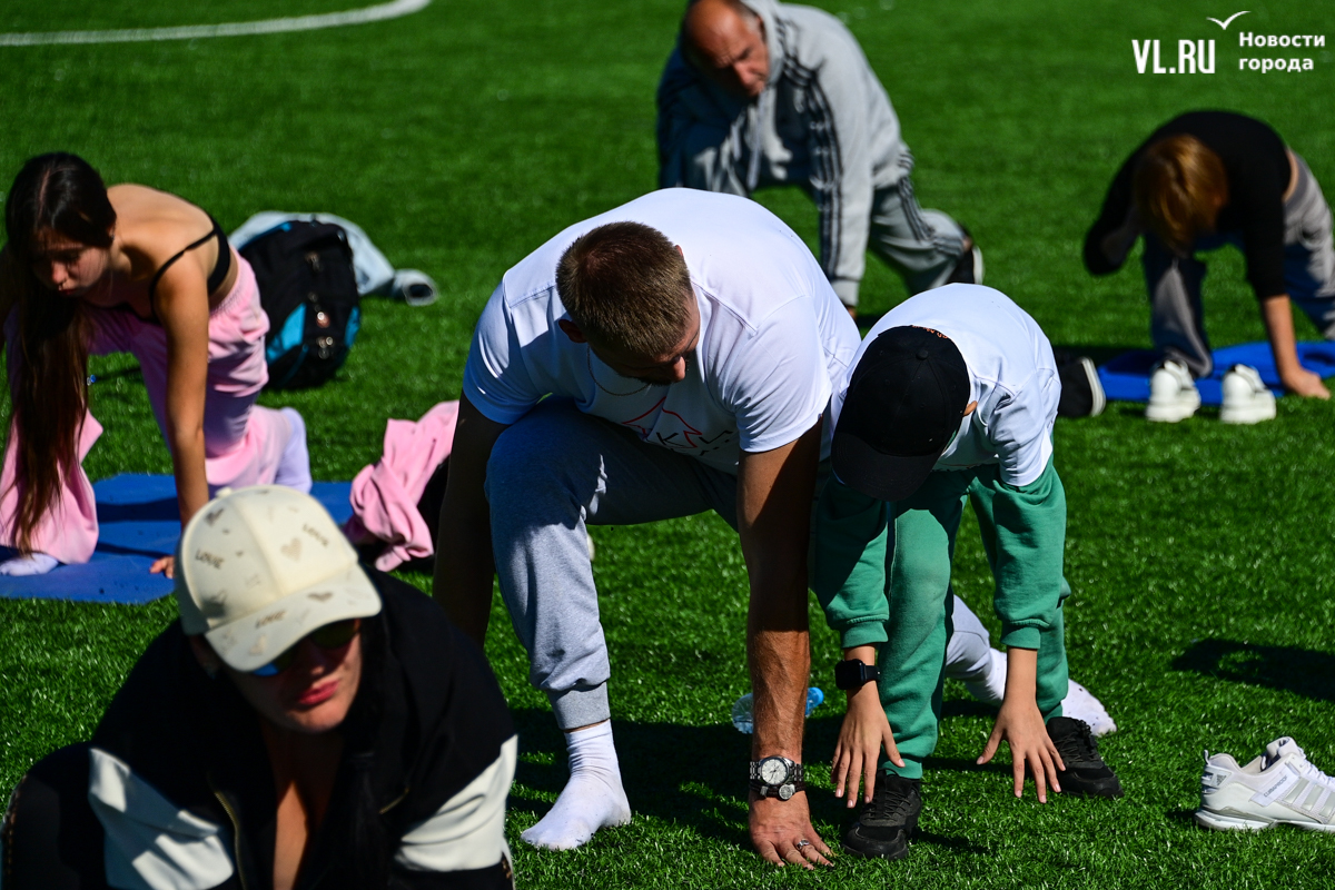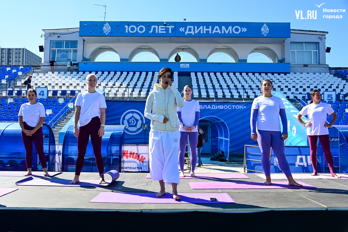 Любители спорта и активного образа жизни во Владивостоке сегодняшнее утро провели на стадионе «Динамо». Здесь ставили рекорд – проводили занятия танцами, пилатесом и йогой одновременно для 1500 человек. К началу тренировки на стадионе собралось больше 1000 человек, а к концу число участников действительно перевалило за 1500.