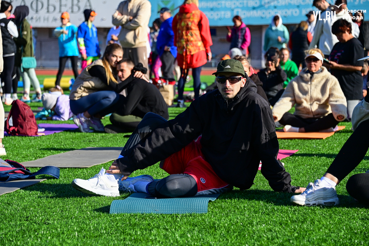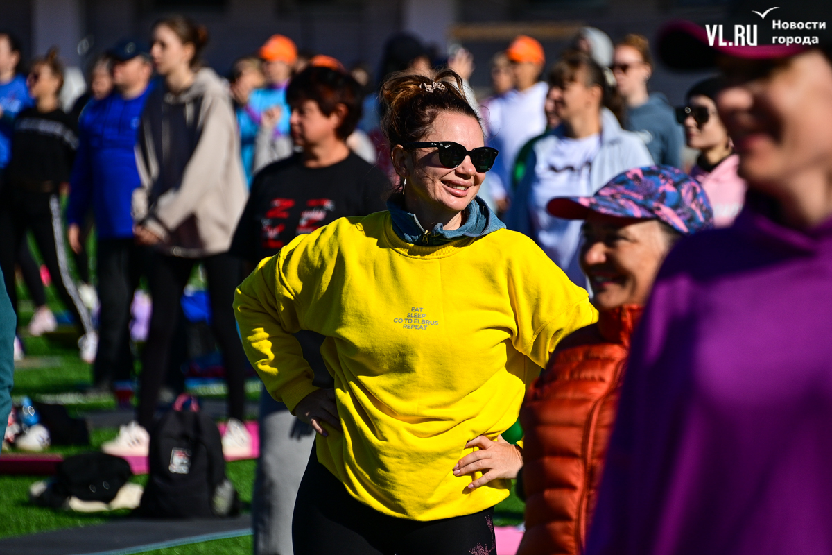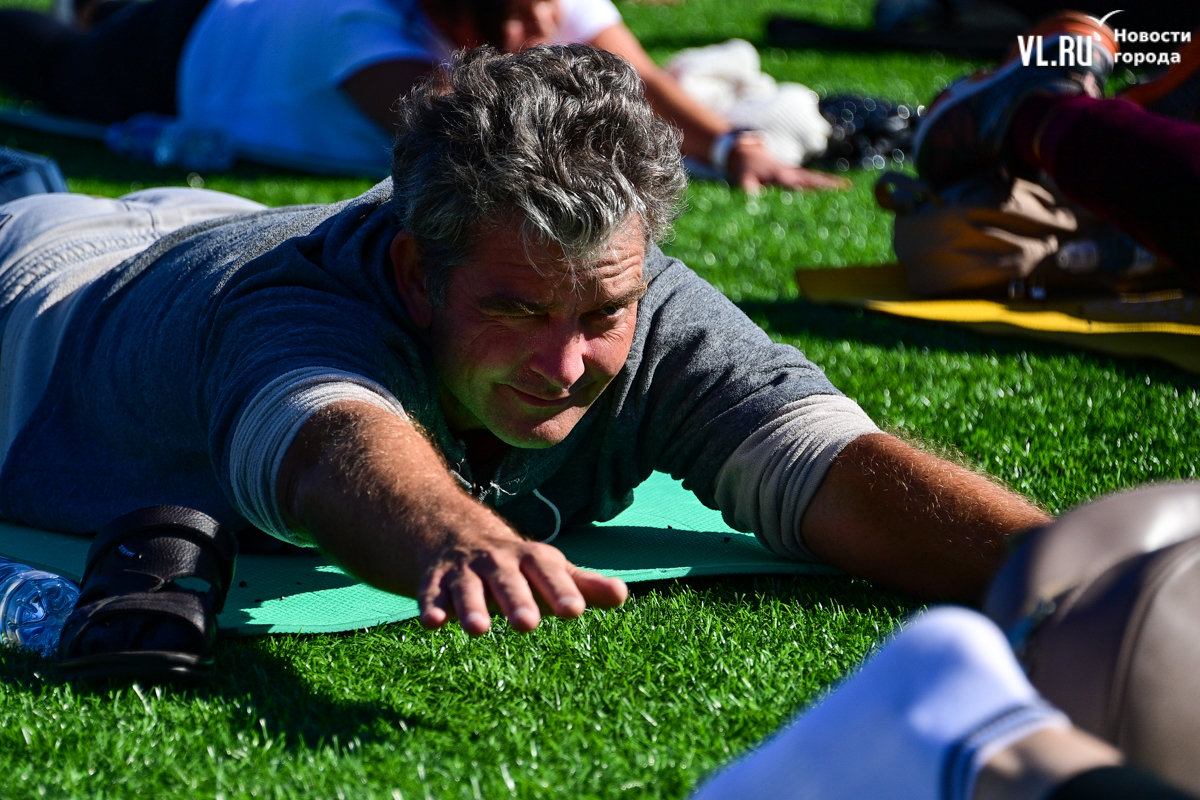 Но с началом тренировки всем стало жарко. В 10 часов гостей поприветствовали Андрей Блохин, министр экономического развития Приморского края, и Юлия Вельбик, начальник управления физической культуры и спорта администрации Владивостока. Оба были в спортивной форме и готовы тренироваться. «Мне радостно видеть людей, которым не всё равно на своё здоровье. И я уверен, если мы все будем рассказывать всем людям, как мы занимаемся, о своих спортивных достижениях, то нас будет ещё больше», – отметил в своей речи Андрей Блохин.