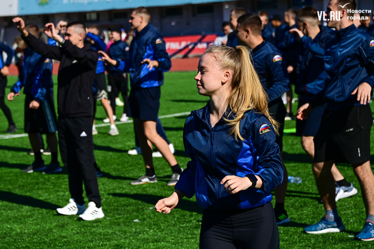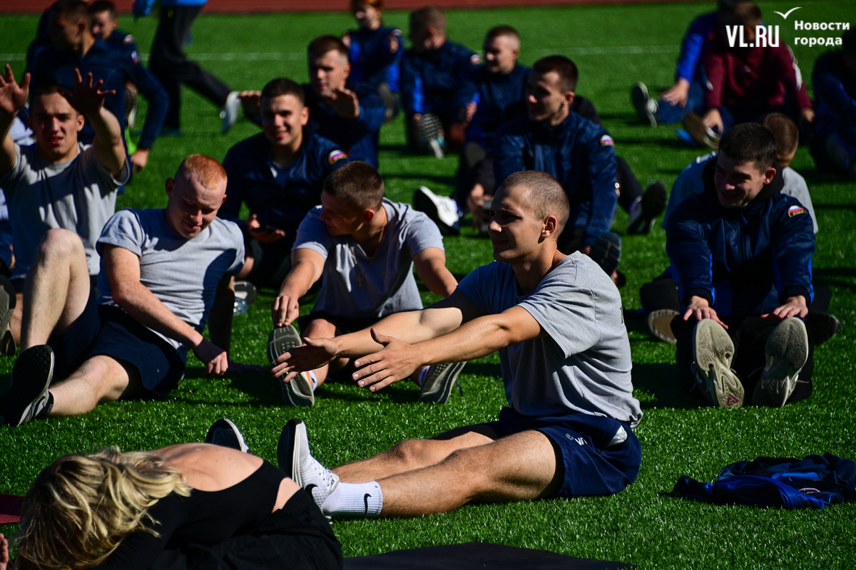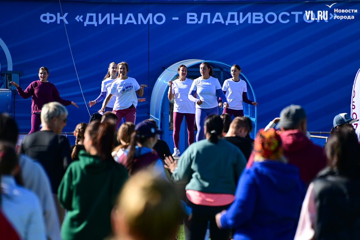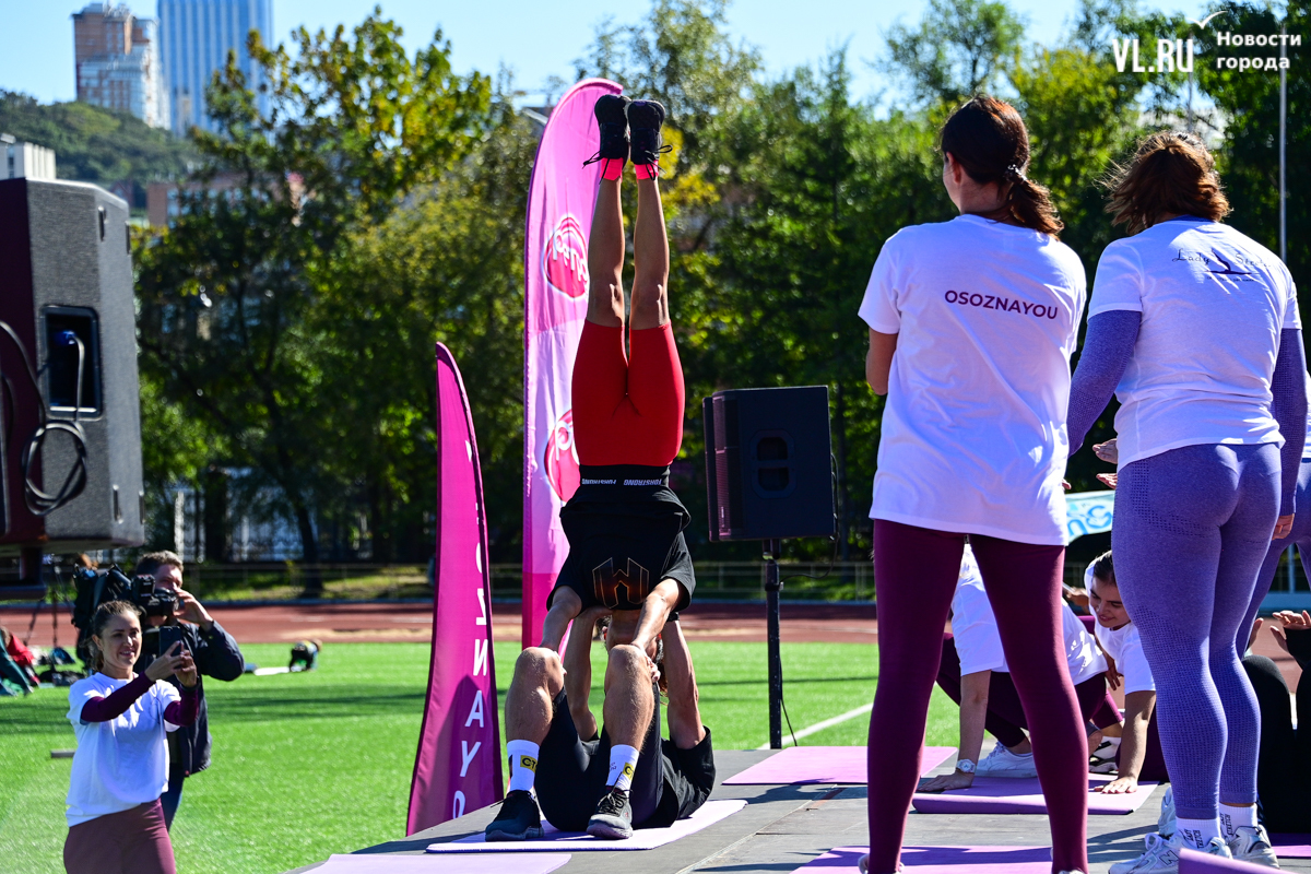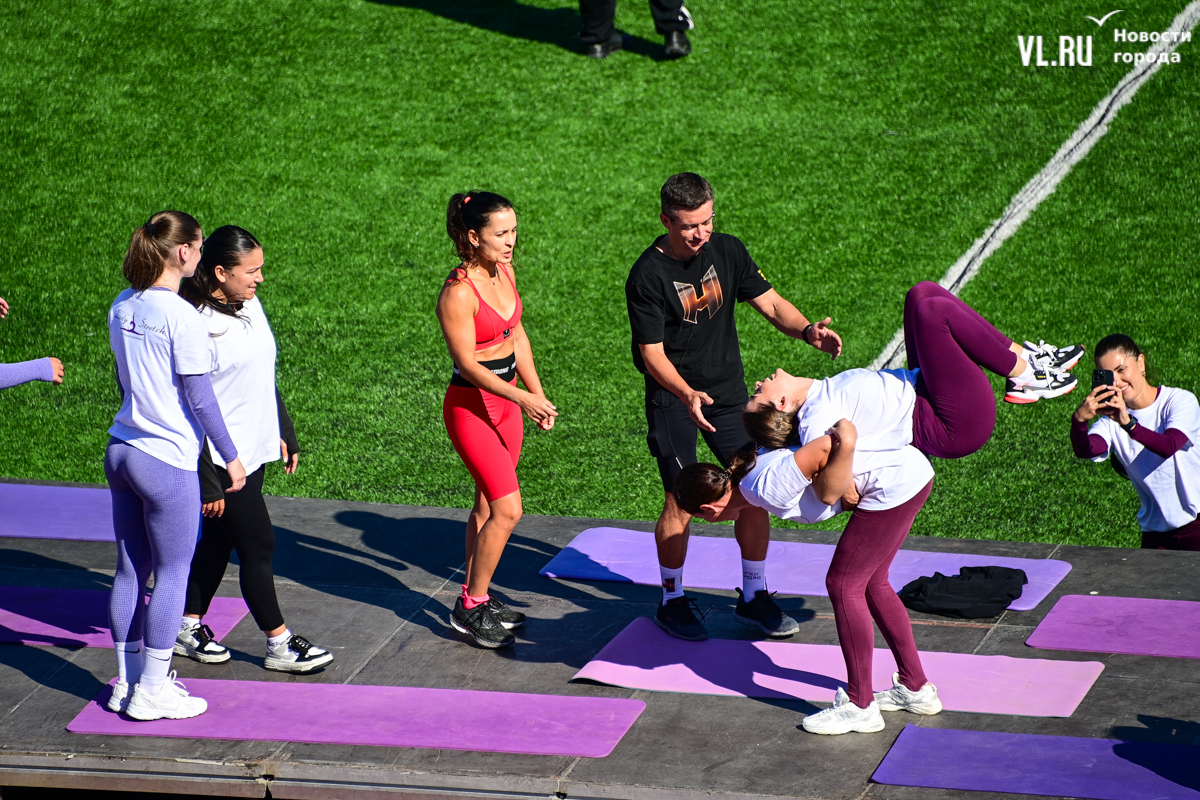 Организаторы мероприятия вдохновились опытом москвичей, которые устроили подобную тренировку в Лужниках, и решили поставить свой рекорд на Дальнем Востоке. Проводить занятие пригласили опытных спортсменов и тренеров направлений, в которых нет противопоказаний: танцев, пилатеса и йоги. Был на мероприятии и хедлайнер – Василий Котлевский, финалист шоу «Суперниндзя» на СТС. По словам Дарьи Белявцевой, одной из главных организаторов события, гости приехали даже из других городов Приморского края. Самому молодому участнику было 6 лет, а самому старшему – 79.