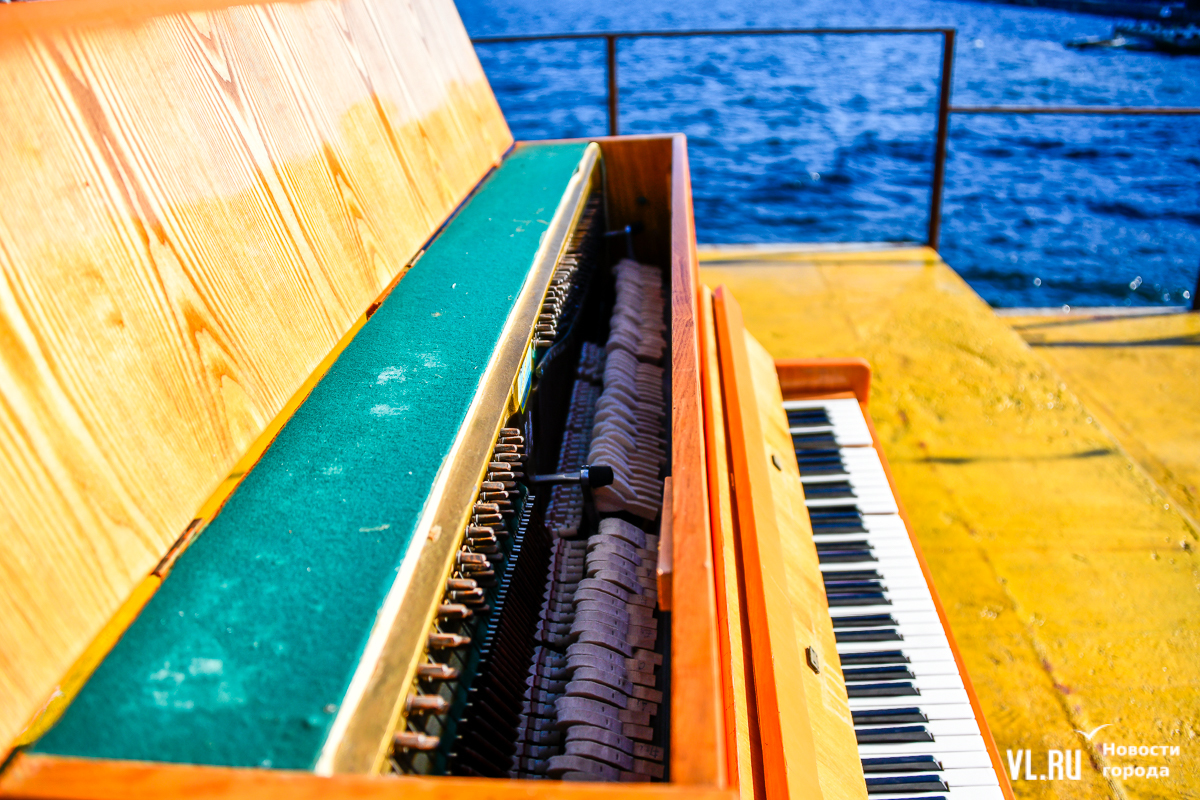 Пианино поставили на бетонном пирсе у самой кромки береговой полосы. И это тоже может сказаться на здоровье инструмента. Влажность и солёные брызги способны существенно сократить срок его службы. Хотя все пианино, установленные во Владивостоке, гибли не из-за погоды, а из-за вандалов. Пока музыкальный инструмент в исправном состоянии, лишь западают две клавиши.