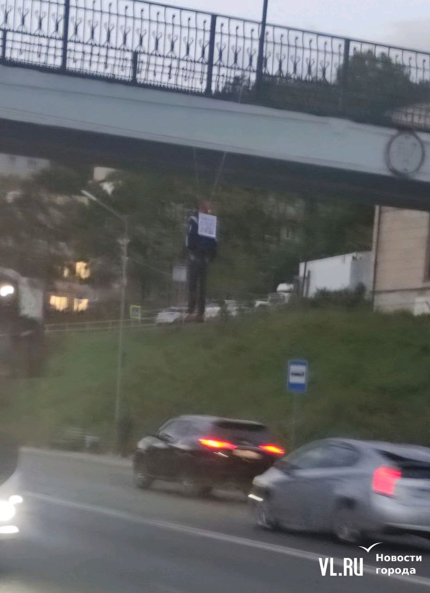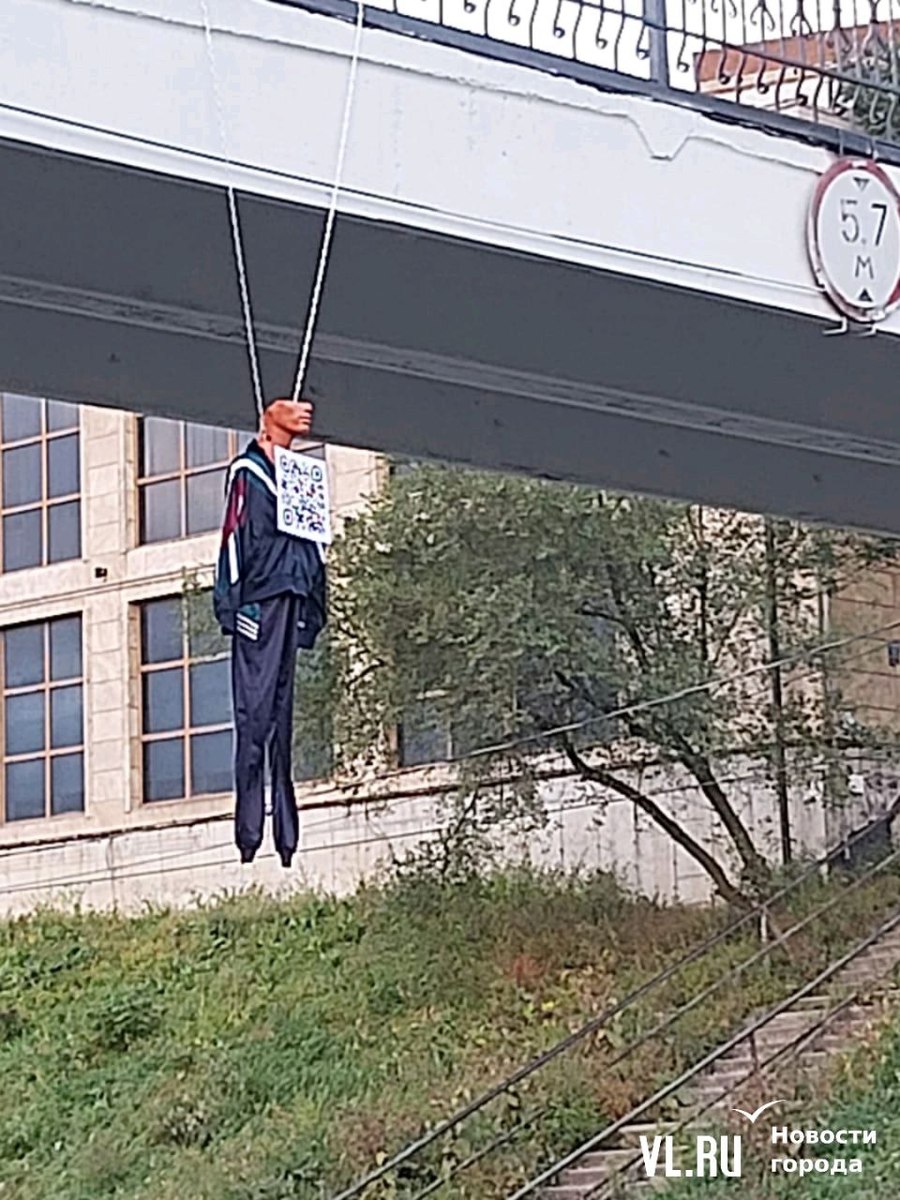 Утром во вторник, 24 сентября, жители Владивостока увидели странную картину – на виадуке на Баляева был подвешен манекен, на шее которого можно было разглядеть QR-код. Арт-объект оказался рекламной акцией молодого музыканта, а код вёл на скачивание его композиции. На мужчину составили протоколы за мелкое хулиганство и самоуправство, а реклама творчества может обойтись ему в 1300 рублей штрафа.
