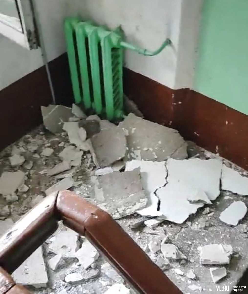 «Рухнул потолок, вся штукатурка. Грохот был страшный, куски полетели по лестнице вниз. Если б кто-то шёл, вот у меня дочка собиралась в школу, то прибило бы», – рассказала Татьяна, жительница подъезда, где произошло обрушение.