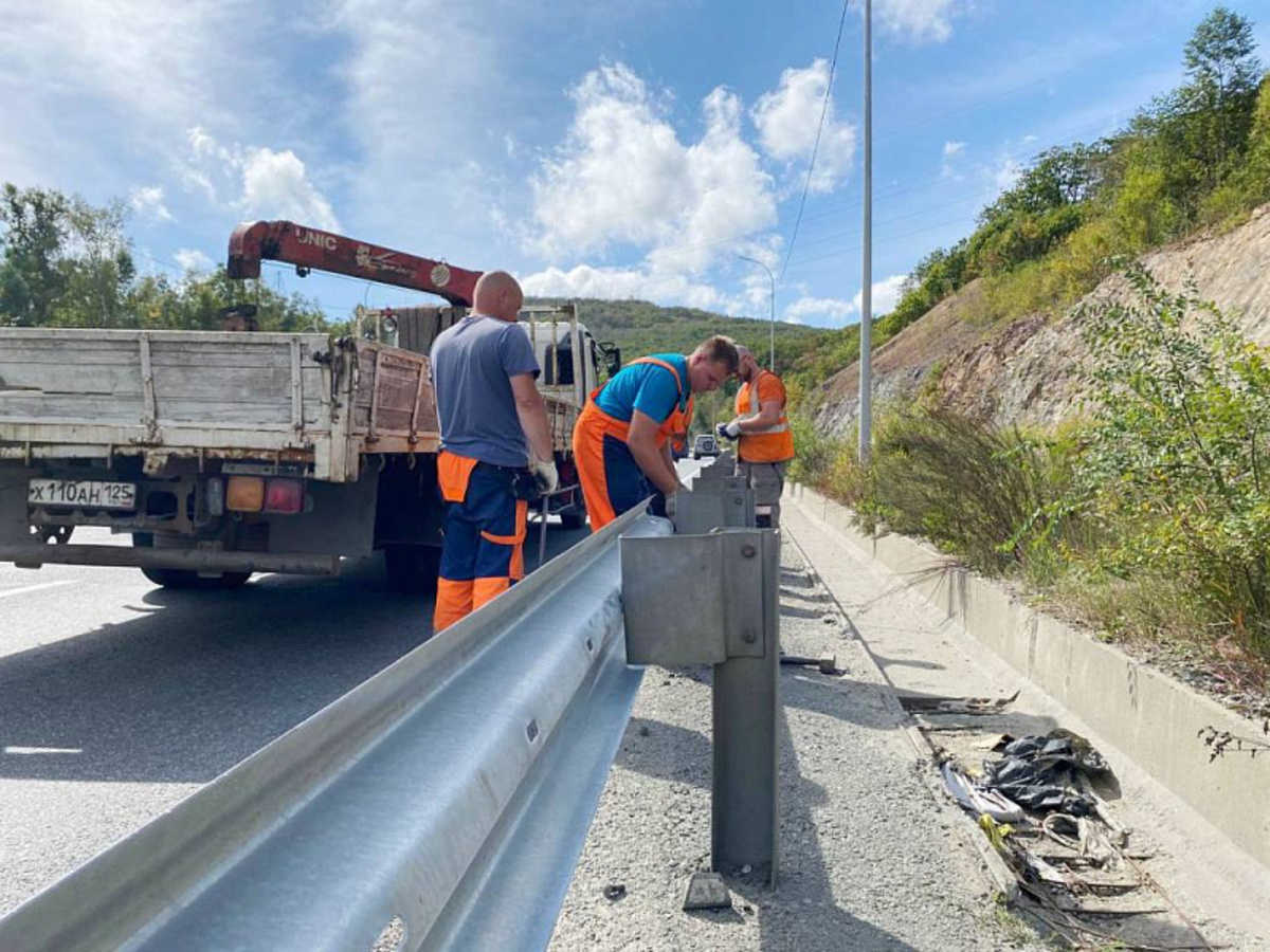 Работы проводятся на участке от Пионерского водохранилища до Снеговой Пади. За последние две недели бригада дорожников привела в порядок более километра ограждений.